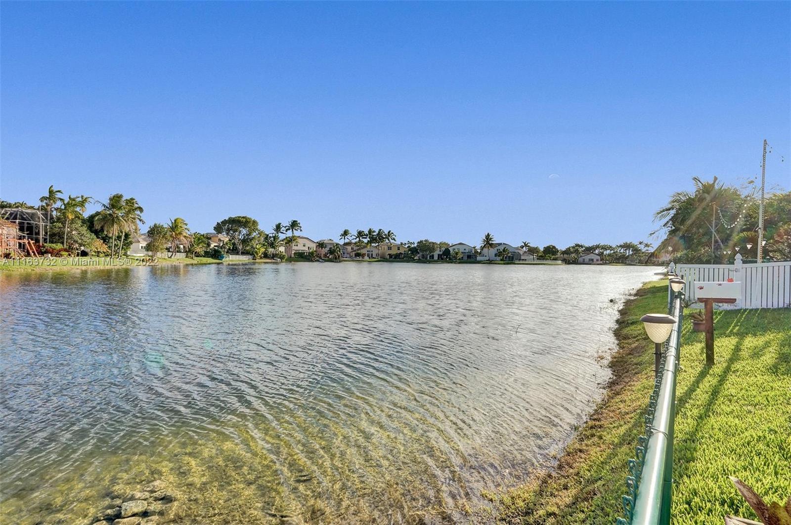 Rarely available updated 3/2 on the water w/pool. Home has many features that any Buyer would love including updated kitchen & bathrooms, 2 car garage, tile & wood floors, S.S. appliances, open kitchen concept, fenced back yard overlooking the water view & pool area (nicely done with brick pavers), and added put-put golf for practicing with amazing views. One of the few homes w/private backyard on water allowing you to come home & enjoy peaceful relaxation as well as perfect for entertaining friends & family. Cherry Bay is a private gated community in Towngate located in the heart of Pembroke Pines. Close to major highways, shopping, schools, restaurants, hospital, & more. Maintenance includes internet & basic cable tv, Gated community, pools, tennis courts & playgrounds, and more.