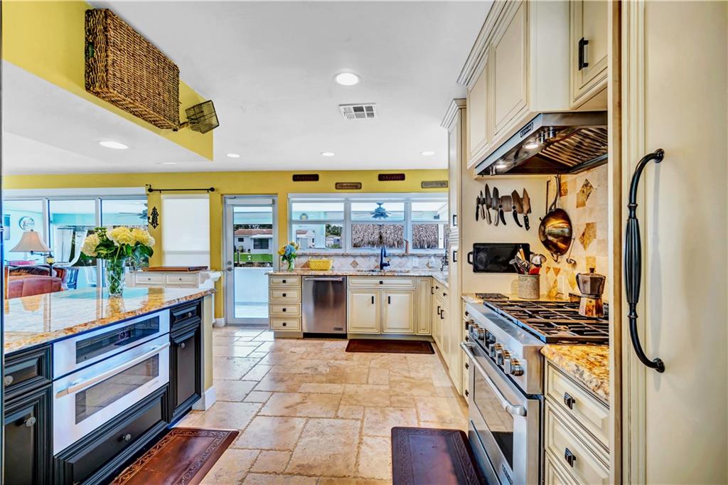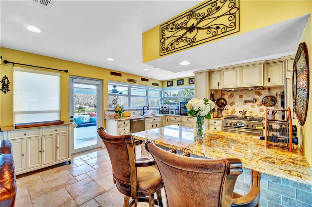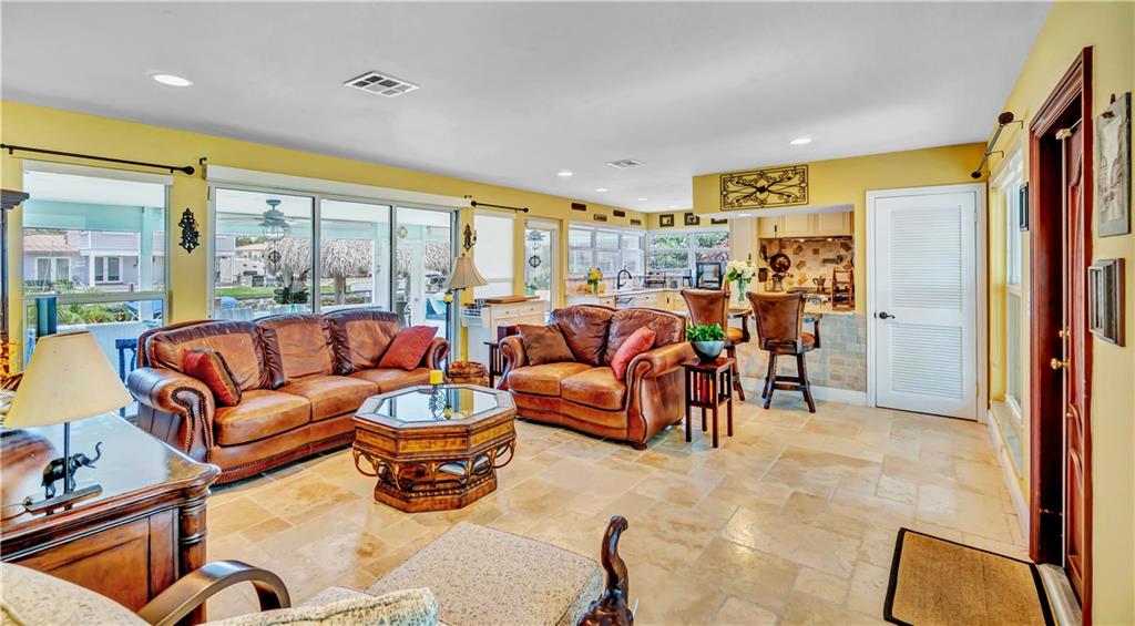 No Fixed Bridges! Unrestricted waterway to the ocean! Boating community! This recently updated home is situated on a deep-water canal, the widest canal in the Citrus Isles. The home has gorgeous travertine floors throughout with warm, naturally lit living spaces. The gourmet kitchen features Jenn-Air appliances, granite countertops, custom cabinetry with a built-in refrigerator, and a large 6-burner gas stove. Through the sliding glass doors are an enclosed porch and seating area for large dinner parties and get-togethers. The expansive outdoor entraining area features a comfortable Zen feel with two tiki huts and a full outdoor kitchen that includes a high-end grill and a Green Egg smoker. Water frontage on the canal is 65' with a new 55' dock. The property can accommodate a 55' vessel.