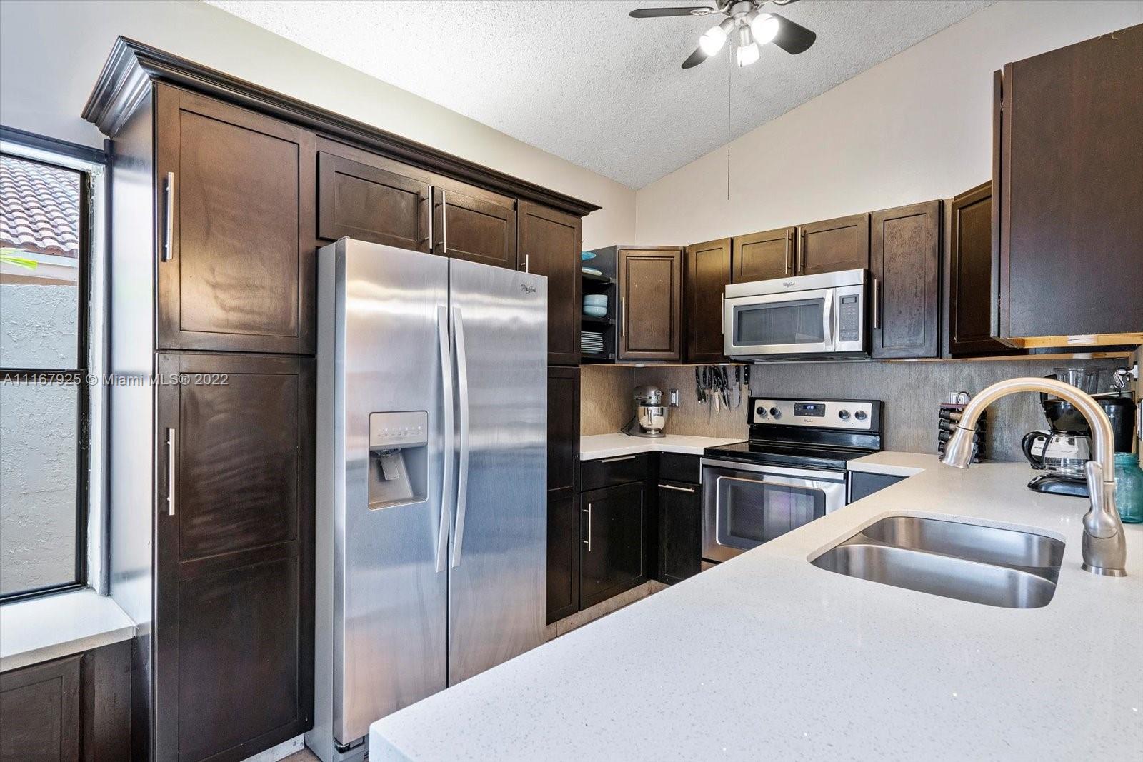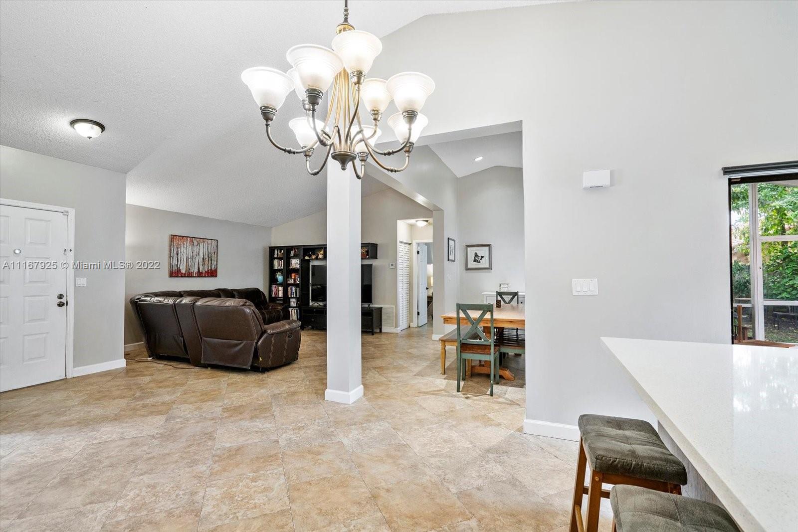 BEAUTIFUL MOVE-IN READY 3 Bedroom 2 bathroom home in the HIGHLY SOUGHT-AFTER Waterford community of Davie. This home features a Split Floor plan, Vaulted Ceilings & a LARGE Formal Dining Area. You’ll love the many things this home has to offer such as Stainless-Steel Appliances, Quartz Counters, Open Floor Plan, and an Expansive Living Room. The Spacious Primary Suite offers you a Large Walk-in closet and TWO Separate Vanity Areas. Outside you’ll enjoy the LARGE SCREENED PORCH, Lush yard with Mango Tree that’s FENCED and 2 car garage. The Community offers Low HOA Fees, pool, courts for basketball/tennis/racketball/and more. Located near Top Rated Schools, shopping and easy access to expressways. **Actual Living Space Larger than records** - square footage added by the original builder.