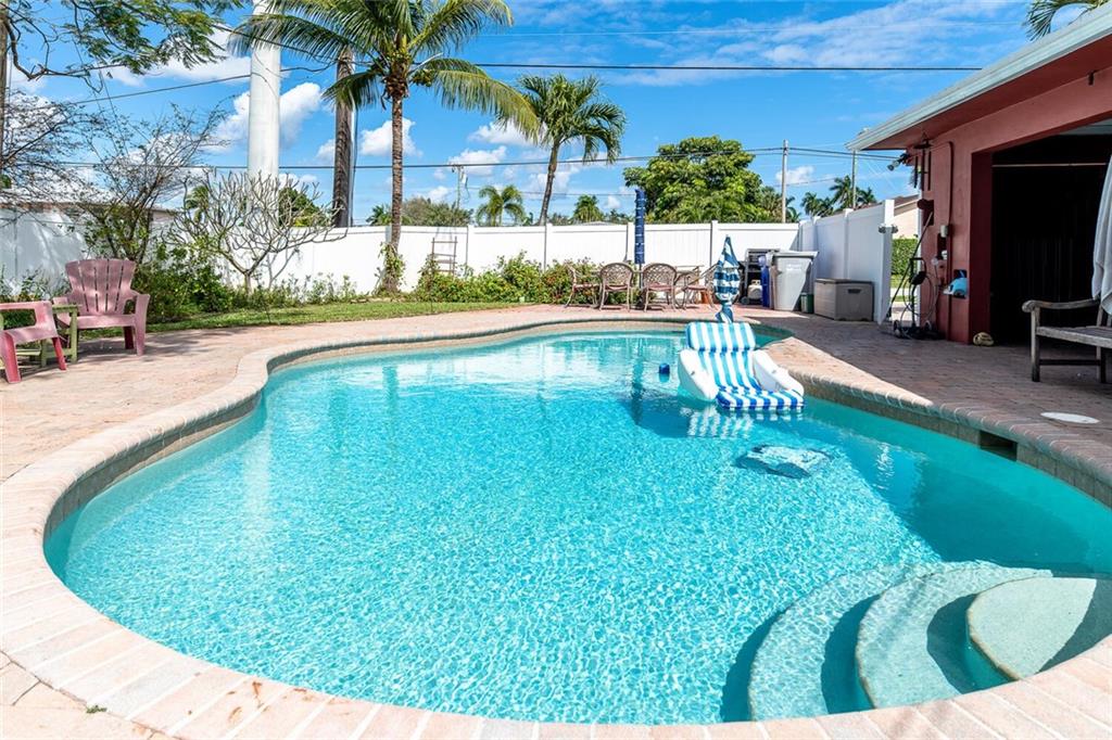 This lovely 3br/2ba pool home is a nature lover's nook! Situated on a corner lot, this home boasts an oversized, fenced yard with freeform pool and surrounding butterfly garden! Outstanding features include split bedroom plan; large master bedroom with custom cedar closer; updated kitchen with new stainless steel appliances, granite counters & wood cabinets; plantation shutters; impact windows and/or accordion hurricane shutters throughout; paver circular driveway; natural, native butterfly garden; freshly painted exterior and new roof! When not enjoying the home - bike to the beach or many nearby restaurants and shops! Hurry! This will not last!