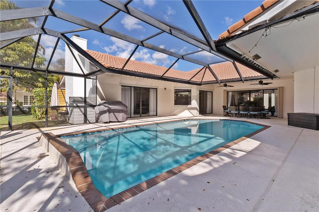 A truly stunning home located in the prestigious community of Pine Ridge. You don't want to miss this one! It is one of the largest sq ft. homes in the community. With a wide open floor plan excellent for entertaining, raising a family, or for some peace and quiet. Tons of natural light enter the home from every angle and sliding glass doors that all open up to the pool give an amazing indoor outdoor feel unlike other homes. The home also has huge vaulted ceilings, a remodeled kitchen, new vinyl plank floors, and new diamond bright pool and blue glass tile. PGT Impact front doors and front windows. Real Fireplace! Air Conditioner Replaced 2017 Roof Replaced 2009