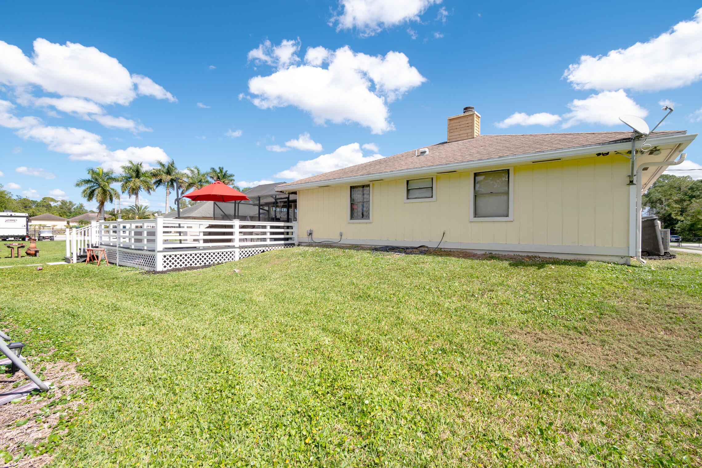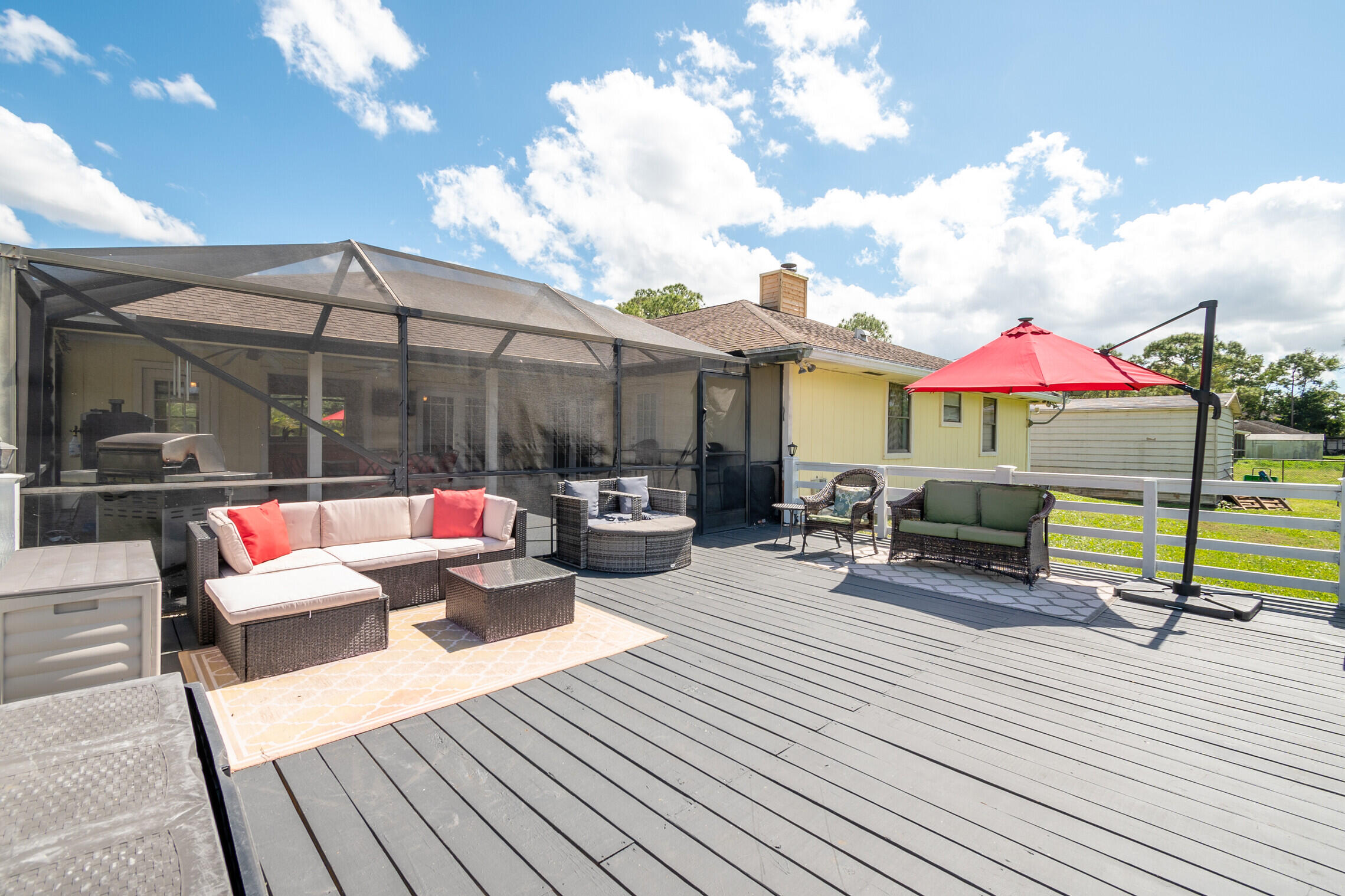 Beautiful 4 bed/2 bath home with no HOA on 1.25 fenced acres with circular drive just minutes to great schools and shops. This split floor plan home offers open concept living space with beautiful tile throughout and vaulted ceilings. Relax by the gorgeous stone fireplace and enjoy Florida's fantastic weather in your screened in patio with wet bar. Soak up the sun on the brand new deck and above ground pool. Large detached garage with 600 sq ft of workspace, storage or parking. This spacious home also features additional 420 square foot converted garage with its own Ac. Garage can be converted back. Two AC units were installed 2014, new hot water heater 2021, new drain field and well 2018, vinyl siding added to front and south side, crown molding, kitchen RO, home generator system prepped.
