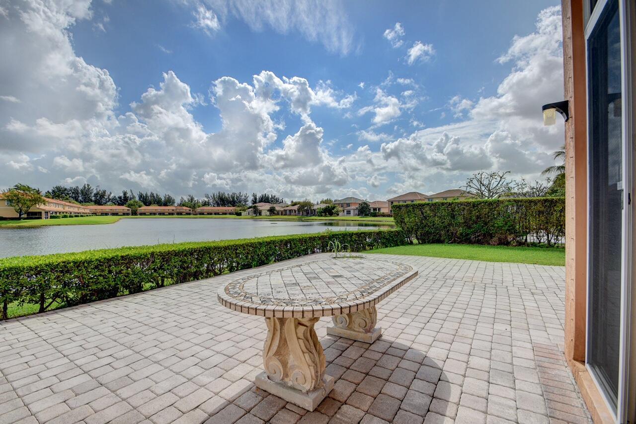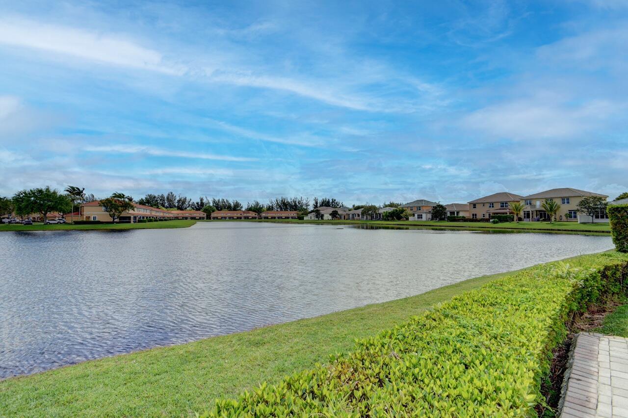 GORGEOUS WATER VIEWS!! WOW, Best describes this Freshly Painted 4Bd/3Bath. Grand Entrance leads to a Spacious Bright Split Bedrm, One Level Floor Plan. High Ceilings throughout. Enormous Master Suite and Master Bath w/Jacuzzi Tub. Open Kitchen w/Counter Seating and Breakfast Nook. Family Room w/Sliders open to Patio overlooking Water and Fountain. Formal Dining and Living Rooms. Large Windows throughout. Tile in Living Areas. Real Wood Floors in Bedrms. 2Car Garage. New A/C. Large Patio and Big Back and Side yards. Room for Pool. Gated Community. Clubhse. Community Pool. Fitness Center. Tennis Courts. Low HOA $255/mth. Easy access to Turnpike, I95. 20 minutes to Palm Beach Island and Beach. Minutes to Restaurants, Shops. 12 minutes to Downtown WPB, Rosemary Sq, Kravis Center. Pets Welcome!