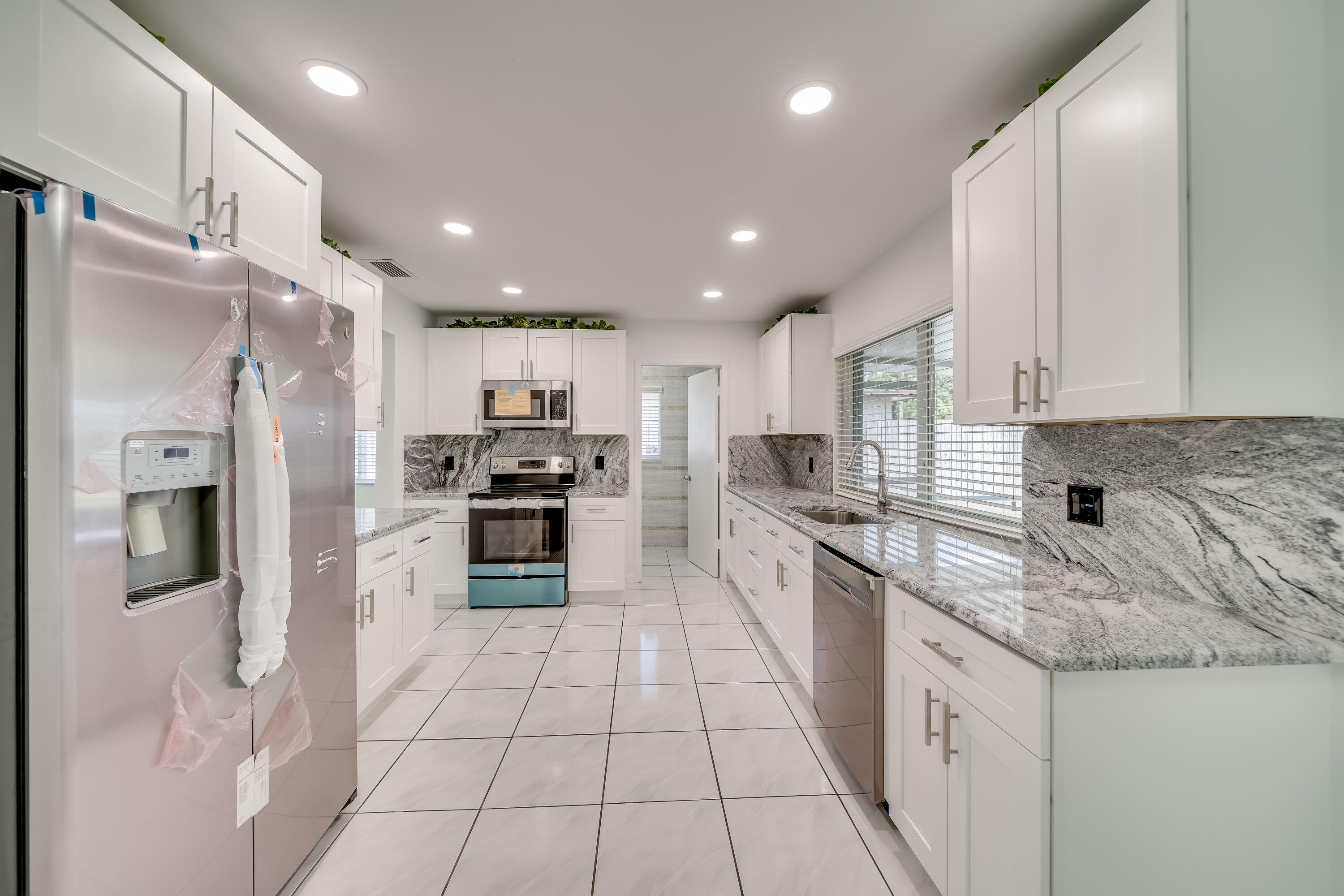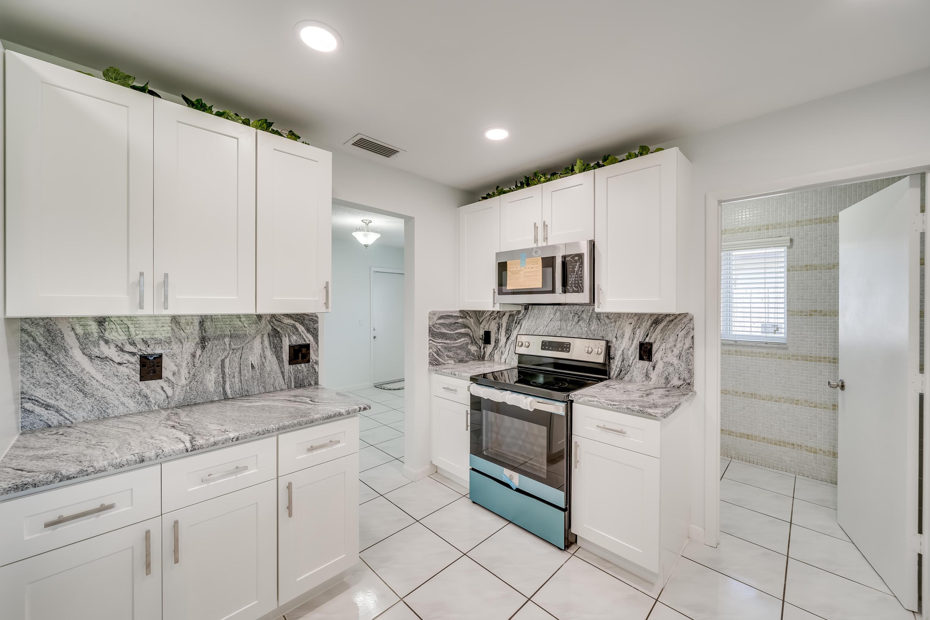 Entire home remodel. Hurricane windows, newer a/c, wood cabinets and granite tops kitchen and both bathrooms. All appliances stainless and brand new. Floors are vinyl wood plank and ceramic tile throughout. Alarm system, auto sprinkler system, new roof, new electrical fixtures, moveo-in ready. Abuts Rainbow Lakes Park.PRE-QUALIFIED Buyers.