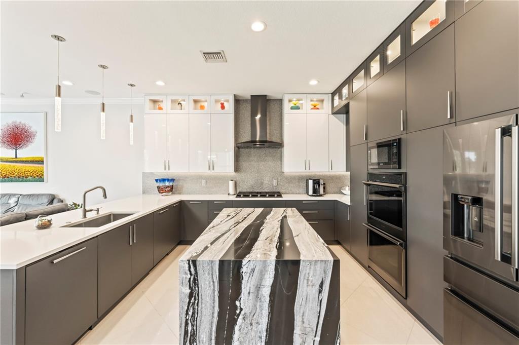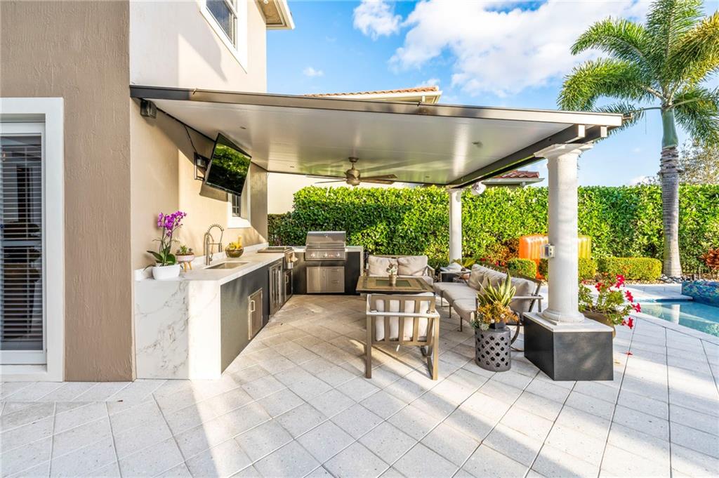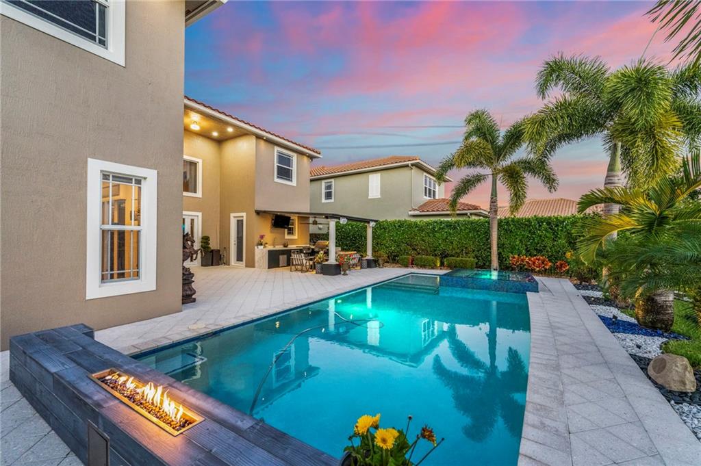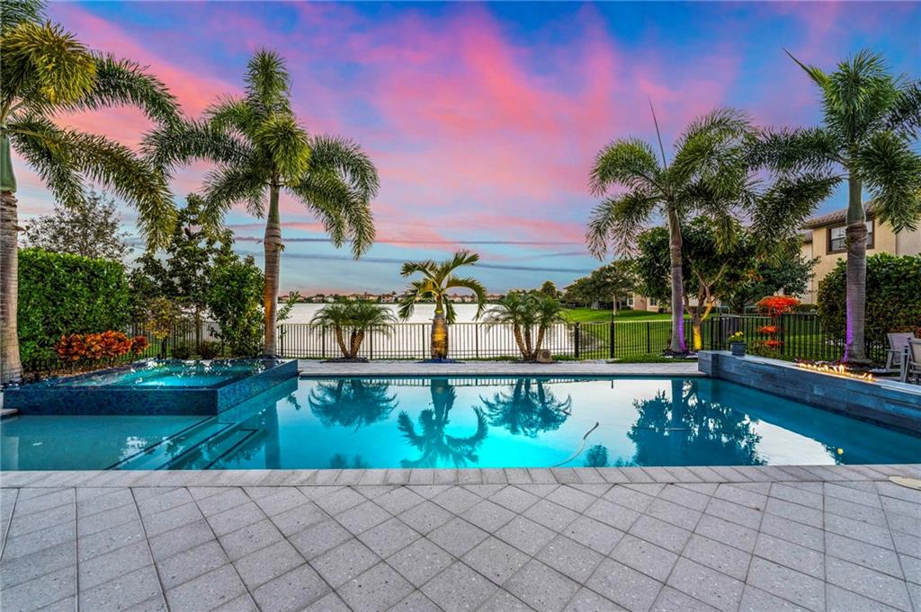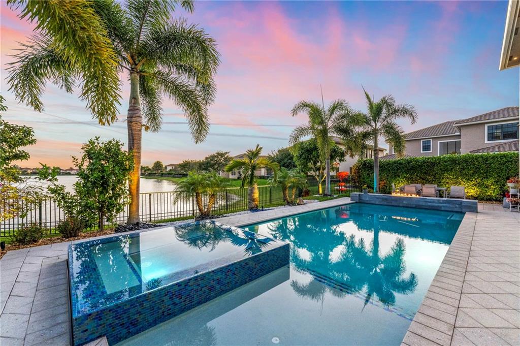 Live luxuriously in this 5BR/4.5 Windsor Model at Miralago. From the entryway to the backyard, no upgrade has been spared & each room holds unmatched details from floor to ceiling. Entertain in your formal living space with a custom built wet bar & chandelier upgrade. The luxury carries into the kitchen where exotic Brazilian granite graces the waterfall island. The Richelieu matte & high gloss cabinets offer unparalleled class. Renovated in 2019 the resort style yard offers a gas heated pool, spa & fire feature. In the outdoor kitchen you’ll find matte quartzite countertops & black granite stone. With wide views of the lake, the outdoor area exudes Florida lifestyle. Fully impact protected & high def/night vision security system installed. Must see-full feature list too extensive to list!