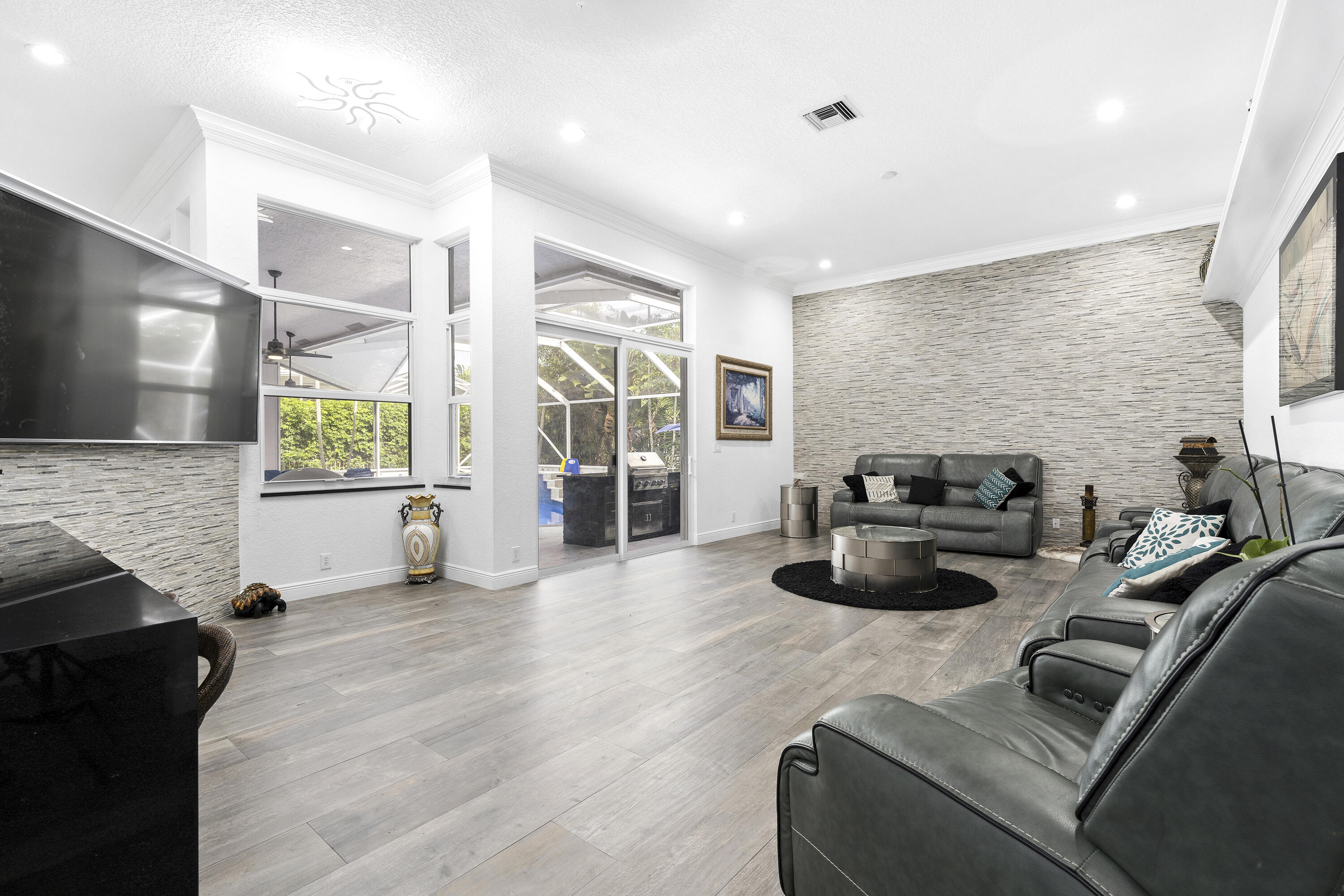 Roof 2021. Windows and Doors are New from 2021 - Hurricane Impact .Pool redone 2021 w/ outdoor kitchen Absolutely stunning home. Seller has re located and we are looking for a quick close. Schools and subdivision are amazing for kids. No HOA approval required. Refrigerator and stove on pictures do not convey or stay with sale. They are being replaced by others.