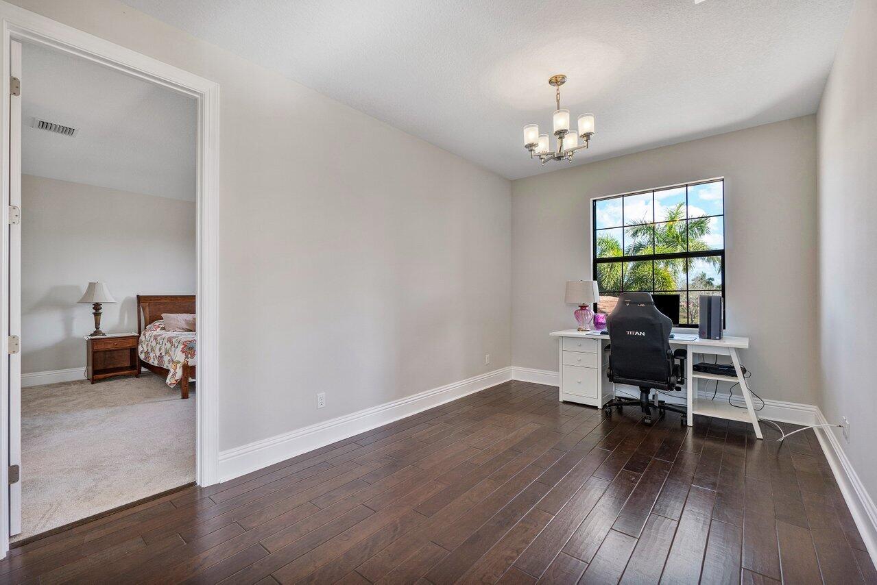 Rare opportunity to purchase a newer home (built in 2014) in the highly desirable neighborhood of The Woodlands. Tucked away from flying golf balls & constant chatter, The Woodlands offers peace, serenity & gorgeous sunsets. 3 Bedrooms plus a huge den/office & 4 full baths, the great room layout is both functional and modern. This ''Control 4'' smart home boasts hurricane impact glass throughout, lots of natural light, an upgraded kitchen (cabinets, counters & GE Monogram stainless appliances), 10-foot-long wet bar w/ tons of storage, granite counters, wine fridge & ice maker. 1st floor Master bedroom features wood floors and 2 large closets. Den/office w/ floor to ceiling built in shelves, desk & wood floors. Enjoy unobstructed views of the Preserve & lake while living the Ibis lifestyle.