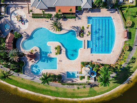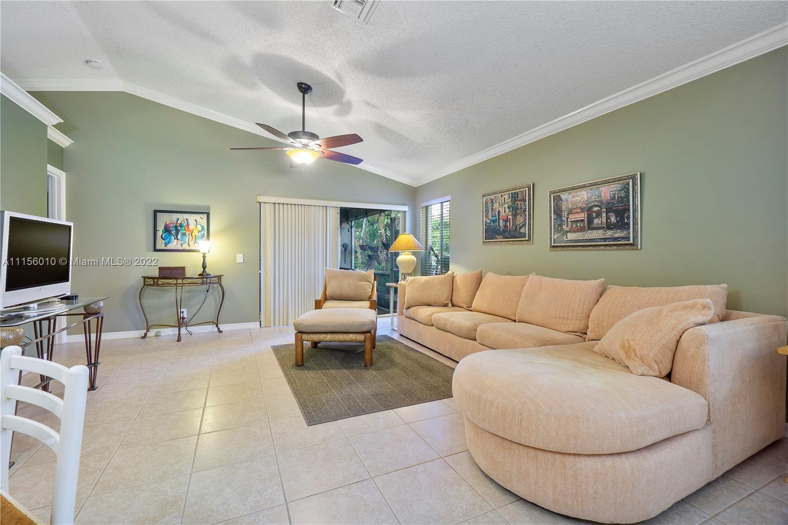 Three bedroom/2 bath home w/ 2-car garage in family-oriented community of guard-gated Savanna. All tiled living area w/volume ceilings, crown molding. Open updated kitchen with 42" white cabinetry, granite countertops & S/S appliances. Split bedroom plan. Wood laminate in bedrooms, closet systems. Walk-in closet, linen storage in master bedroom. Updated master bathroom & vanity area. Living area opens to screened patio. A/C & water heater have been replaced. Washer/dryer in garage. Hurricane panels. Paver driveway. Lushly landscaped, fully fenced, offering very private setting. Certified NatureScape. Recreational area in community offers resort-style clubhouse, multiple pools, baseball/soccer/hockey fields, basketball courts, mini-golf, playgrounds for family fun! Highly rated schools.