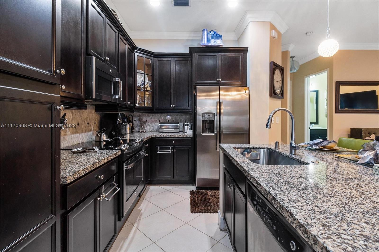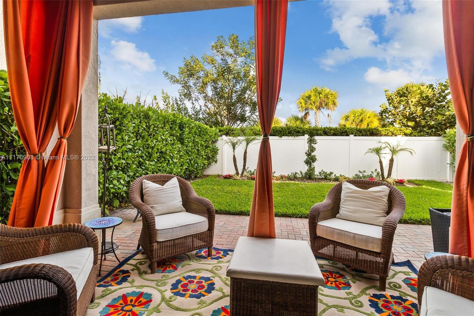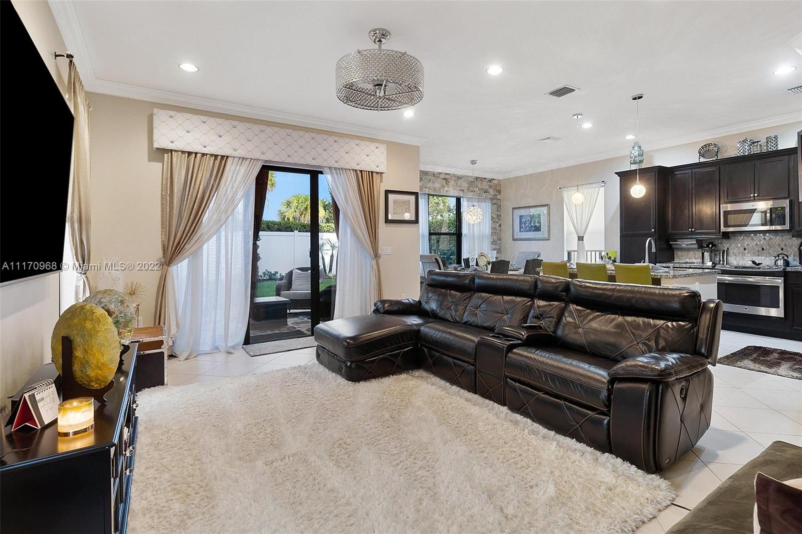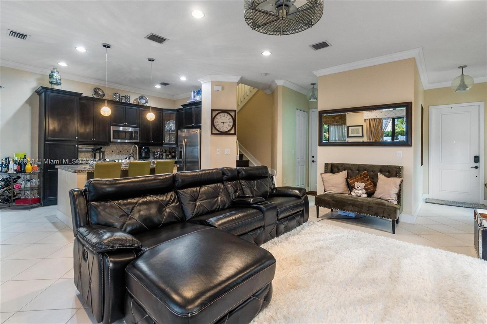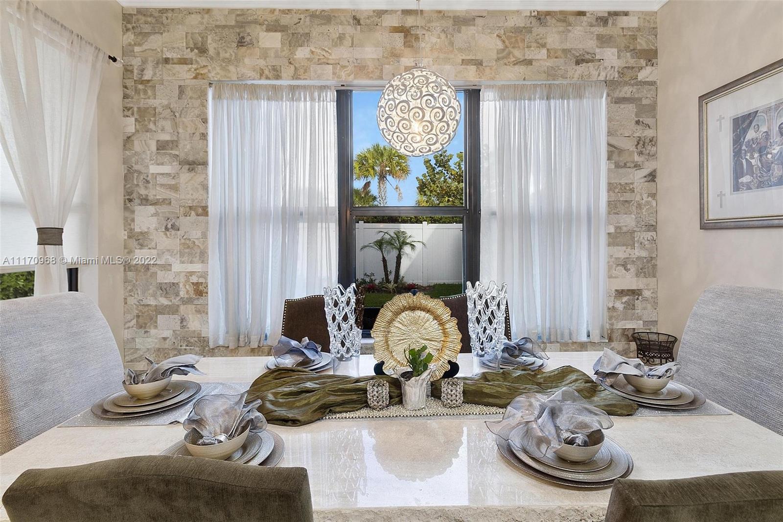 Step inside a spectacular 3 bedroom 2.5 bathroom home and be greeted with exacting standards, premium finishes, outdoor paved patio overlooking a well manicured lawn and garden. First floor porcelain tile throughout, open kitchen with large island, custom kitchen cabinetry with recessed lighting within, granite countertops, tiled backsplash, chandelier globe lighting adorning the kitchen and dining room area, along with stone finished accent wall in dining area. Window treatment and recessed lighting throughout home, approaching a wood landing staircase once upstairs, an oversized Master Bedroom suit w/wood flooring awaits you, shower/roman tub combo with stone backsplash and custom double vanity. 24hr gated community with amenities: salt water pool, gaming, gym, playground.
