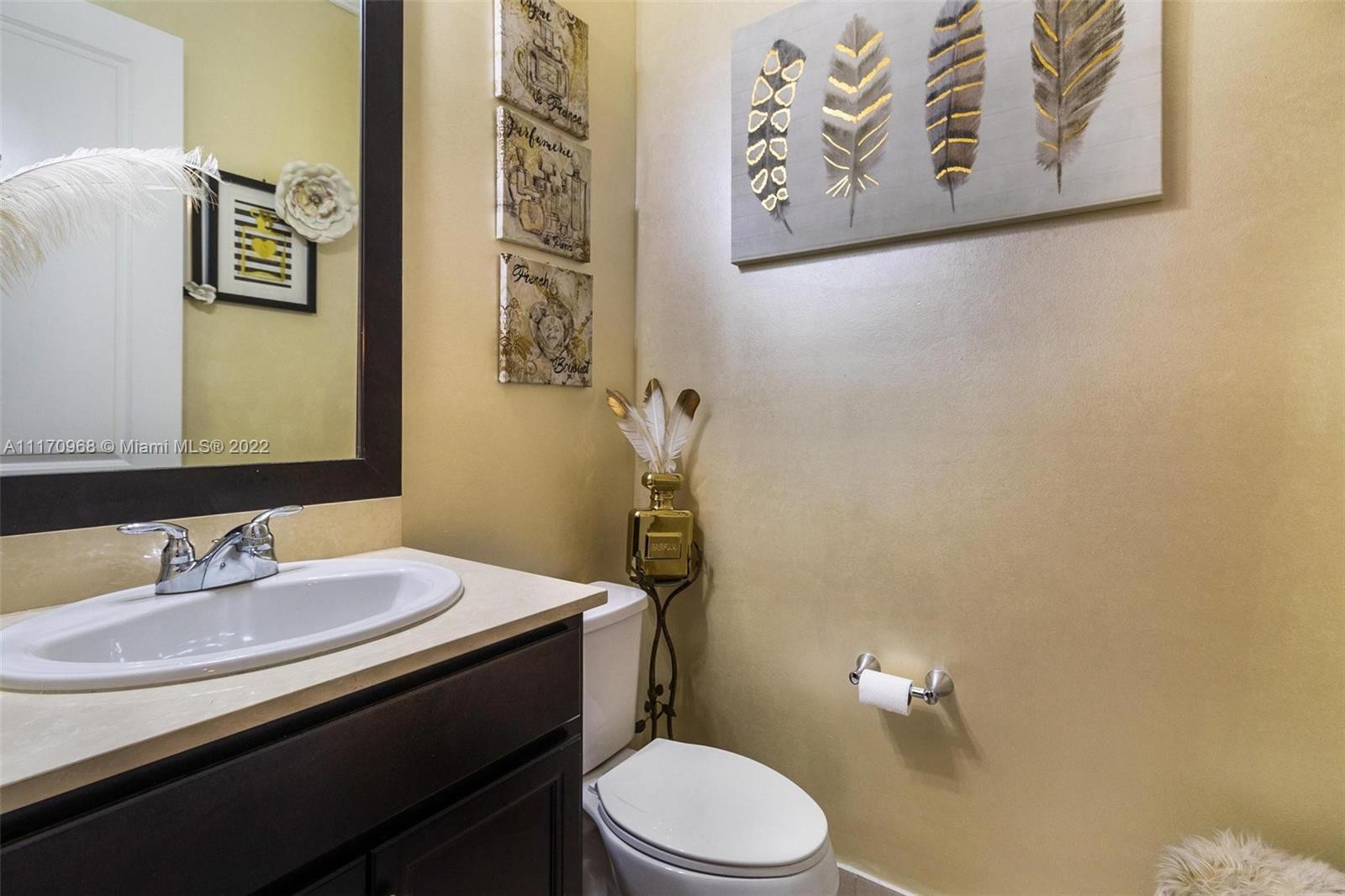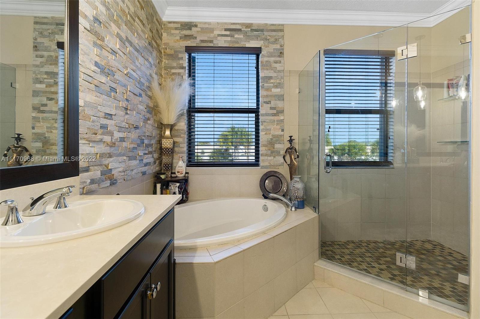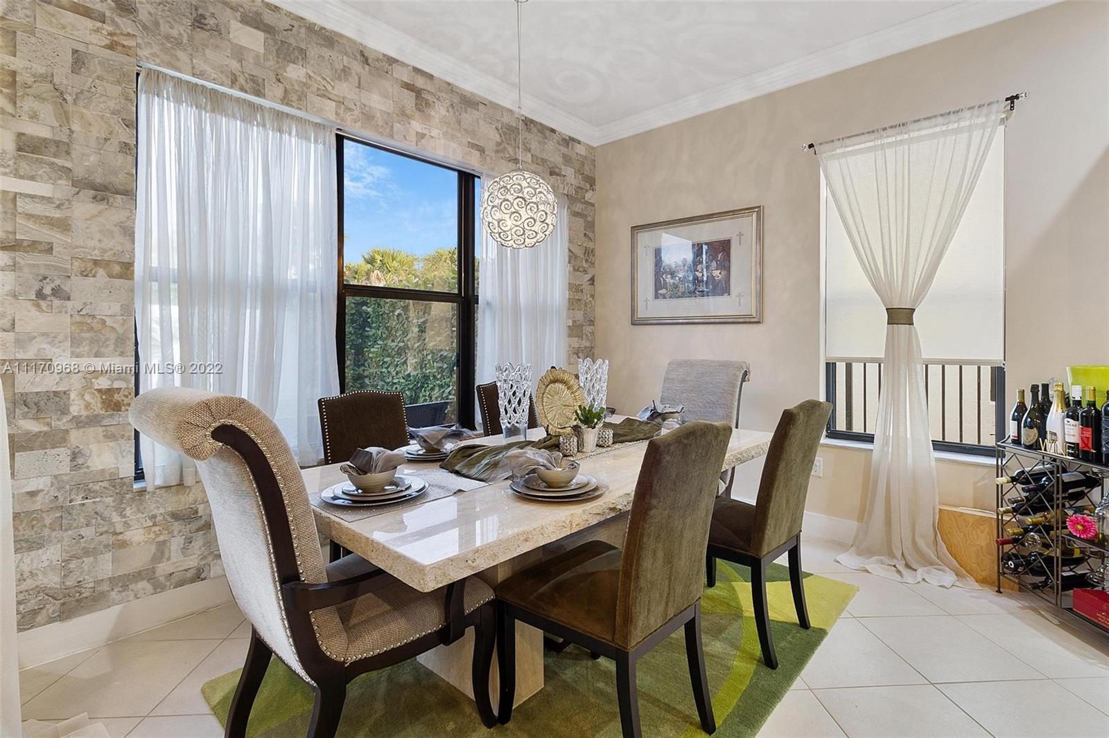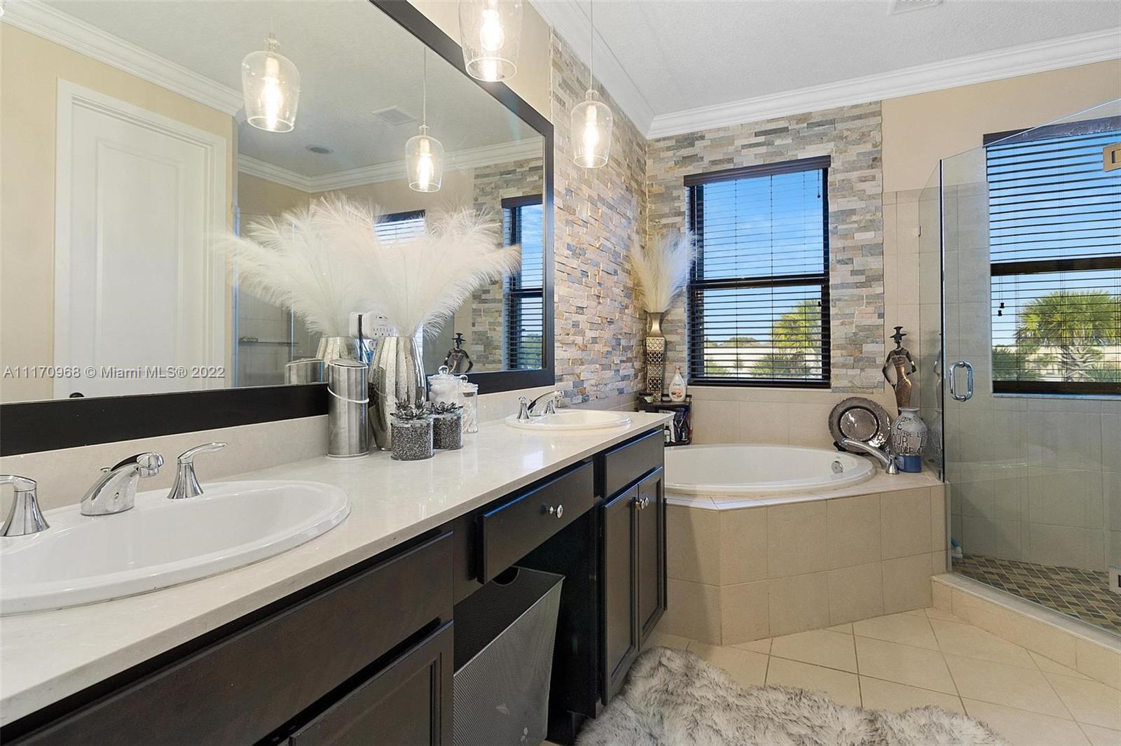 Step inside a spectacular 3 bedroom 2.5 bathroom home and be greeted with exacting standards, premium finishes, outdoor paved patio overlooking a well manicured lawn and garden. First floor porcelain tile throughout, open kitchen with large island, custom kitchen cabinetry with recessed lighting within, granite countertops, tiled backsplash, chandelier globe lighting adorning the kitchen and dining room area, along with stone finished accent wall in dining area. Window treatment and recessed lighting throughout home, approaching a wood landing staircase once upstairs, an oversized Master Bedroom suit w/wood flooring awaits you, shower/roman tub combo with stone backsplash and custom double vanity. 24hr gated community with amenities: salt water pool, gaming, gym, playground.