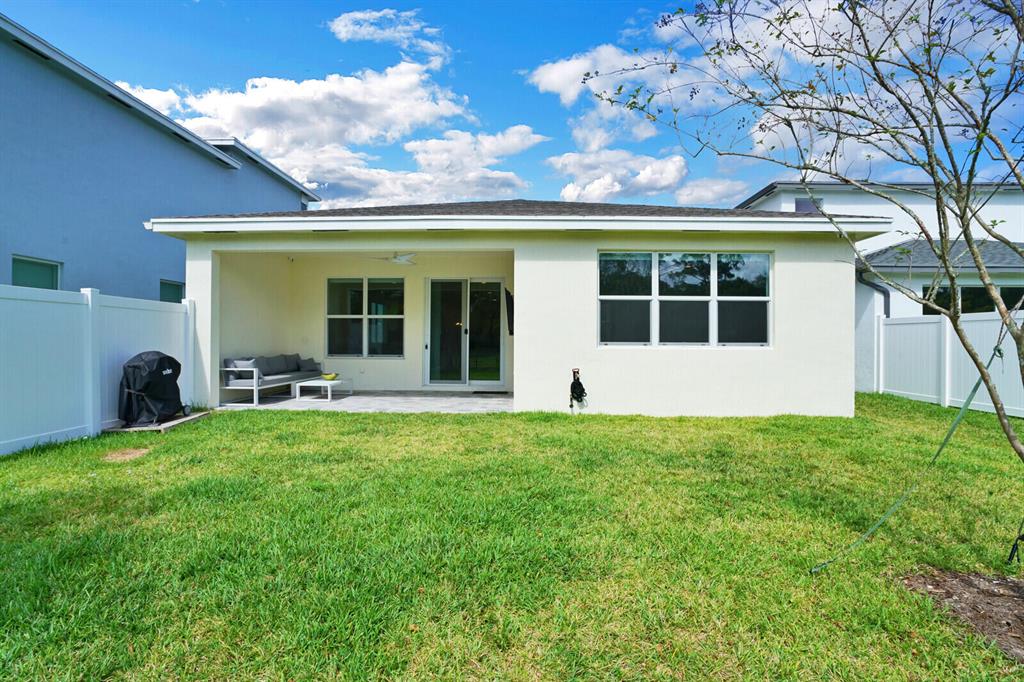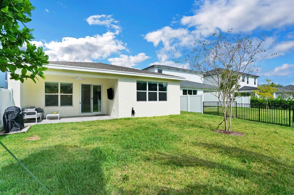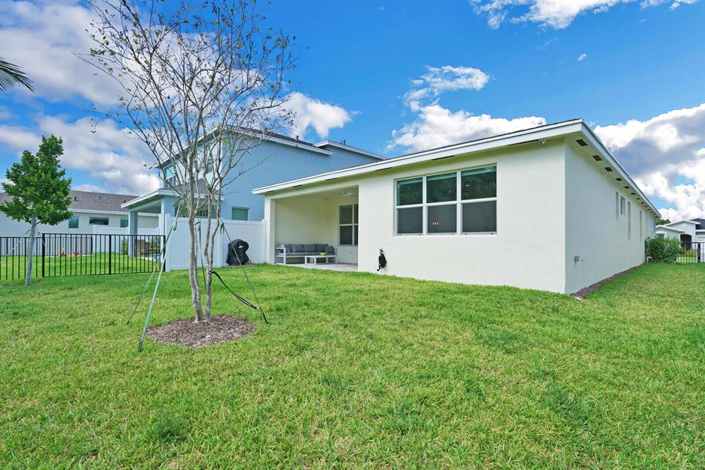 Beautiful 4 Bedroom 3 Bathroom, 2 car garage with lakeview built 2021 located in Solcera. This single-story coastal style home offers bright natural light, impact windows, stainless steel appliances, open concept kitchen with quartz countertops and granite counter in bathrooms. The backyard has a peaceful lakeview with fenced yard, fruit trees and room for a pool. Solcera is a gated community, with playground and community pool. Located near PBI Airport, I-95, Turnpike, shopping, stores, ithink amphitheatre and many more. If you're looking for a great home in South Florida, this is the home for you.