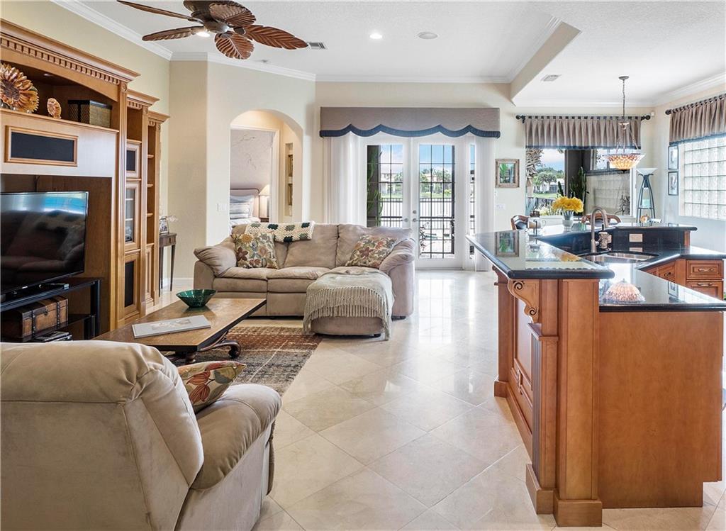 Beautiful 3 bedroom 2 bath home w/ pool on large pie shaped cul-de-sac lot w/ amazing water views in Heron Bay! Relax in your own backyard or in your screened patio. This home has volume ceilings throughout main living areas plus upgraded fixtures, fans & window treatments. Gourmet kitchen w/stainless steel appliances & granite tops. Crema Marble flooring in main living areas. Private lot w/ outdoor space that's perfect for entertaining & huge lot to play on next to the pool! Other features include accordion shutters, crown molding & ceiling speakers. 3rd bedroom currently setup as office but can be converted back. Pool is fenced & has spa but not heated. Heron Bay is a Gated community offering 2 clubhouses, pools, tennis courts, kids splash areas, social activities & much more.