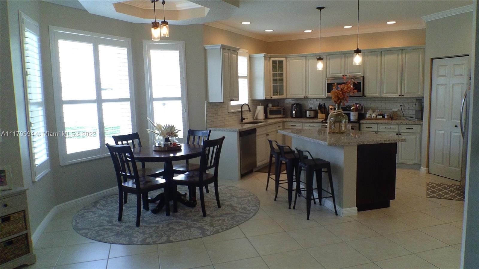Sellers Pride is Buyers Treasure~This beautiful home features an ELEGANTLY DESIGNED AND EXPANSIVE EAT-IN KITCHEN w/NEW CABINETRY, STAINLESS APPLIANCES, & GRANITE COUNTERS~Kitchen Island for serving & entertaining~CROWN MOLDING & WIDE BASEBOARDS~EXPANSIVE FRECH DOOR in family room overlooking pool/patio~Generously sized Master that includes double french doors, Bay window, DOUBLE WALK-IN CLOSETS w/cabinetry~Both upstairs bathrooms offer DUAL SINKS w/the master providing a ROMAN TUB & separate shower~PLANTATION SHUTTERS on all windows downstairs~Interior laundry room w/sink~Riviera Isles is a sought after community w/quality schools & conveniently located near I75 for easy travel, offering tennis, gym, child play areas, sidewalks, & community pool~ACCORDIAN HURRICANE SHUTTERS ON ALL WINDOWS