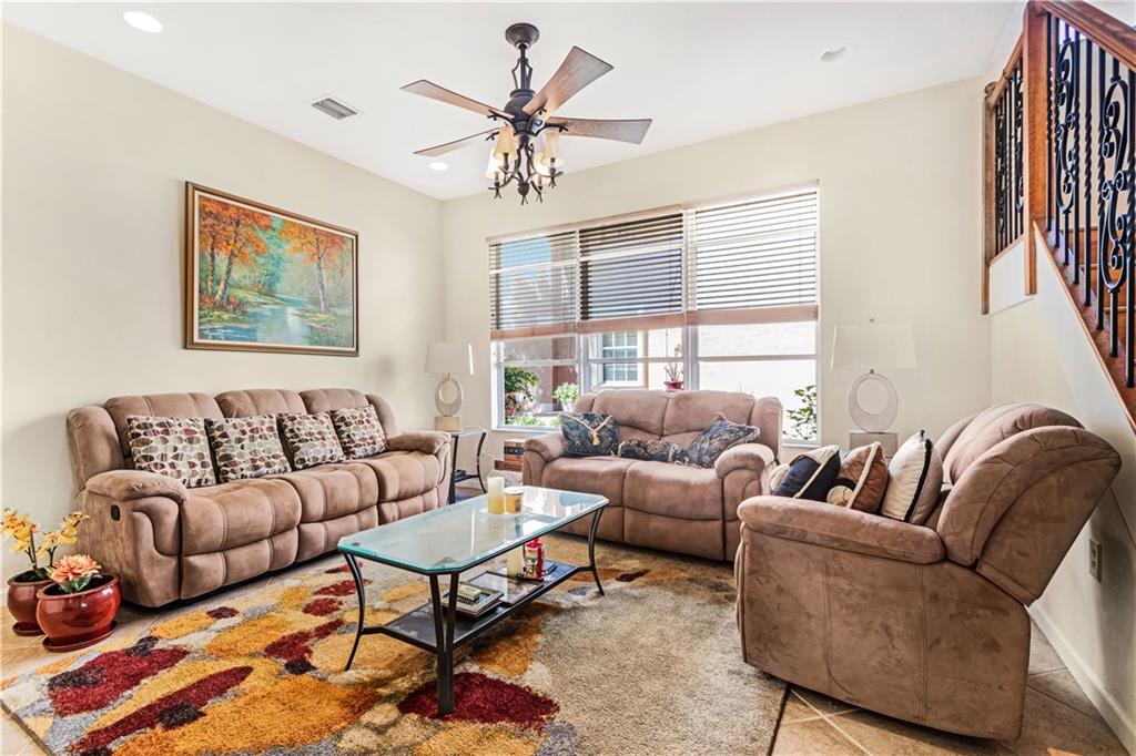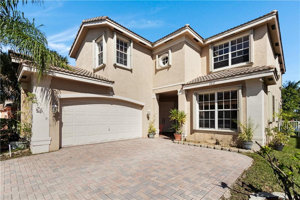 Enormous lakefront Bentley model located in the prestigious and gated Silver Falls. Downstairs features eat in kitchen with island, newer stainless steel appliances. First floor bedroom with private entrance could easily become an efficiency or a private wing including full handicapped accessible bathroom with step in shower/tub. Downstairs also features formal dining and large screened porch. Up the wooden staircase with iron rod banister, leads to 4 more bedrooms AND upstairs laundry room. Primary bedroom is massive, with entire sitting area or office. Two spacious closets. Split master bathroom with adjoining shower. Also features French doors leading out to balcony overlooking the lake. Accordion shutters on all windows for hurricane protection. Two car garage with paver driveway.