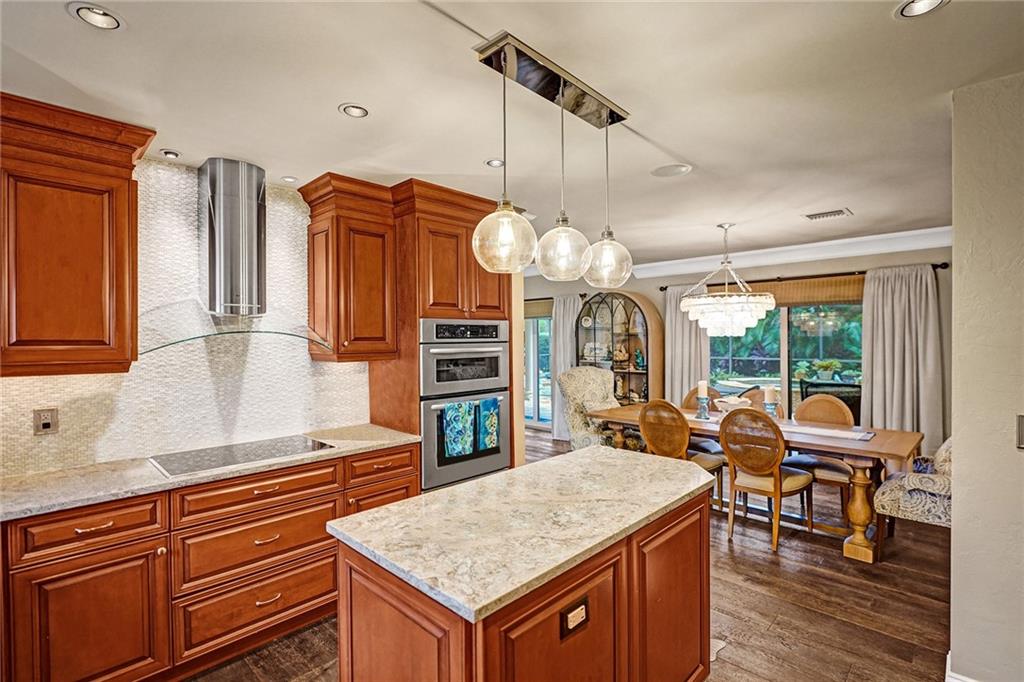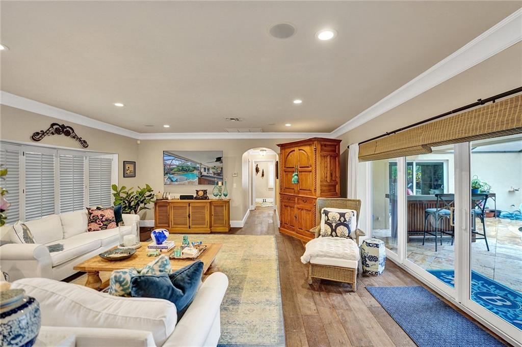 Spectacular 4 bedroom plus office 3 bath home nestled on a corner lot in Coral Ridge Country Club. Stunning backyard oasis with saltwater pool and spa surrounded by lush landscaping. Impact windows and doors. Spacious living and family rooms. Kitchen features wood cabinetry, stainless steel appliances and ample cabinetry. First floor primary suite with walk-in closet & pool views. Beautiful wood staircase with wrought iron detail leads upstairs to 2 bedrooms & bath. Interior laundry room and storage.