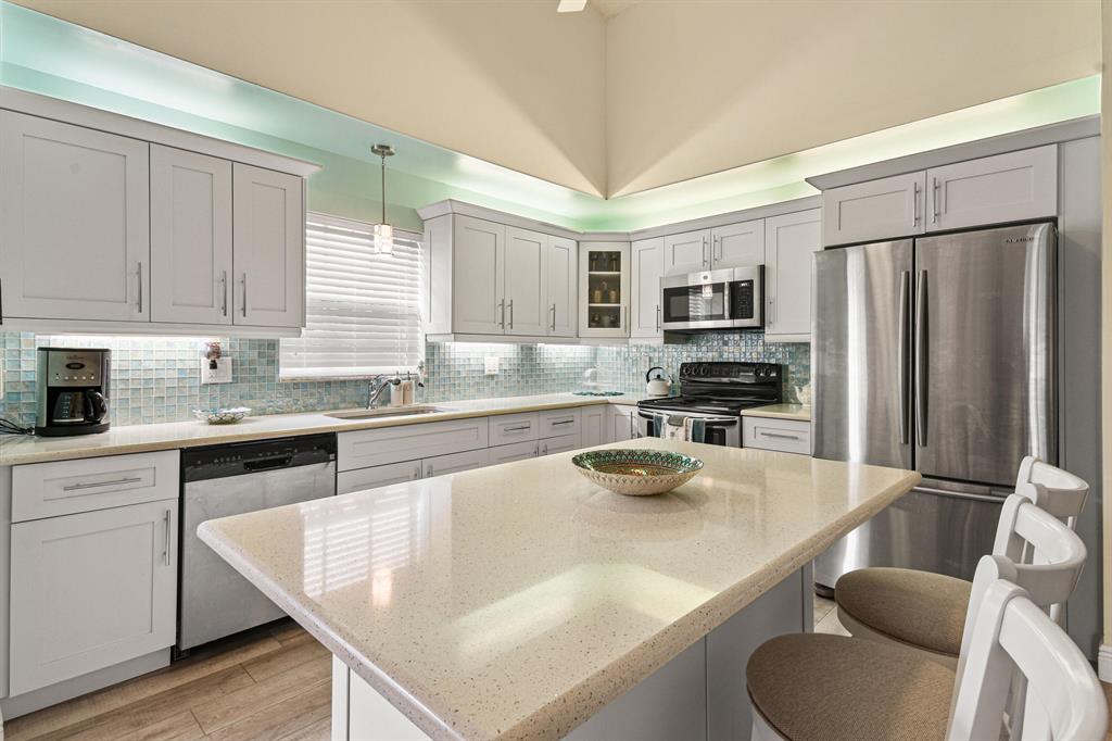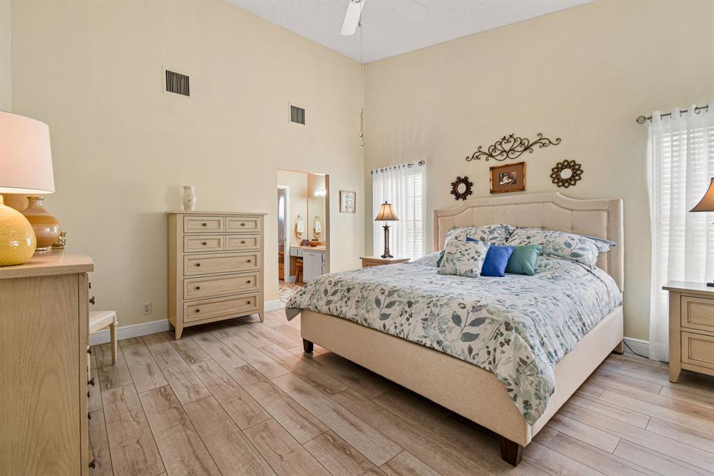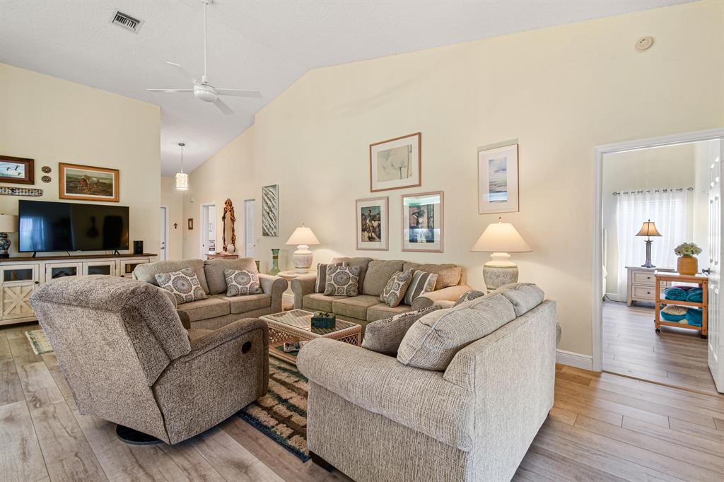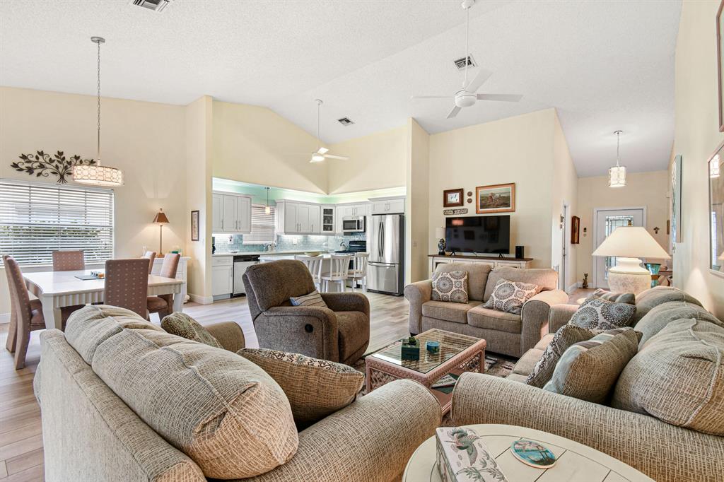 Move-in ready remodeled spacious 3 BR single family home with a Golf Course view. Renovated in 2018. Open floor plan concept. Quartz kit counters, glass tile backsplash, wood cabinets w/soft close doors, corner lazy susan and center island. New simulated wood waterproof laminate floors. Raised panel doors and new hardware, 5.5'' baseboards, new (2018) enclosed aluminum structure screened patio which overlooks the golf course. Patio has removable acrylic windows. Updated bathrooms. New A/C 2021. Come discover what Cypress Lakes has to offer including FREE Golf on 18 hole Executive Course. Clubhouse, tennis, bocci ball, gym, social events etc. Furniture Negotiable.