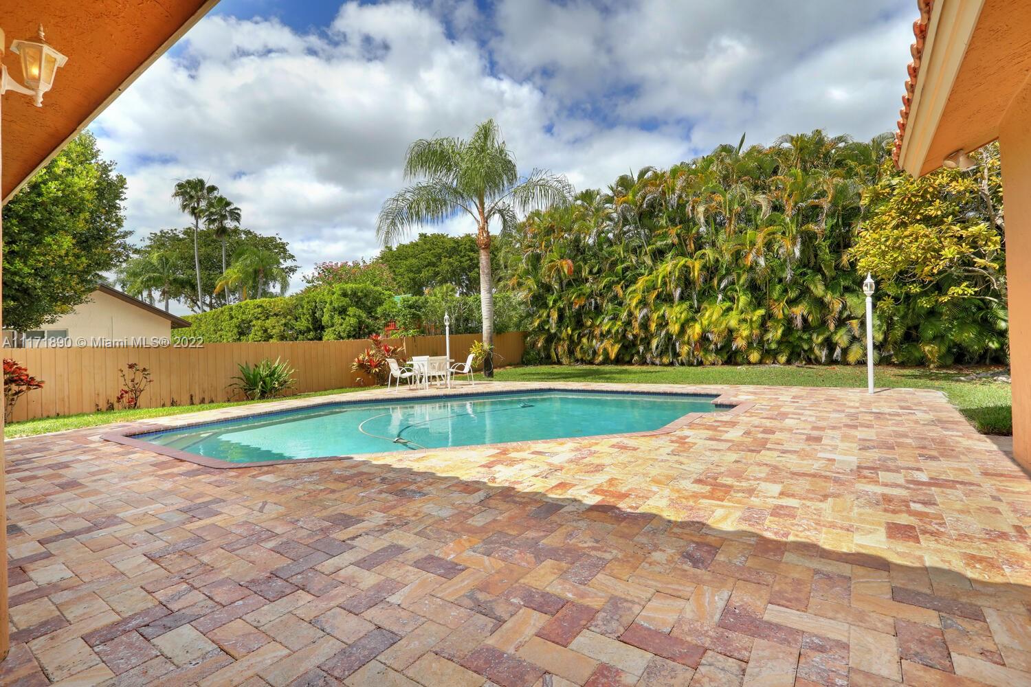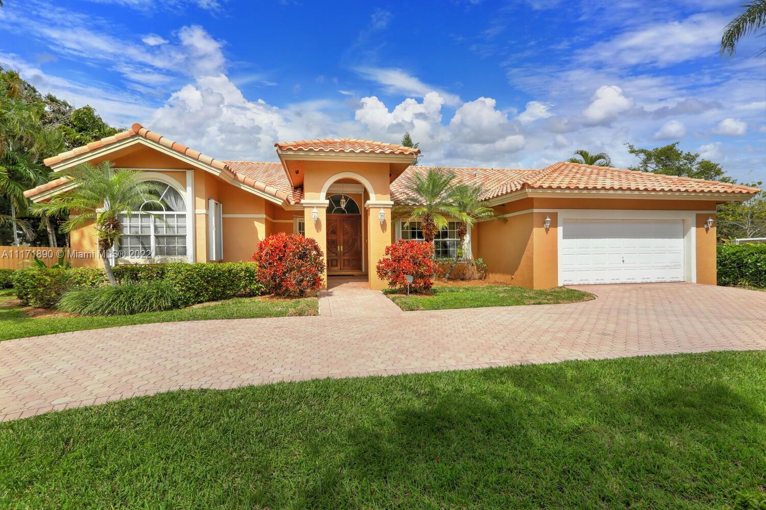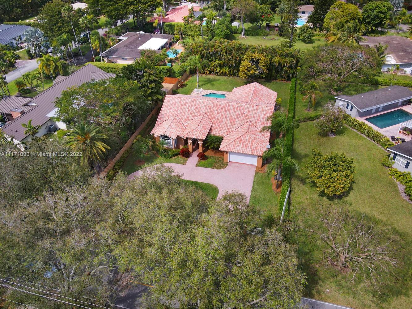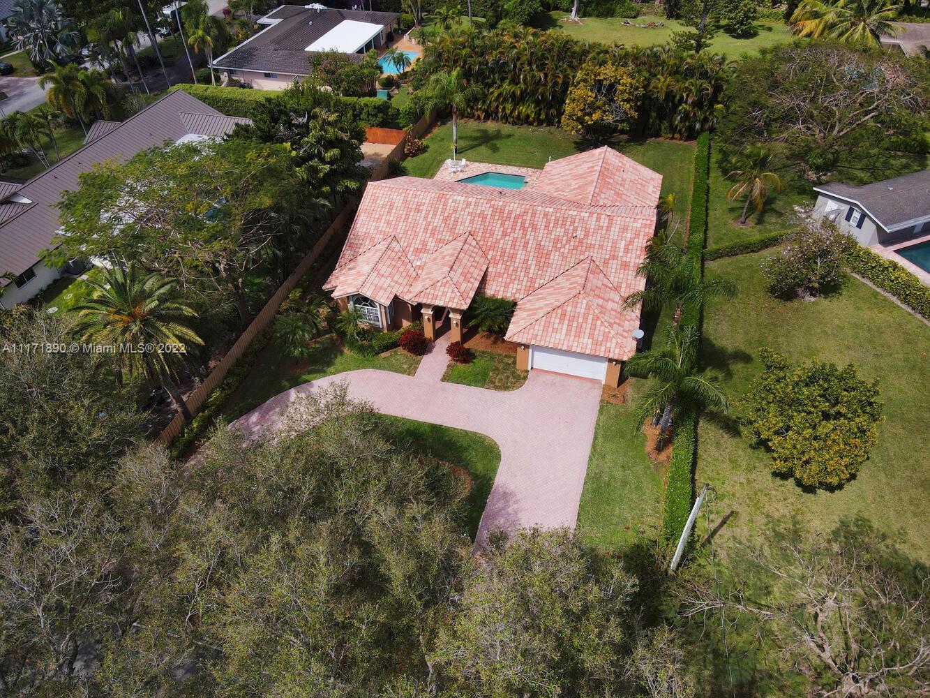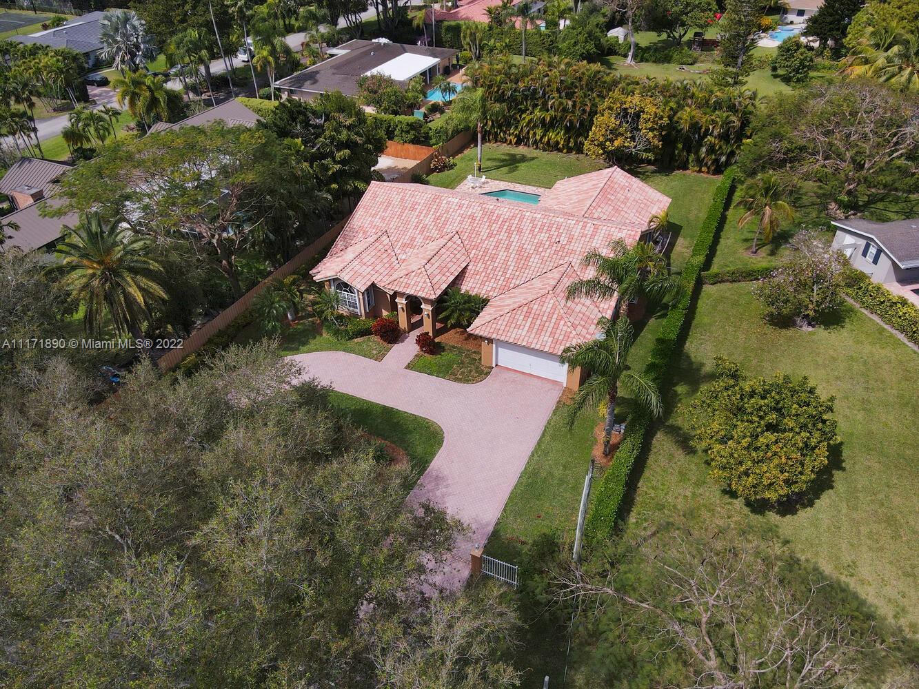 Spectacular 4 Bedroom/ 3.5 Bathroom Mediterranean residence situated in the heart of Pinecrest. property sits on a 19,511 sq.ft lot with a spacious front and backyard with wonderful landscaping throughout. The house boasts a master suite with hardwood floors, vaulted ceilings, two walk-in closets, jacuzzi bath, sunken shower, double vanity/ sinks with nice view of the pool. Other features included in the house are large living/ dining/ family room, island kitchen with granite countertops, breakfast area, built-in bar, 2 car garage, electric gate fence, fenced yard, brick patio pool deck, hurricane shutters and much more.