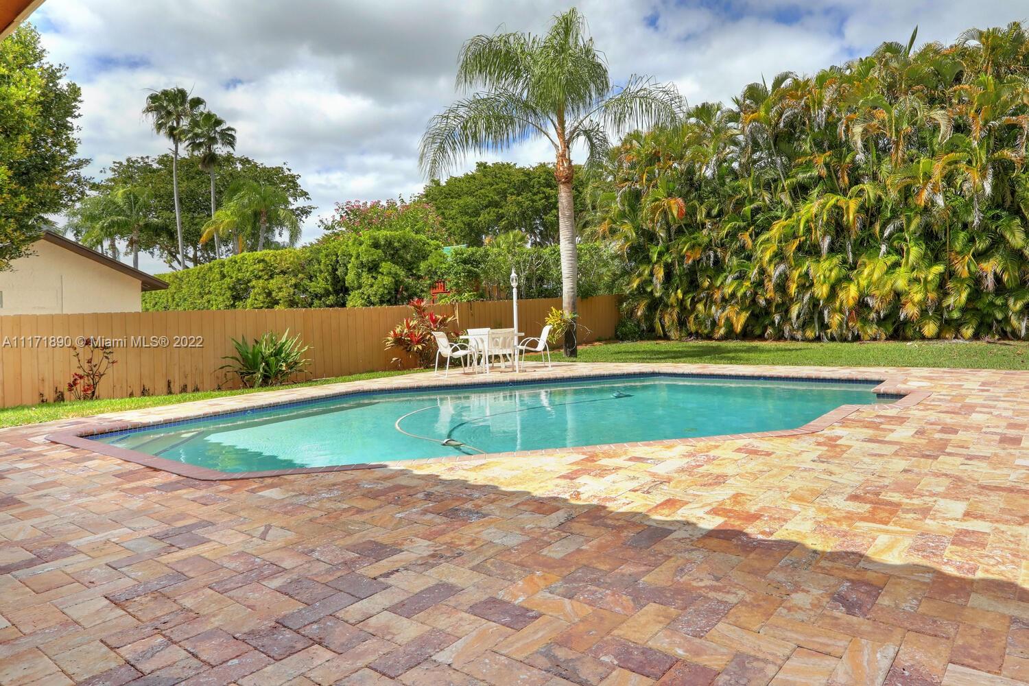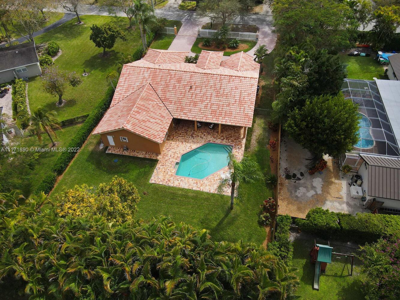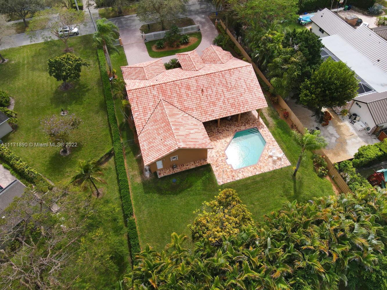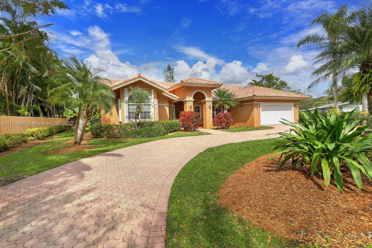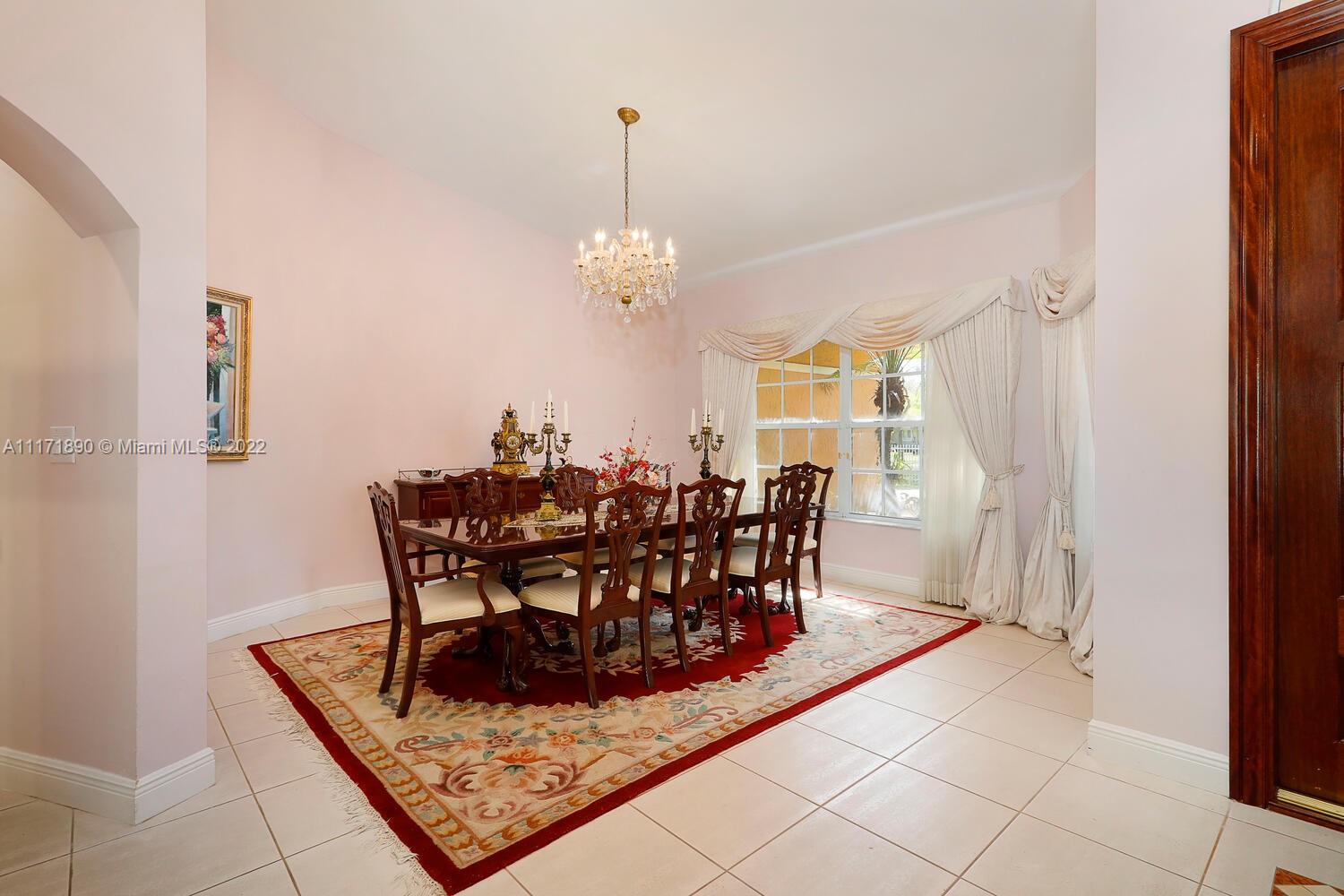 Spectacular 4 Bedroom/ 3.5 Bathroom Mediterranean residence situated in the heart of Pinecrest. property sits on a 19,511 sq.ft lot with a spacious front and backyard with wonderful landscaping throughout. The house boasts a master suite with hardwood floors, vaulted ceilings, two walk-in closets, jacuzzi bath, sunken shower, double vanity/ sinks with nice view of the pool. Other features included in the house are large living/ dining/ family room, island kitchen with granite countertops, breakfast area, built-in bar, 2 car garage, electric gate fence, fenced yard, brick patio pool deck, hurricane shutters and much more.