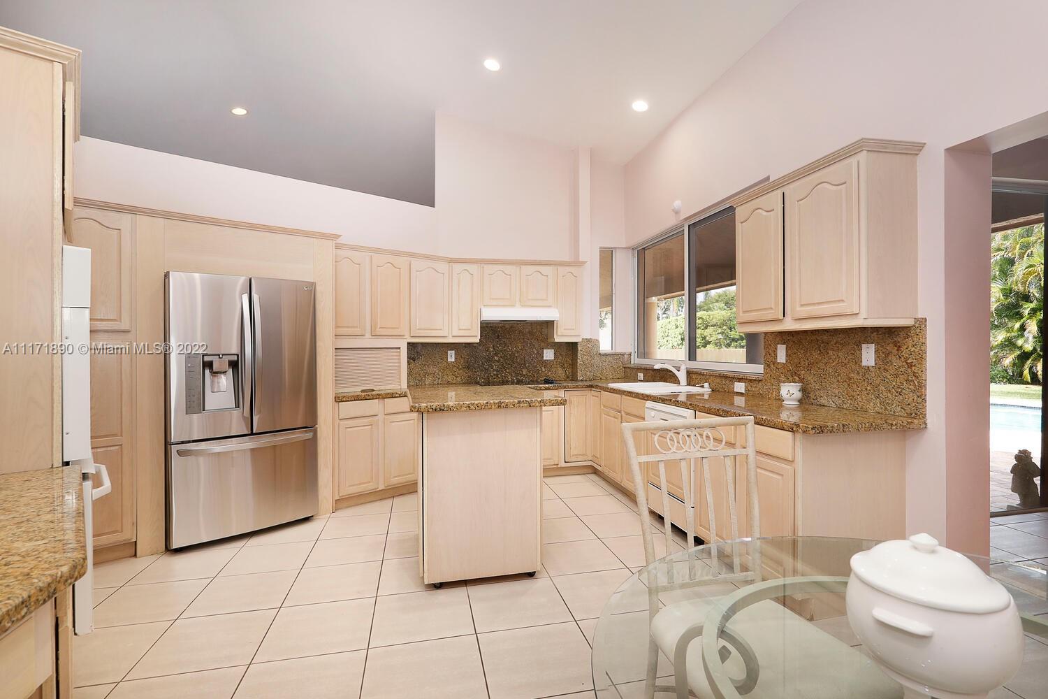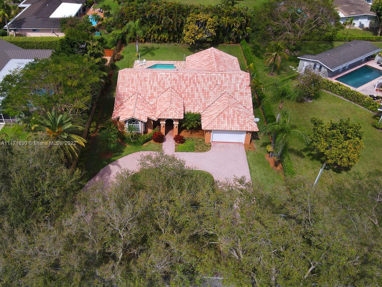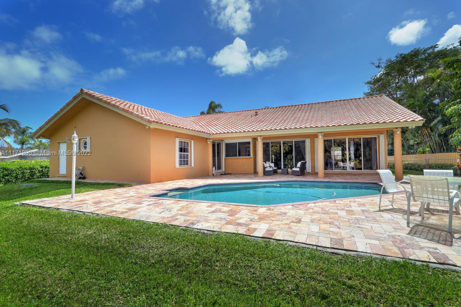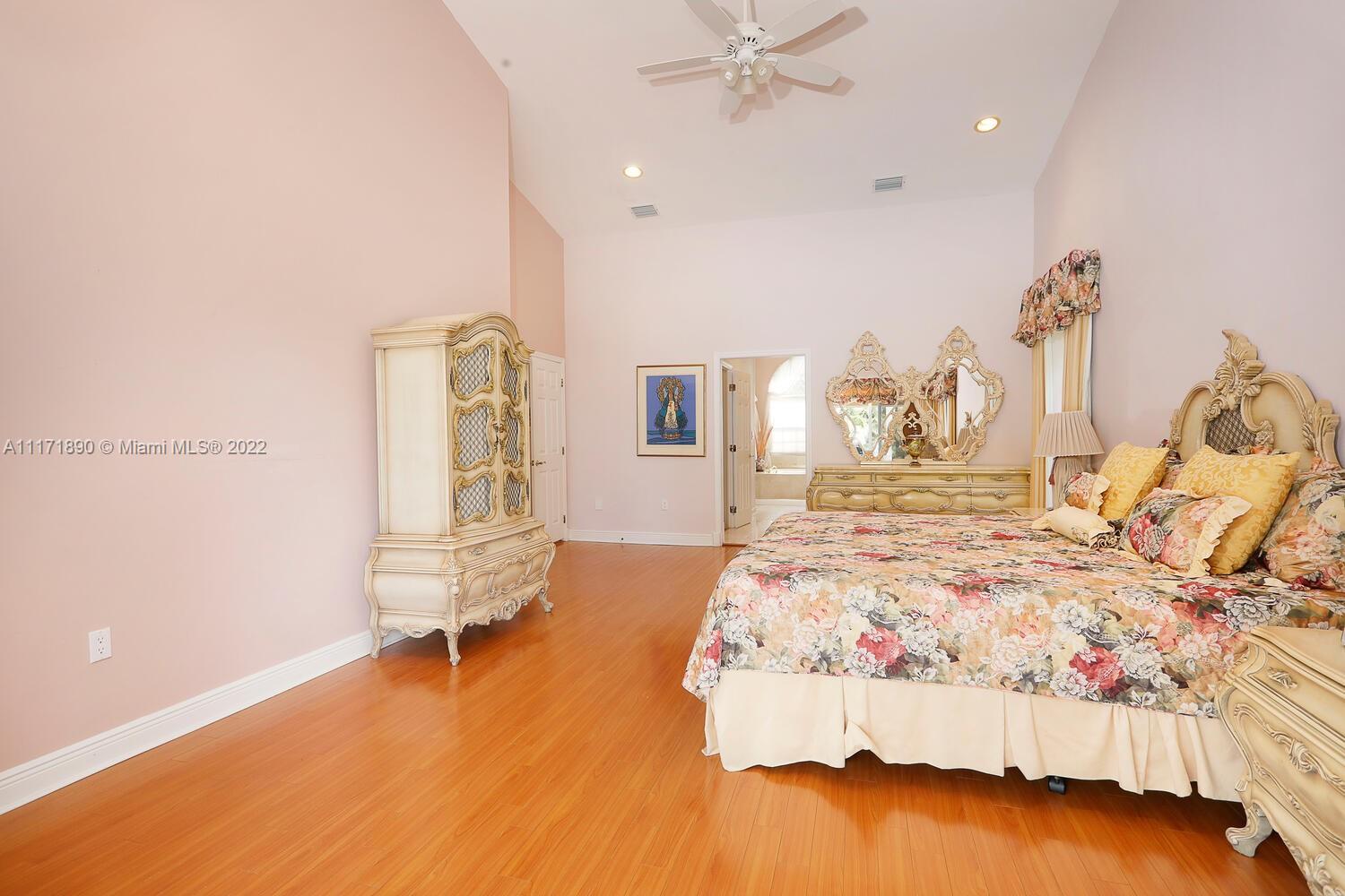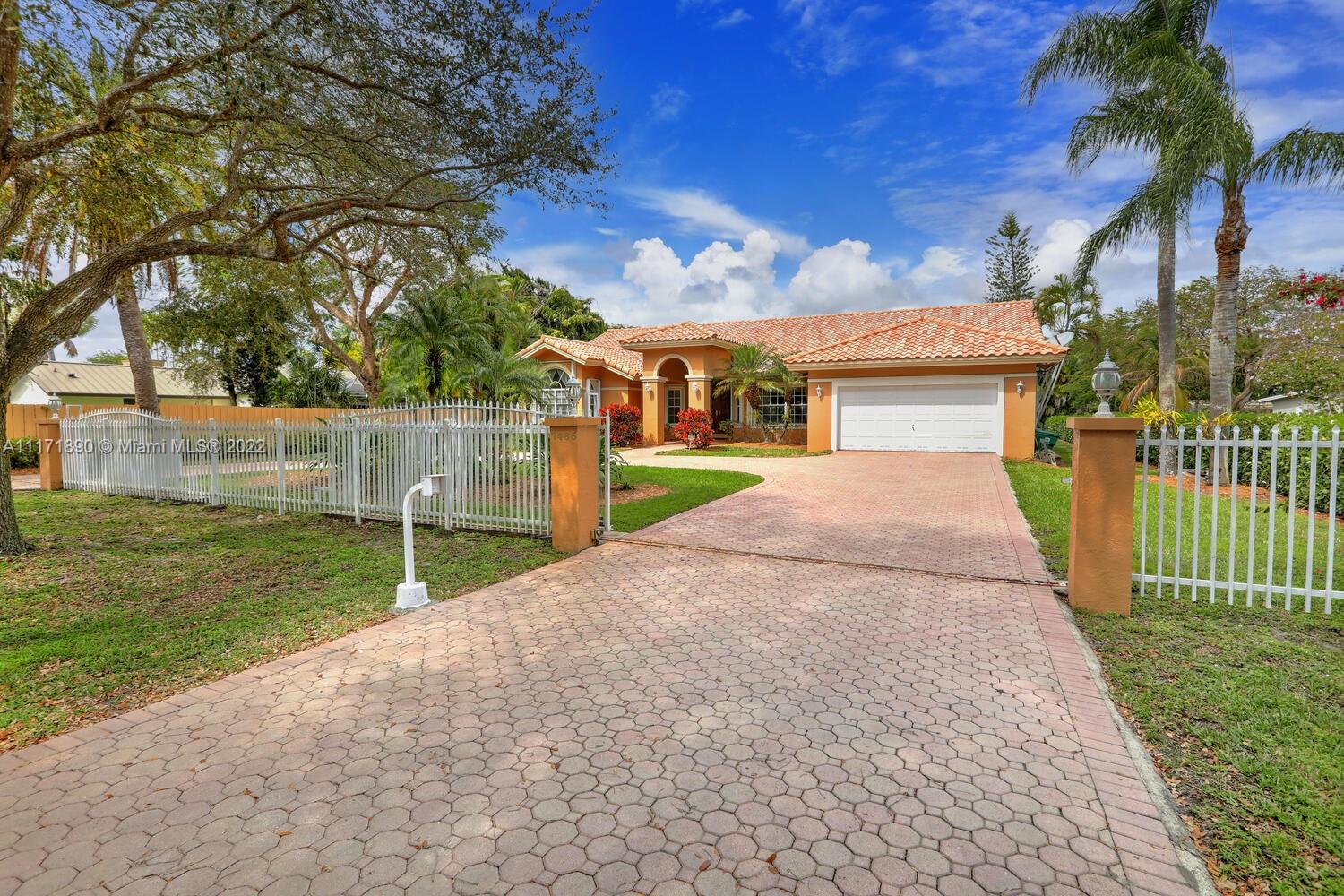 Spectacular 4 Bedroom/ 3.5 Bathroom Mediterranean residence situated in the heart of Pinecrest. property sits on a 19,511 sq.ft lot with a spacious front and backyard with wonderful landscaping throughout. The house boasts a master suite with hardwood floors, vaulted ceilings, two walk-in closets, jacuzzi bath, sunken shower, double vanity/ sinks with nice view of the pool. Other features included in the house are large living/ dining/ family room, island kitchen with granite countertops, breakfast area, built-in bar, 2 car garage, electric gate fence, fenced yard, brick patio pool deck, hurricane shutters and much more.