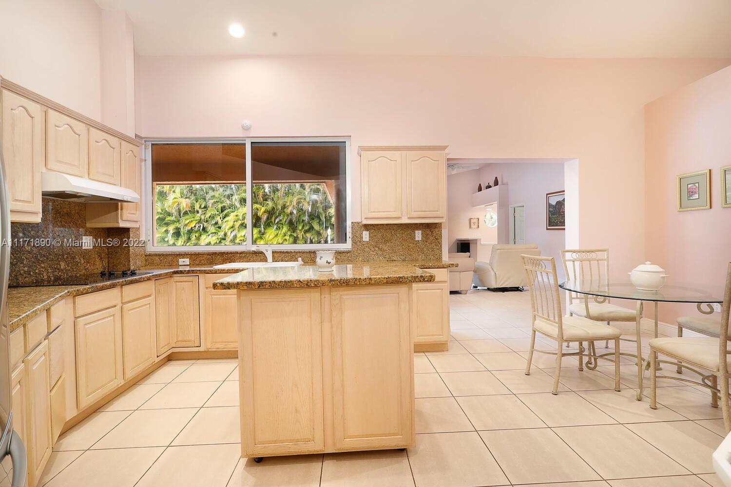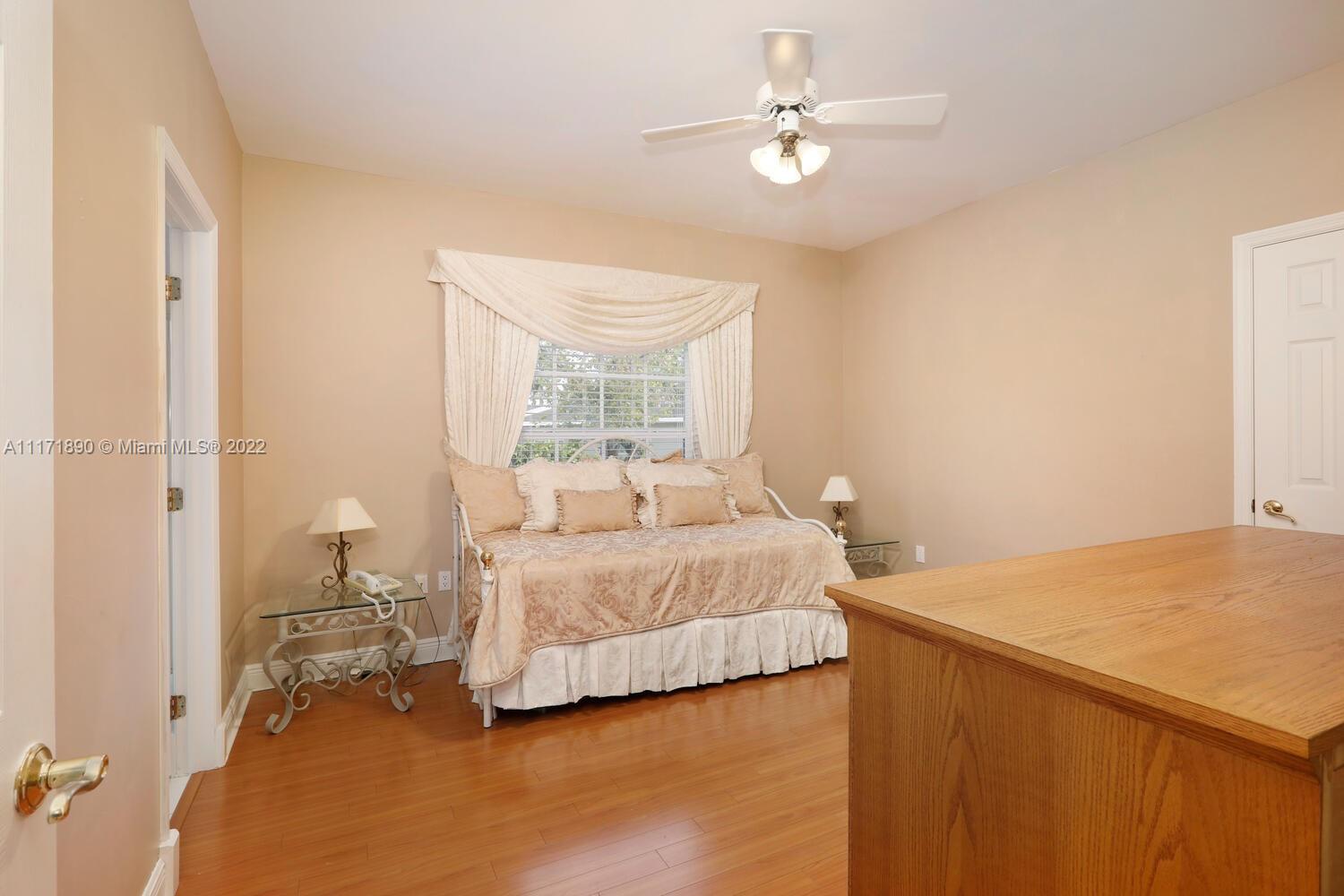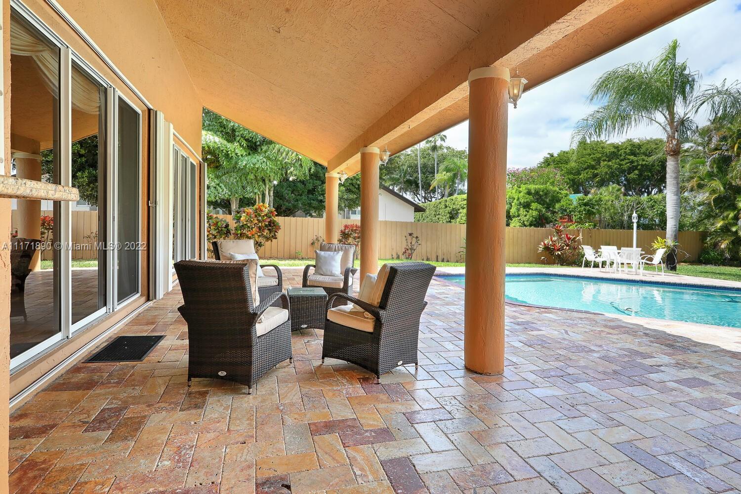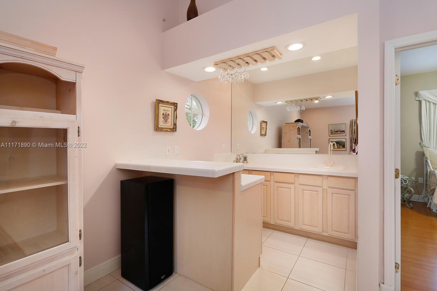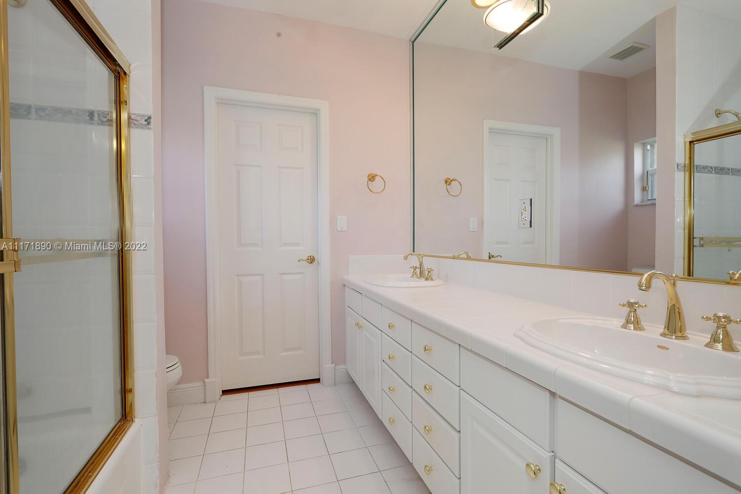 Spectacular 4 Bedroom/ 3.5 Bathroom Mediterranean residence situated in the heart of Pinecrest. property sits on a 19,511 sq.ft lot with a spacious front and backyard with wonderful landscaping throughout. The house boasts a master suite with hardwood floors, vaulted ceilings, two walk-in closets, jacuzzi bath, sunken shower, double vanity/ sinks with nice view of the pool. Other features included in the house are large living/ dining/ family room, island kitchen with granite countertops, breakfast area, built-in bar, 2 car garage, electric gate fence, fenced yard, brick patio pool deck, hurricane shutters and much more.