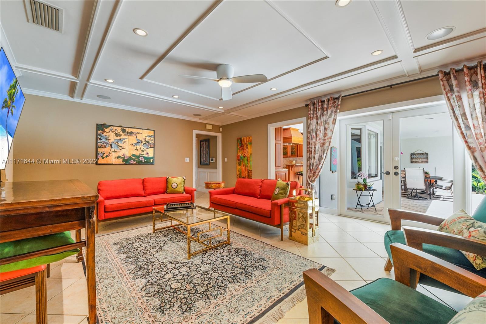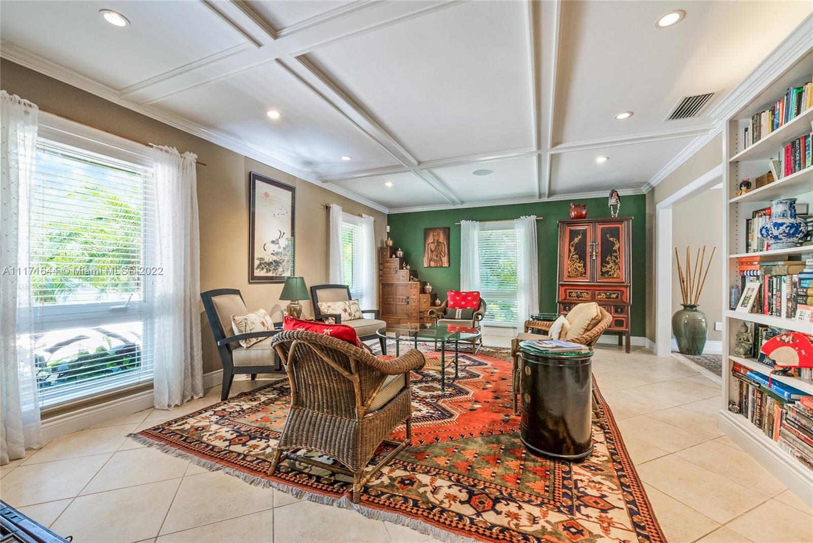 The perfect Coral Gables home is finally available! Hidden on a triangular tree-lined street with what feels like your own private park, this well-appointed residence is a few blocks from Miracle Mile in downtown city beautiful. Enter the home through stunning double impact doors, be sure to look up at the elegant decorative ceilings in the living areas that add stylish detailing to this turn-key property. This beauty has every space you’ll ever need, such as formal living room, dining room, family room, gourmet kitchen with snack bar, indoor laundry room, air-cooled 2 car garage, and fabulous, covered patio with sparkling pool. Professionally landscaped, low-maintenance yard makes it easy to lock up and go, but you may never want to leave! Attached is list of features that Seller loves.