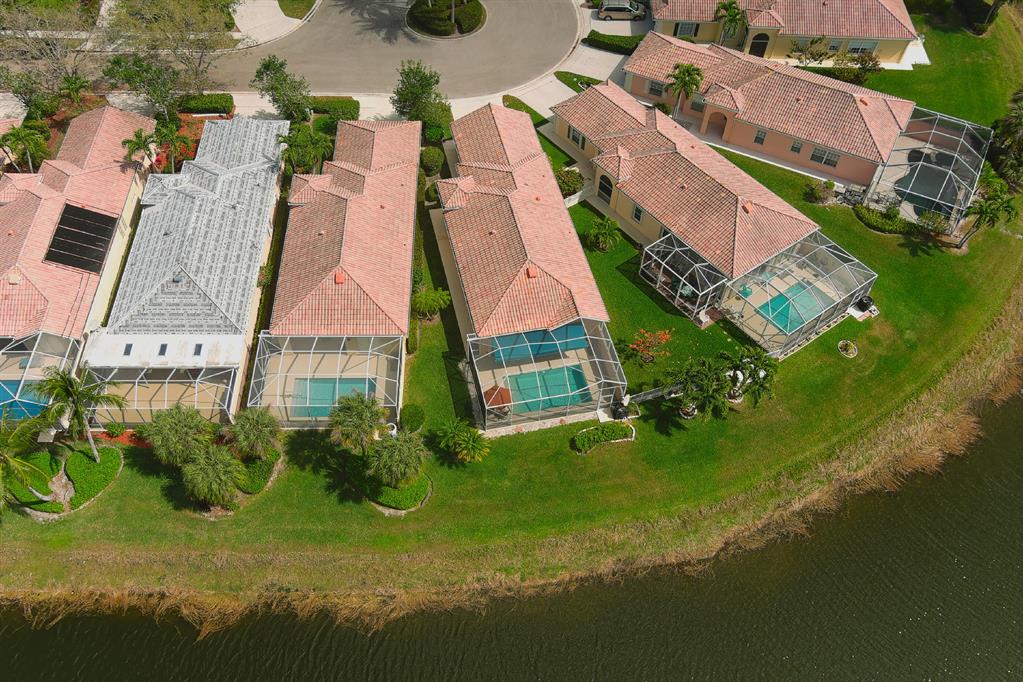 This One-Of-A-Kind ''Gem'' Set on A Unique Private Lake Point Lot with Lakeviews that can only be described as ''Awe-Inspiring'', Make this Pristine, Decorator Owned Furnished ''JEWEL'' With a Spectacular Screened Heated Pool & an Electric Awning on the Pool Deck, an Oasis on one of the Most Beautiful Point Lots in Riverwalk! There are Panoramic Views of 3 Lakes, the Skyline of the Mediterranean Town Center, the Lush Surrounding Green Common Spaces that Go on & on! These Views can be seen from the Screened Terrace with that Great Heated Swimming Pool, the Sun Deck with an Electric Awning, the Master Suite & the Family room, giving it a feeling of being on a Tropical Vacation every day! The Cul de Sac Siting gives the Residence a Sense of Privacy & Seclusion & Combined with the fact that