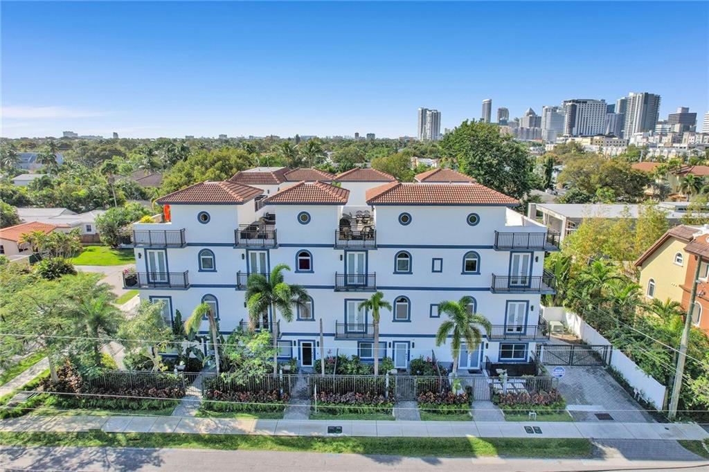 Absolutely stunning, contemporary gated residence situated in a chic boutique townhome community enviably located across from Holiday Park in sought-after Victoria Park. Spacious & stylish corner unit boasts your own deeded private yard upgraded w/ maintenance free synthetic grass & landscape lighting. This spectacular magazine quality home w/ all the bells & whistles has been professionally decorated & designed & may be purchased completely furnished. Sleek Euro-style kitchen w/ modern Quartz counters & breakfast bar, 3/3.5 all w/ ensuite baths, cool Porcelain flooring & 10ft ceilings. Private elevator provides convenient access to all floors including the expansive roof top terrace with wonderful downtown views. Hard to beat location just minutes to Las Olas dining & vibrant nightlife.