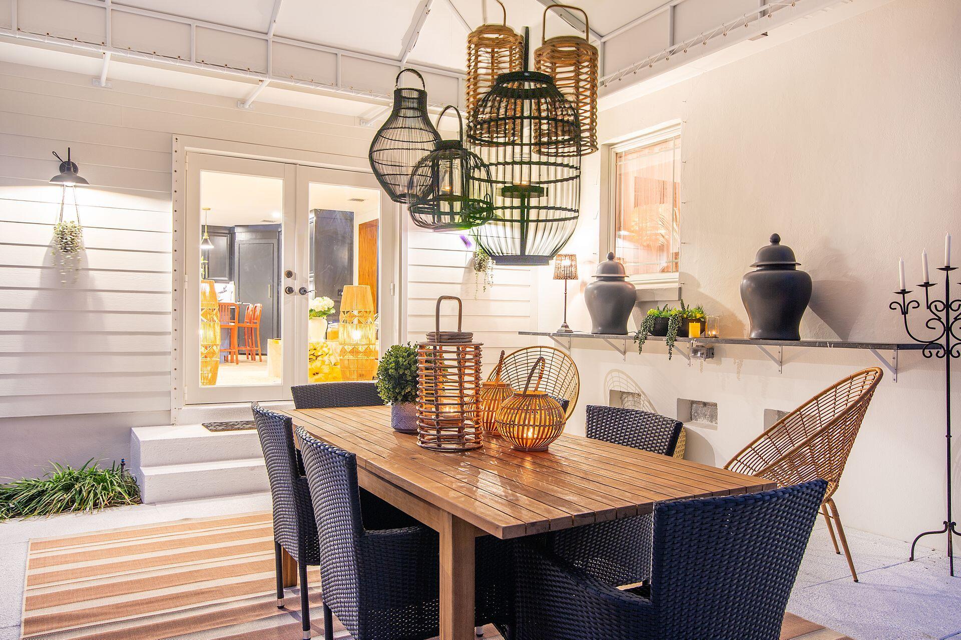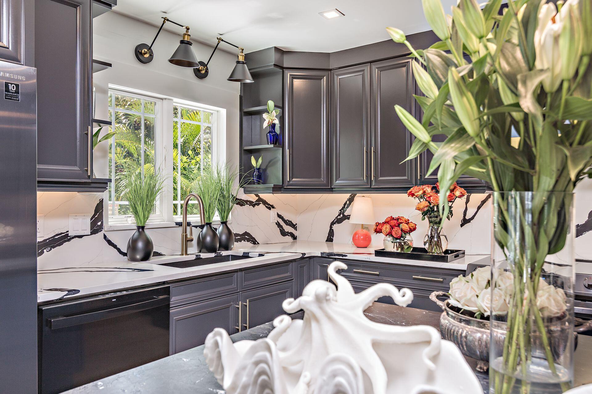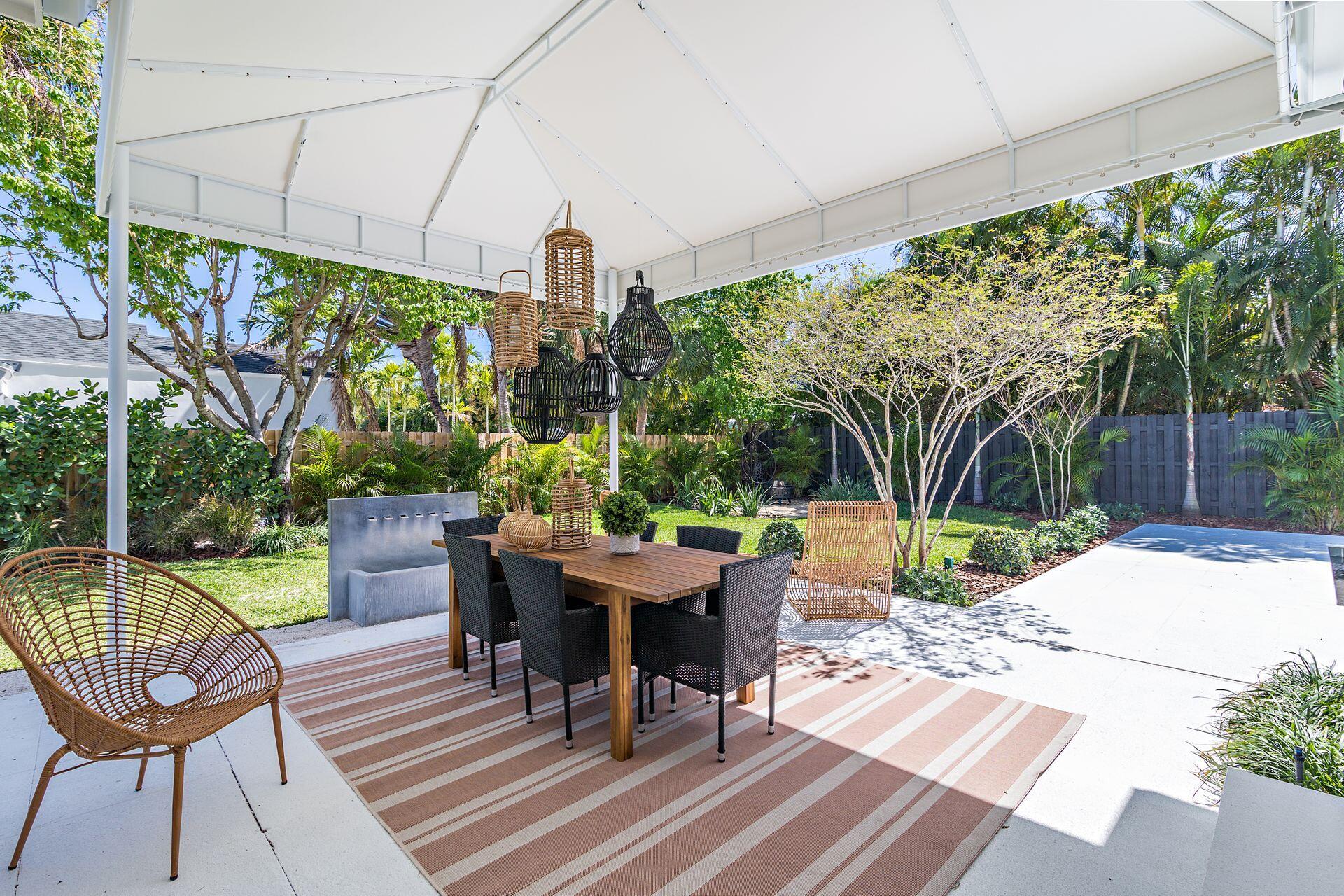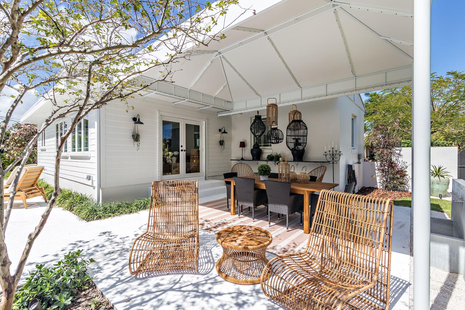 New price reduction, great value! Don't miss out on this gorgeous property. Beautiful renovation and decorator's showcase. Central ''SoSo'' location. Large elevated corner lot, newly installed irrigation system with rain gauge, professional landscaping, dramatic new exterior lighting and remodeled oversized pool. New roof and floors throughout, new grand loggia, new designer kitchen with black steel appliances, additional wine fridge, dramatic quartz counters, dining island, plenty of cabinetry, pantry and storage. New luxurious bathrooms, new dimmable light fixtures throughout, new electrical panel, security system and WiFi. All new exterior and interior paint. Restored cypress beamed ceiling and high-volume throughout. All original art as well as most of furniture available separately.