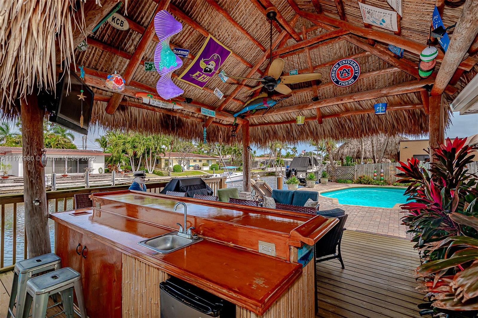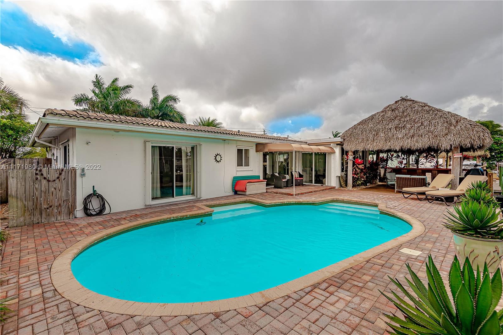 Resort living in your own private pool home with beautiful landscaping. Ocean access, 2 fixed bridges, the brand new 5th Ave bridge is now the same height as Federal Highway bridge. The backyard was made for entertaining, with the heated swimming pool and 14 x 16 Tiki hut with built in bar. Open Floor plan with canal views. The kitchen is updated and has stainless steel appliances and granite countertops. This is a large 2 bedroom, with a space to add small bedroom or office. Large laundry room. 1 car garage, you can park a car in. Great location close to I95, restaurants, beaches, and shopping. Check back Saturday for more photos.