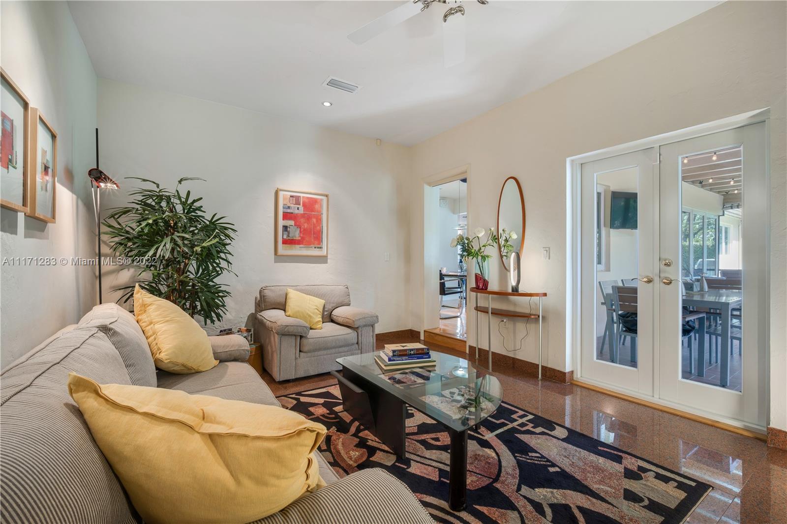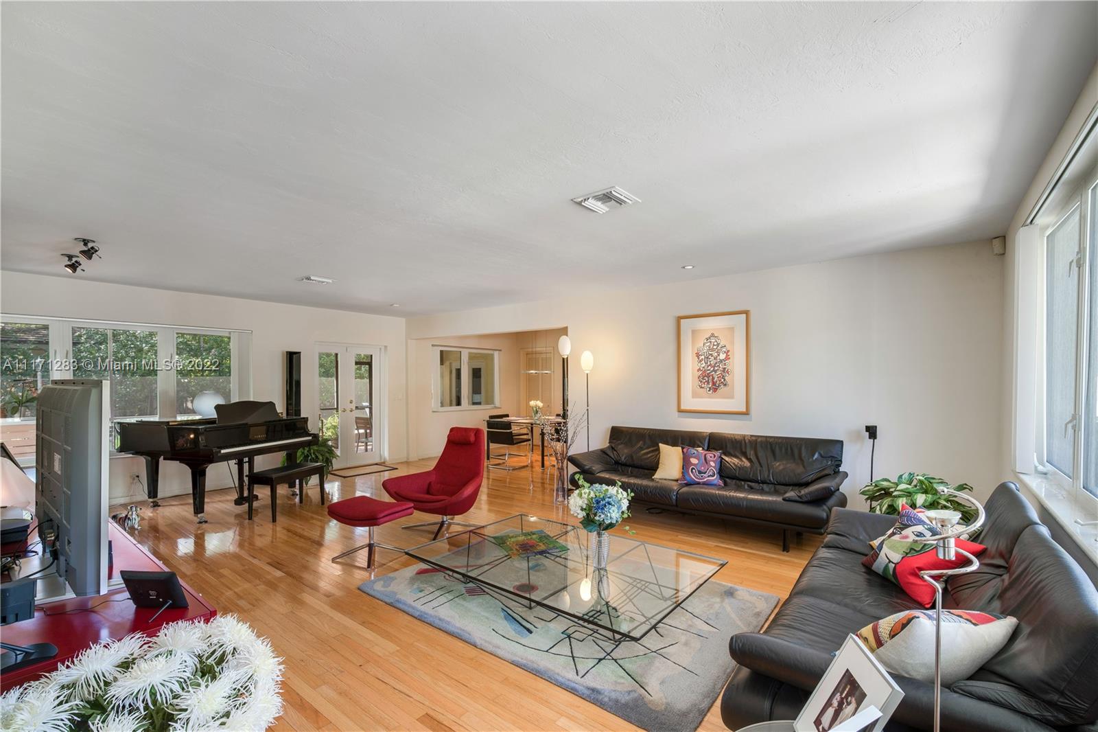 Rare opportunity to live in the Platinum Triangle! Bring your family to this terrific 3BD/separate study/2BA home surrounded by parks, tree-canopied streets, and sidewalks. A wonderful floor plan for perfect family living with both formal and relaxed areas. Foyer entry opens to a large high ceiling living and dining area overlooking a spacious screened-in patio with indoor BBQ for your outdoor entertaining. A 10,200 sq ft yard has plenty of room for expansion and a pool. Newer kitchen appliances, upgraded baths, new impact-resistant doors and windows, 2005 roof, top-rated schools, including Sunset Elementary and Coral Gables High School. Close to downtown urban centers of Coral Gables, Coconut Grove, and South Miami.