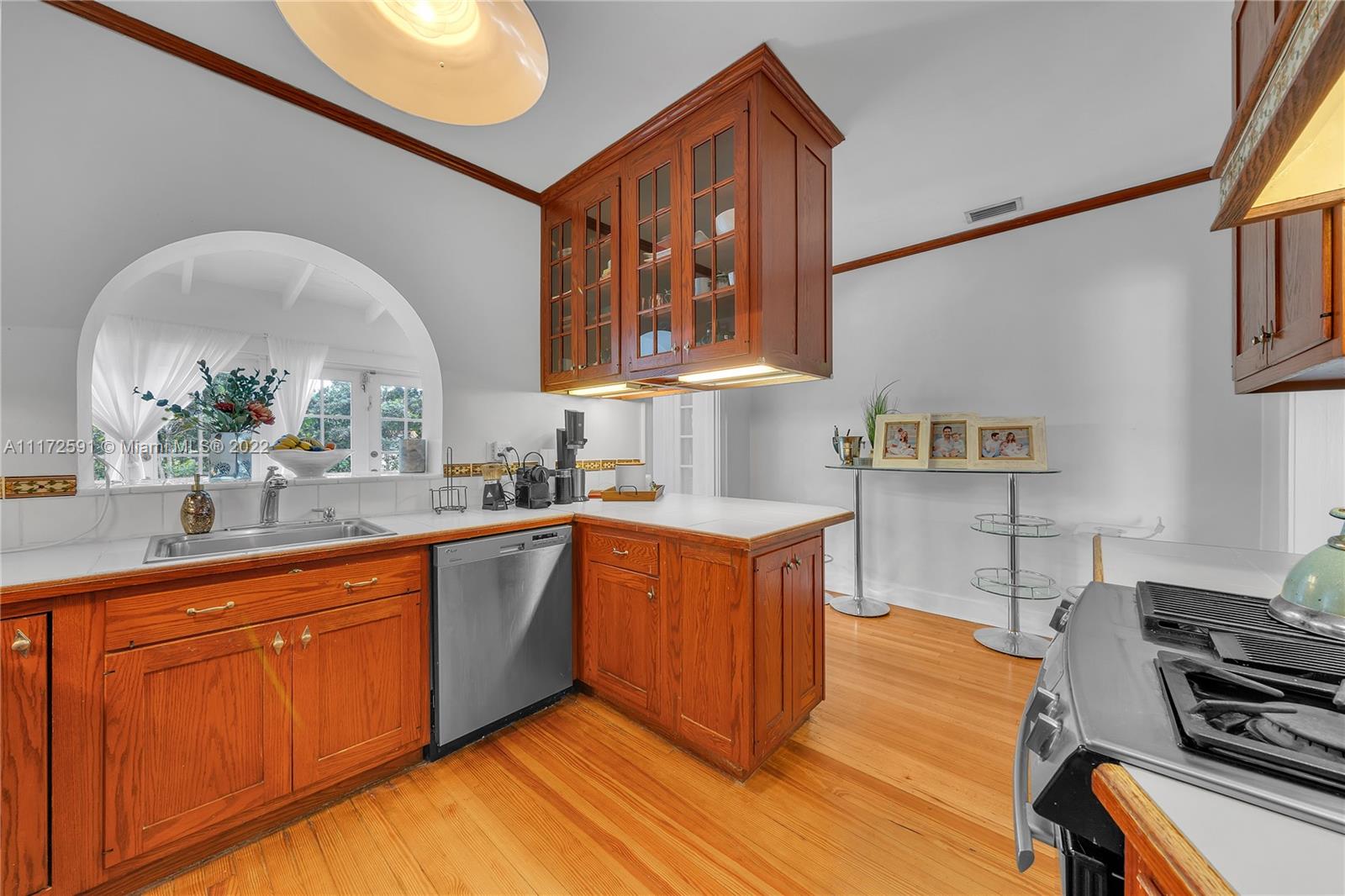 True Gables Old Spanish remodeled home features 3 bedrooms, 2 baths. Interior features a formal living room with fireplace, formal dining and eat-in kitchen overlooking the pool through french doors. Spacious master bedroom with a sitting area and updated bathroom. Two bedrooms share a Jack & Jill bathroom plus an additional guest/family room. Entertain your family or friends with the salt water heated pool and resort style backyard.