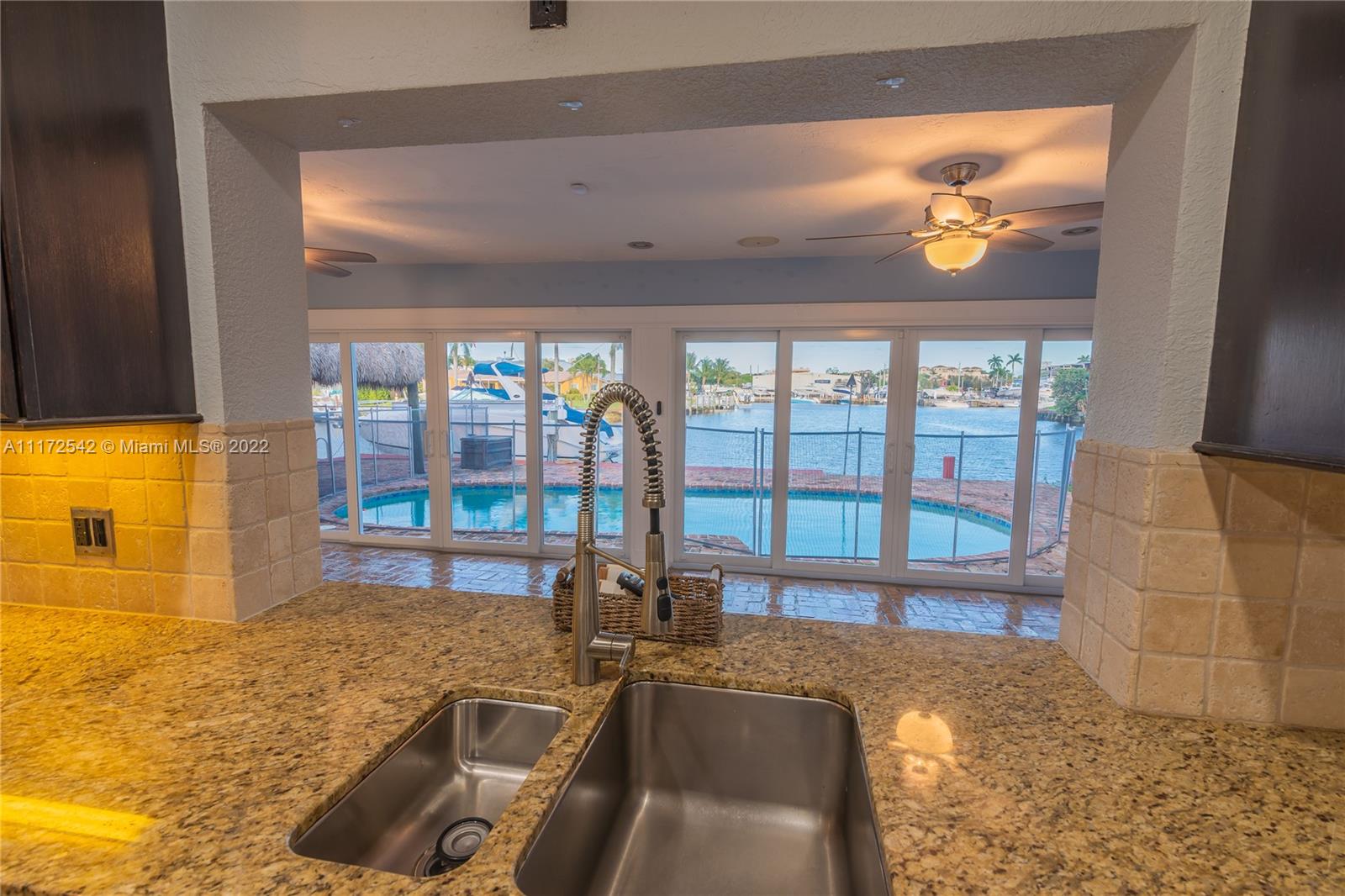 MUST SEE! 3 bedroom 3 bath home, 75 feet of waterfront with ocean access. Only one fixed bridge. Impact windows. Updated kitchen with top of the line appliances. Owner Suite bathroom is like no other! Over sized shower with Spa shower heads. Walk in closet in Owner Suite and 2nd bedroom. Air conditioned 1 1/2 car garage. Great outdoor living with water view and over sized Tiki Hut in the pool area.