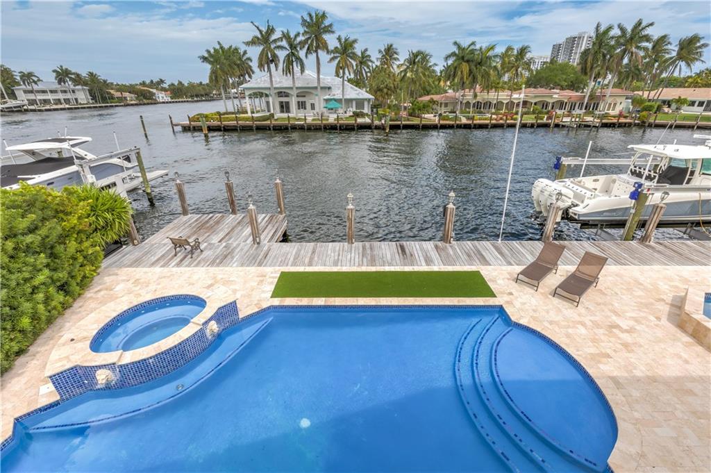 Live a luxurious lifestyle in this modernized Mediterranean estate located in Dolphin Isles, just off Fort Lauderdale's beach front avenue of Lauderdale Beach. Sited on a 10,461 square foot lot with 100 ft of water frontage and no fixed bridges. One of the widest canals off the intracoastal at 180 feet for added privacy and dockage ability. Features include: 3 car garage with a limo sized bay, 5+ bedrooms, 4 full baths, 3 half baths (including one cabana half bath), 2,300 sq ft walk in attic, outdoor shower, media room, upstairs and downstairs family rooms, marble floorings, newly finished pool, summer kitchen, extended dock with a boat lift, glass elevator, dual island kitchen. Short distance to the beach, restaurants and grocery stores.