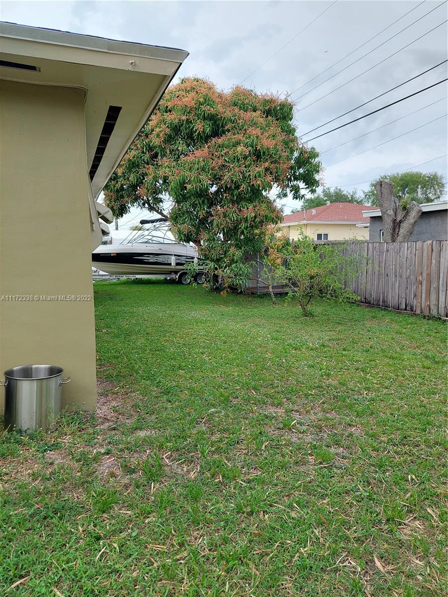 Picture perfect curb appeal with stone walkway that leads to this spacious home as big as a 3 bedroom house, perfect for a small family, with abundance of windows and doors that lets the sunshine in! Enjoy outdoor living in the expansive garden with avocado, mango and ackee trees, or relax on the large covered side patio. Kitchen has ample cabinets and counter-top space with room for an eat-in area. Newly refinished terrazzo floors sparkle throughout this home and the master suite has two large closets. Oversized TWO CAR GARAGE has plenty of room for storage with slop sink and door to the exterior of the property. SPACE TO PARK A BOAT. This great home is equipped with new Trane a/c unit, HURRICANE PROTECTION