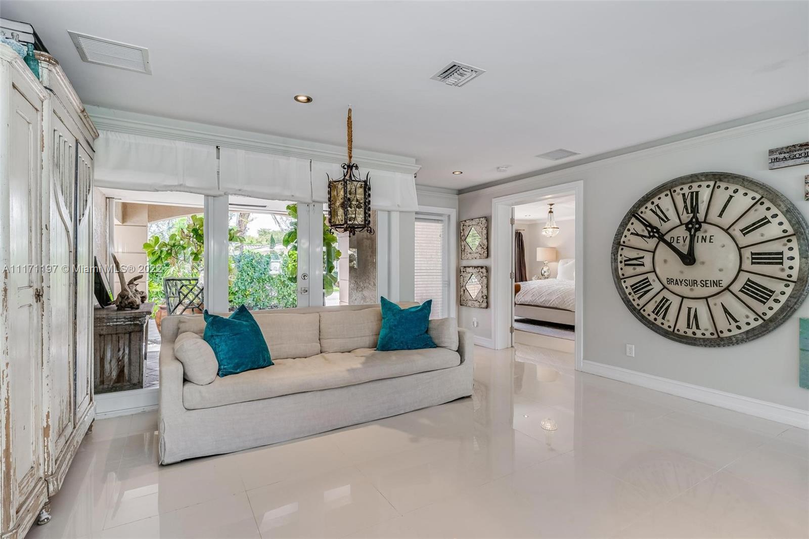 Stunning turnkey WATERFRONT 3 BEDRMS/3BATHS estate home! Located on deep water, no fixed bridges with direct ocean access. Over 60 feet of water frontage with 17,000 lb capable elevator boatlift and an electric davit. Take advantage of indoor-outdoor open concept living with French doors leading out to your beautiful custom travertine patio with built in lighting. Large, remodeled kitchen with custom quartz island for entertaining your guests while taking in the water views. Two masters with ensuite bathrooms and private guest suite with bathroom. All impact windows and glass, walk in closets, covered porch, 3 outdoor sheds. Large paver stone circular driveway with EV charging station included. Premier location close to the new Pompano pier, Hillsboro inlet, restaurants, beaches & more.