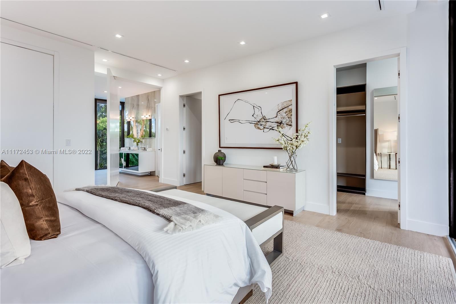 New construction modern masterpiece!! Located on prestigious guard gated Hibiscus Island, this 5bed/5.5bath is situated on a private 9,750 SF oversized lot. The homes soaring ceilings combined with open living and kitchen areas will wow you upon arrival. The large sliding glass doors in main living area create an amazing indoor - outdoor entertainment space that lead to a large pool and outdoor lounge and dining area. The main bedroom includes a large bathroom, walk in closet and its own outdoor living space with a spiral staircase leading to a rooftop for you to enjoy all of the incredible views from one of Miami's best islands.