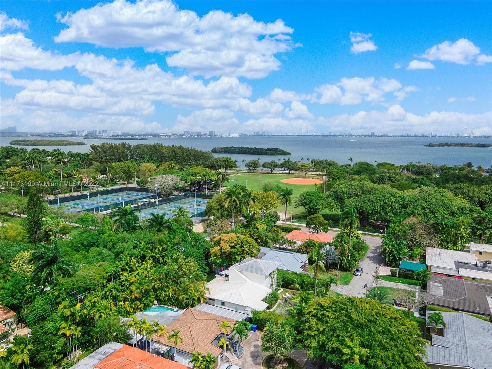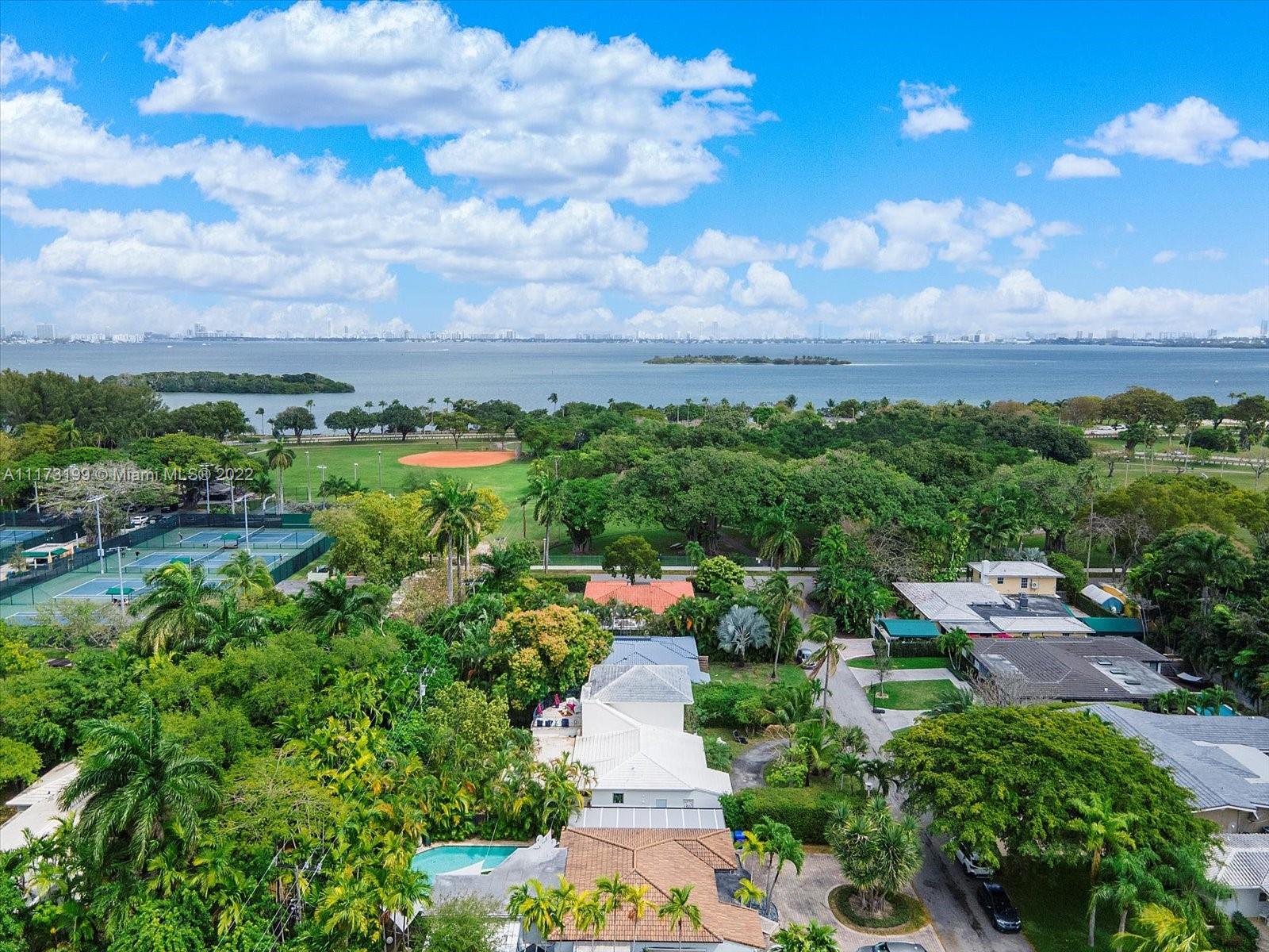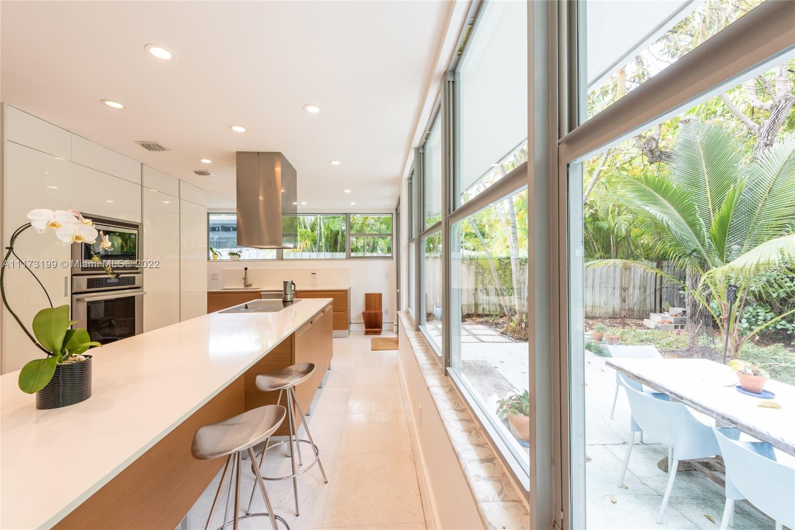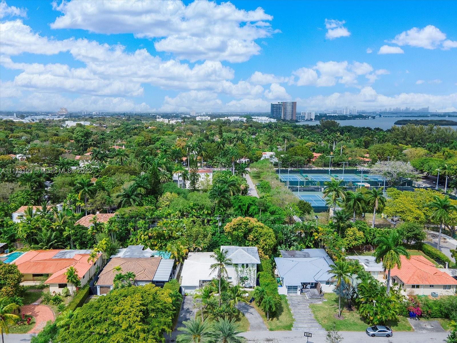 Spacious, bright and super-chic 4-bedroom 4-bath Mid-Century home surrounded by green trees and bamboo in the heart of gated Morningside, the hottest neighborhood of Miami's Upper Eastside and minutes from the Design District, Downtown, and Wynwood. Steps from a large park and Biscayne Bay. Open floorplan with wood and terrazzo flooring, designer Italian kitchen and high-end appliances for entertaining in style. Lots of impact windows unite interior and exterior. Two master suites, bonus room could be fifth bedroom, prep kitchen, office. Smashing upstairs master suite with park and bay views, luxurious spa-like bath.