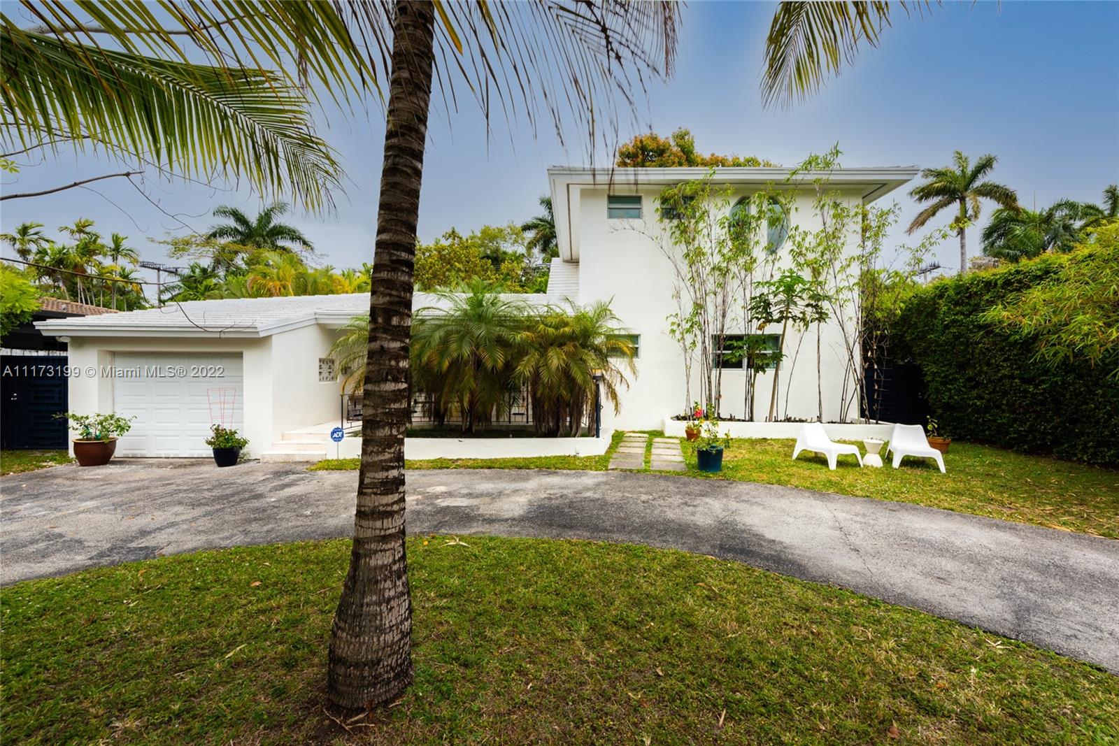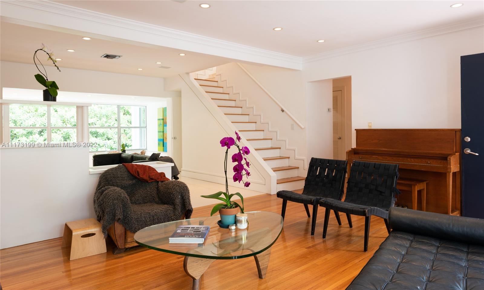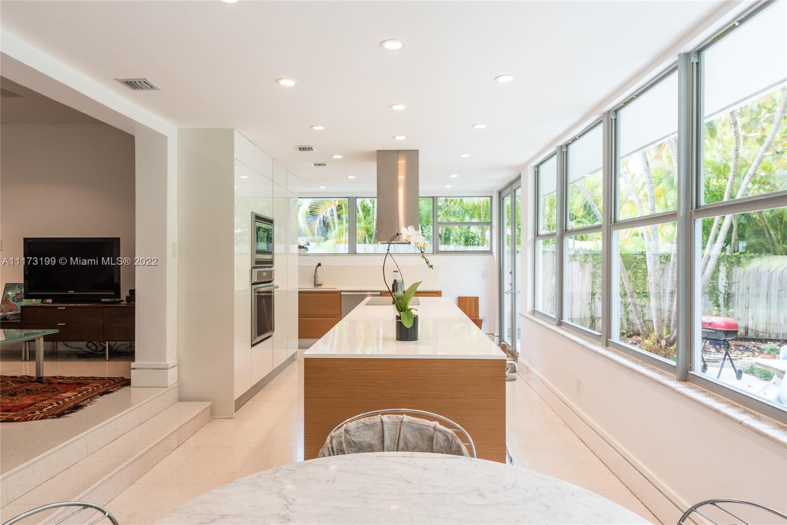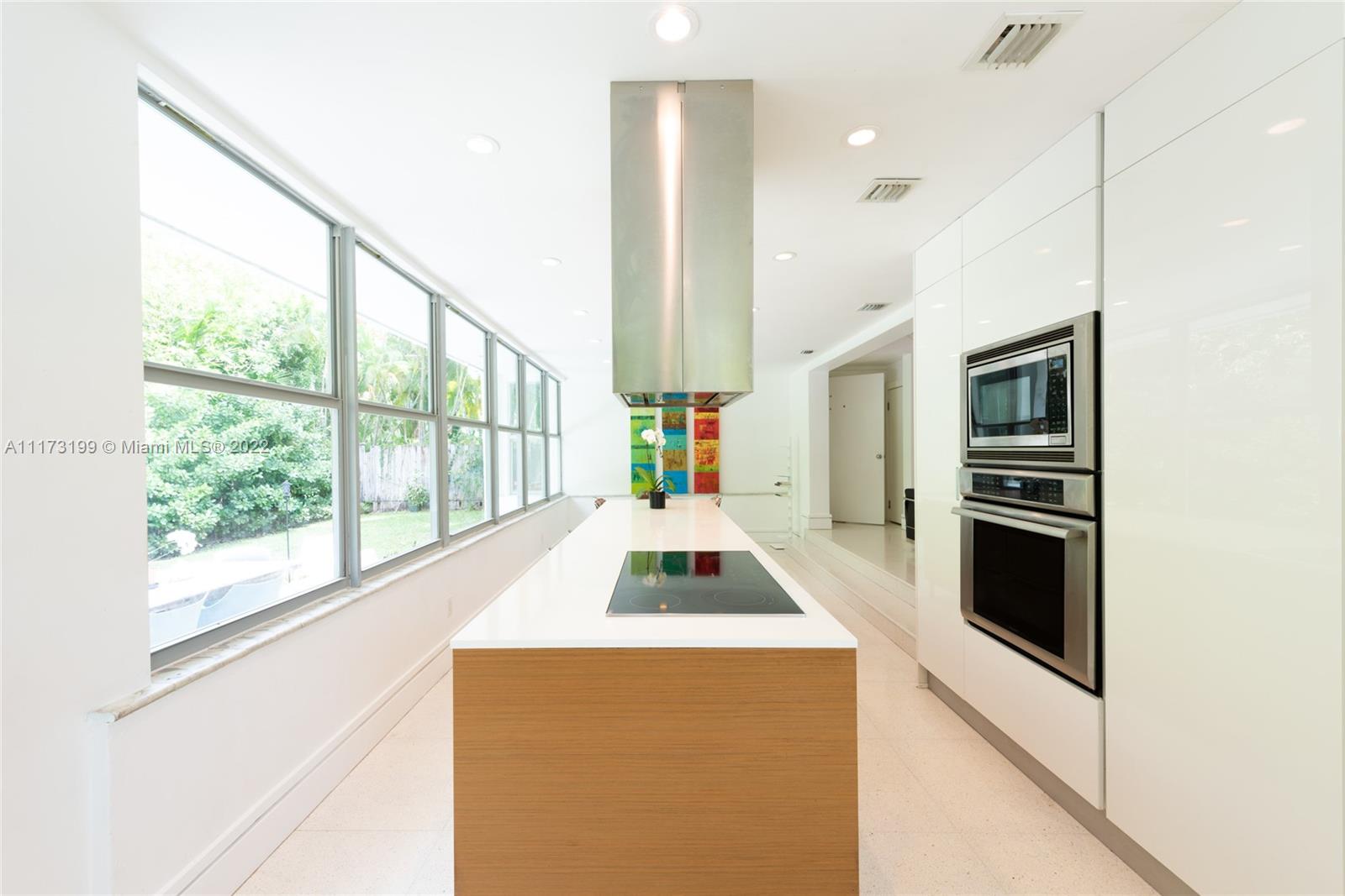 Spacious, bright and super-chic 4-bedroom 4-bath Mid-Century home surrounded by green trees and bamboo in the heart of gated Morningside, the hottest neighborhood of Miami's Upper Eastside and minutes from the Design District, Downtown, and Wynwood. Steps from a large park and Biscayne Bay. Open floorplan with wood and terrazzo flooring, designer Italian kitchen and high-end appliances for entertaining in style. Lots of impact windows unite interior and exterior. Two master suites, bonus room could be fifth bedroom, prep kitchen, office. Smashing upstairs master suite with park and bay views, luxurious spa-like bath.