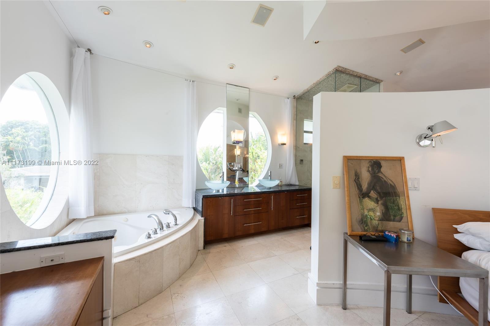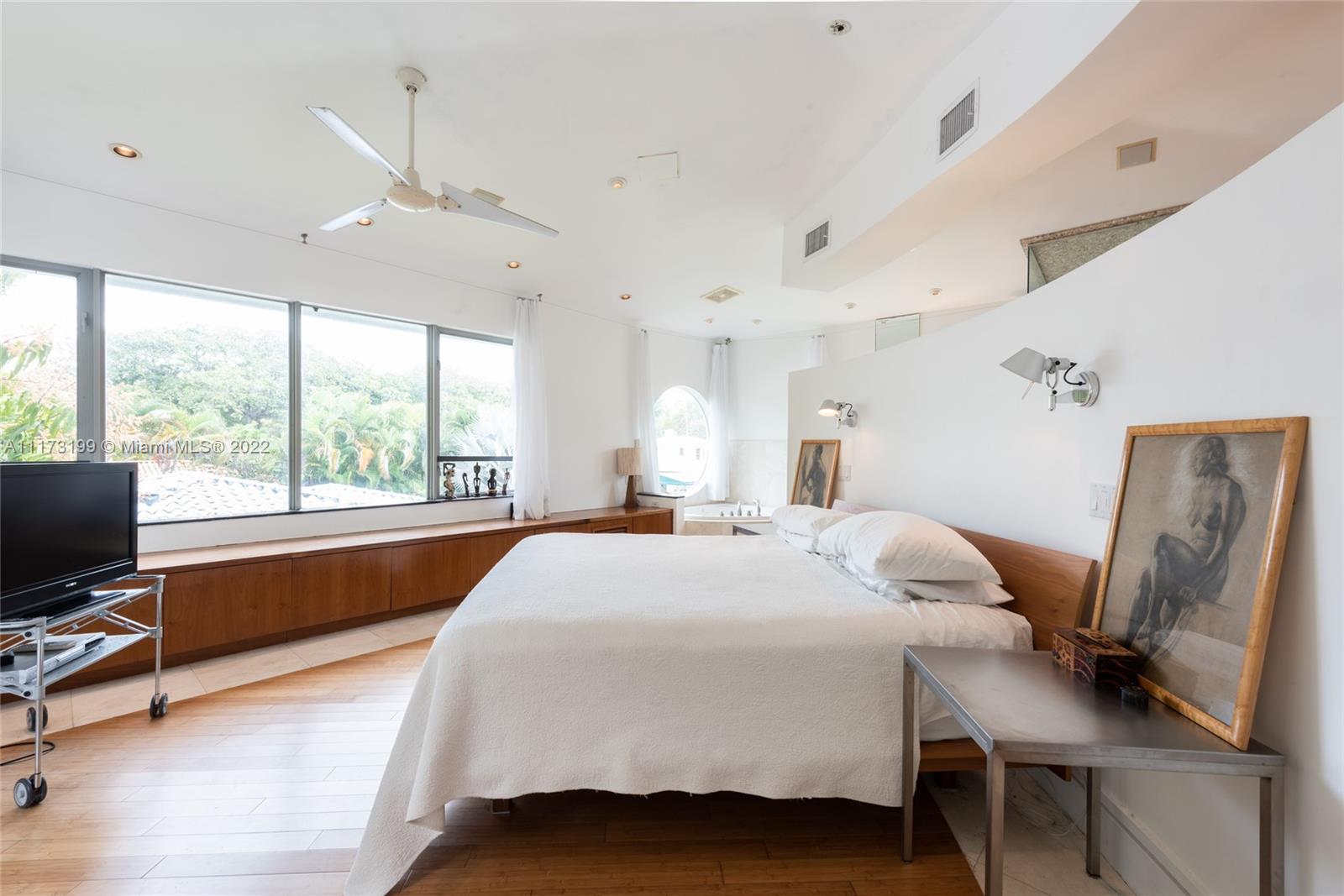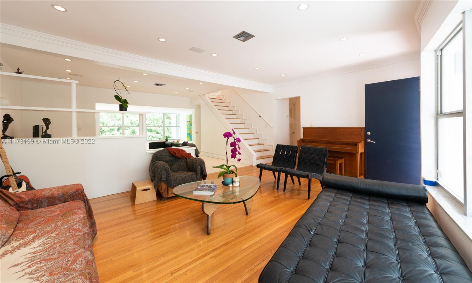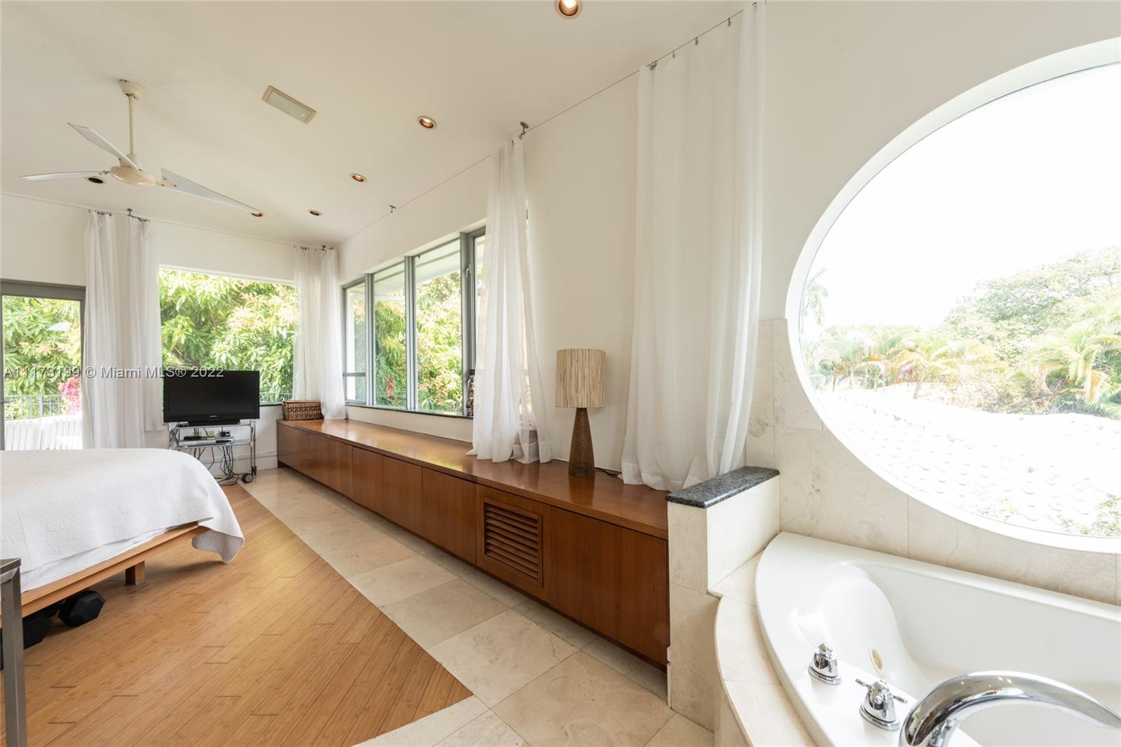 Spacious, bright and super-chic 4-bedroom 4-bath Mid-Century home surrounded by green trees and bamboo in the heart of gated Morningside, the hottest neighborhood of Miami's Upper Eastside and minutes from the Design District, Downtown, and Wynwood. Steps from a large park and Biscayne Bay. Open floorplan with wood and terrazzo flooring, designer Italian kitchen and high-end appliances for entertaining in style. Lots of impact windows unite interior and exterior. Two master suites, bonus room could be fifth bedroom, prep kitchen, office. Smashing upstairs master suite with park and bay views, luxurious spa-like bath.