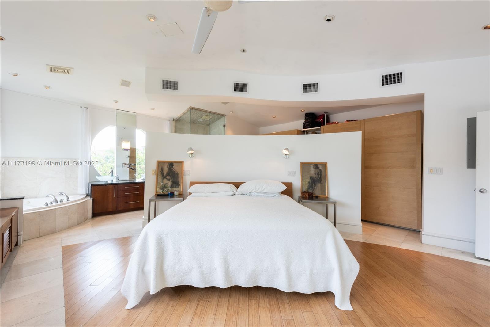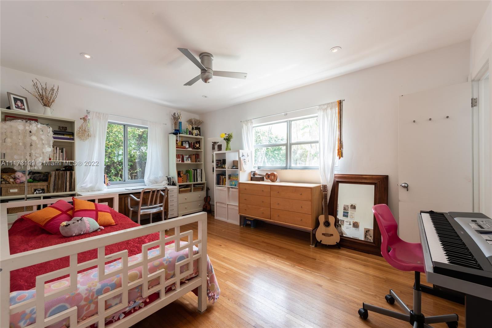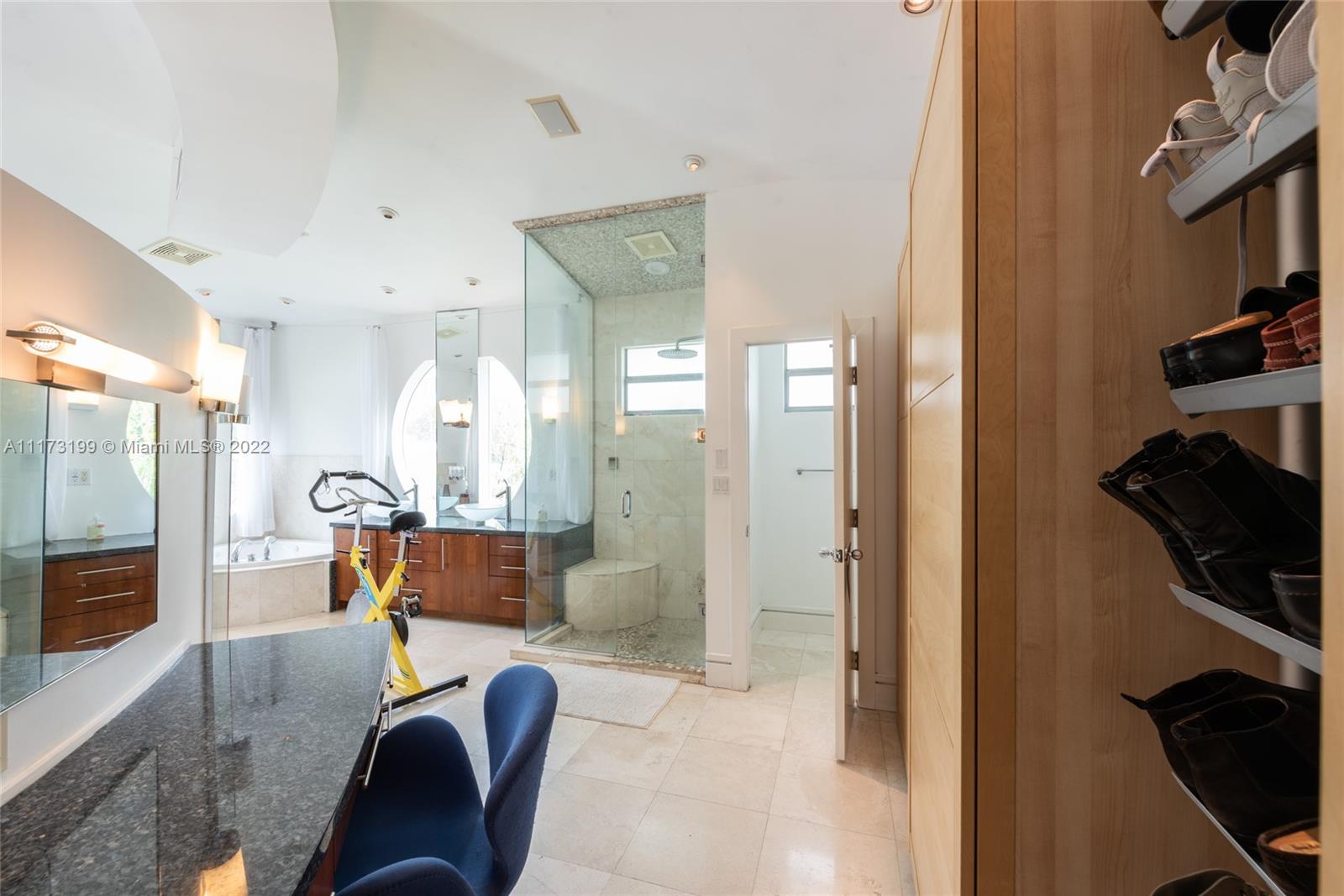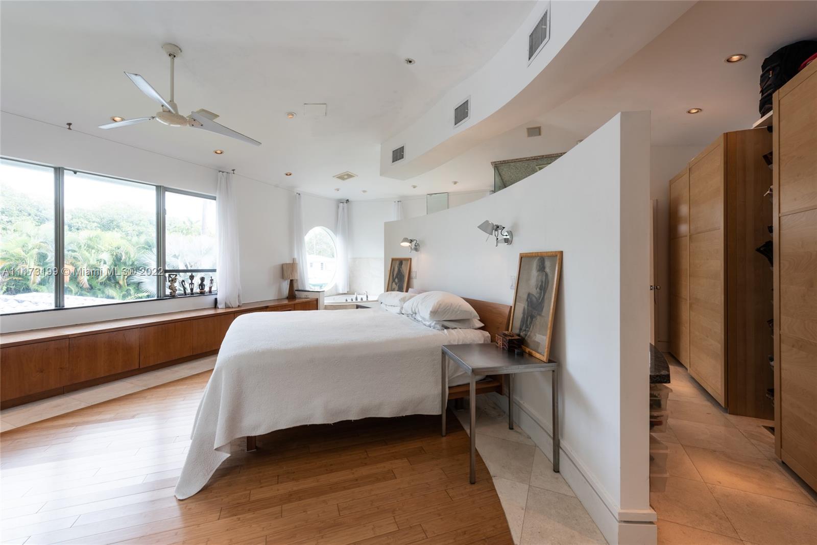 Spacious, bright and super-chic 4-bedroom 4-bath Mid-Century home surrounded by green trees and bamboo in the heart of gated Morningside, the hottest neighborhood of Miami's Upper Eastside and minutes from the Design District, Downtown, and Wynwood. Steps from a large park and Biscayne Bay. Open floorplan with wood and terrazzo flooring, designer Italian kitchen and high-end appliances for entertaining in style. Lots of impact windows unite interior and exterior. Two master suites, bonus room could be fifth bedroom, prep kitchen, office. Smashing upstairs master suite with park and bay views, luxurious spa-like bath.