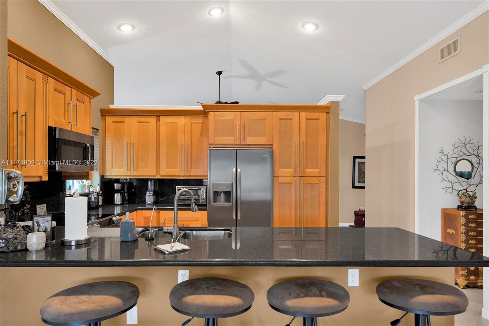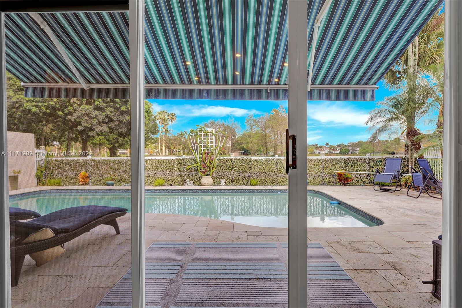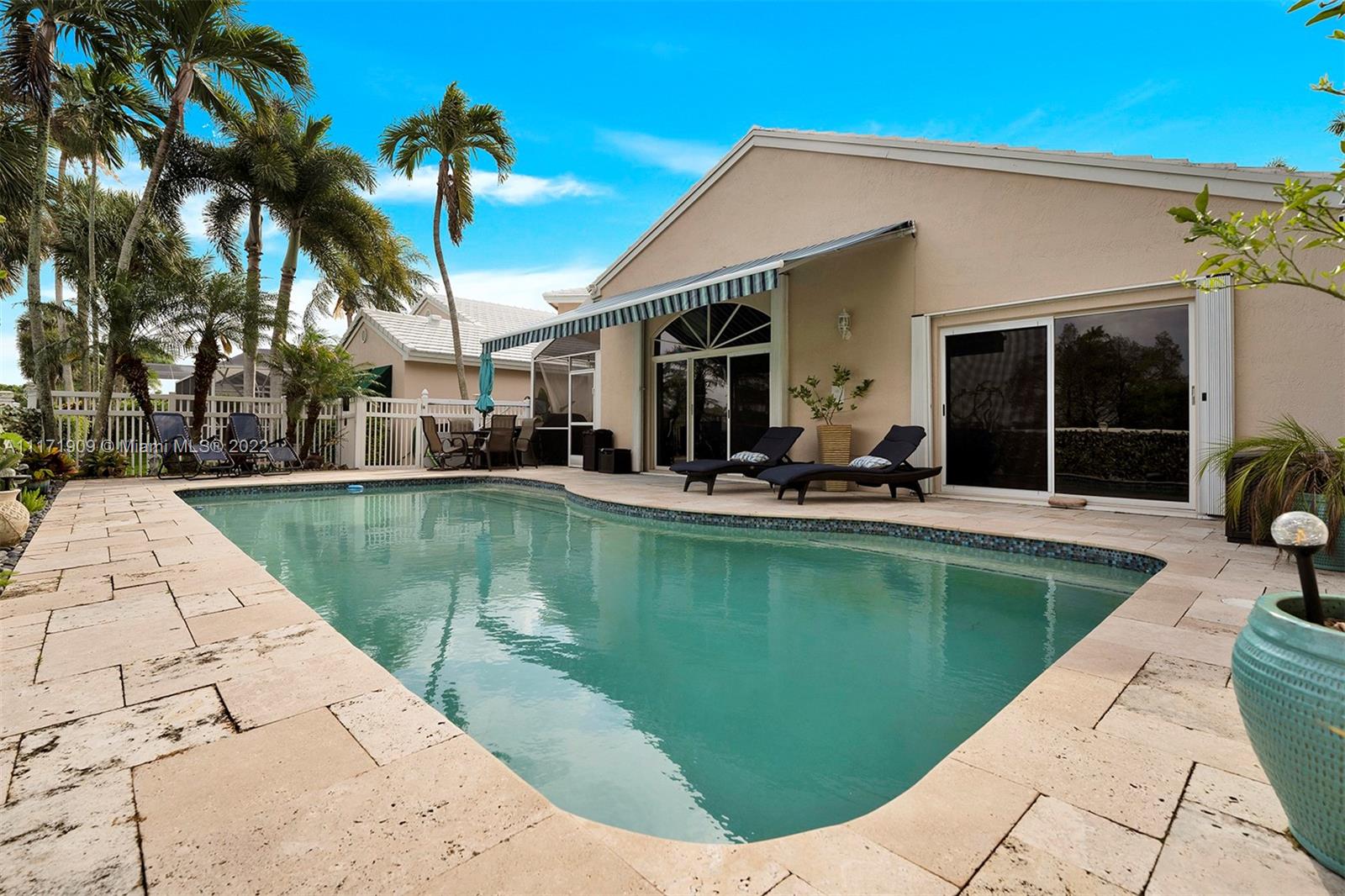 Beautiful one-story FURNISHED contemporary designed "POOL HOME" A GOLF FRONT HOME WITH WATER VIEWS IN A DESIRABLE *GRAND PALMS GOLF RESORT* GATED COMMUNITY IN PEMBROKE PINE, FL. Featuring a whole home reverse osmosis water filtration system. Intercom and music throughout house & wired for surround sound. This home is equipped with accordion shutters for protection. TIKE THROUGHOUT. THE KITCHEN FEATURES: NEWER MODERN CABINETS AND GRANITE COUNTERTOPS, NEWER APPLIANCES, UPDATED BATHROOMS WITH ROMAN TUB, HIS-HER VANITIES, W/IN SHOWER. Central Vacuum. MASTER SUITE HAS GOLF AND WATER VIEWS. Newer washer/dryer. Roof installed 2013. New AC, THE WILSHIRE HOA INCLUDES: LAWN, IRRIGATION, FERTILIZATION, HOUSE PAINTING, ROOF CLEANING, HEDGE TRIMMING, WEEDING, AND COMPLETE TREE TRIMMING TWICE A YEAR.