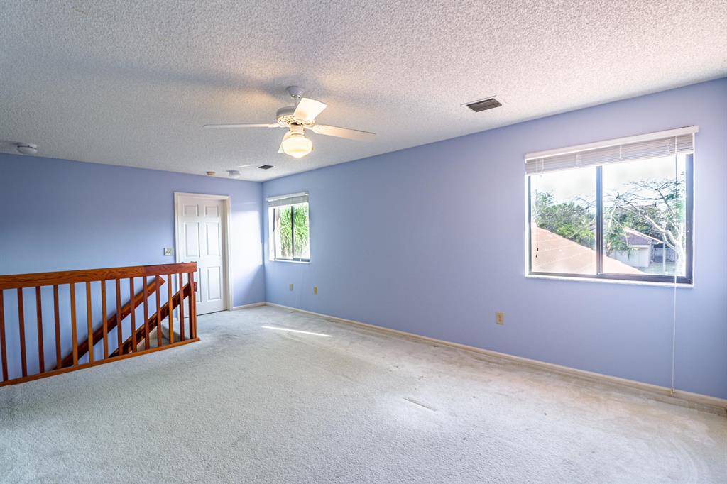 Find everything you're looking for and more in this stunning two-story home located on the canal in the desirable Mayfair at Jacaranda neighborhood. Here you'll find a light, bright open-concept floorplan featuring ceramic tile downstairs and updated fixtures and finishes throughout including a brand new roof (2021), one AC unit (2018). Upgraded kitchen (2017) features Shaker-style cabinetry, granite counters and backsplash, and stainless steel appliances plus seating space and direct terrace access. Owner's suite features an en suite bath with separate shower and tub. Loft-style gathering space upstairs makes a perfect spot for a home office, hobby space, or 4th bedroom conversion. Enjoy the peace of mind of whole-house accordion shutters and the convenience of a two-bay garage.