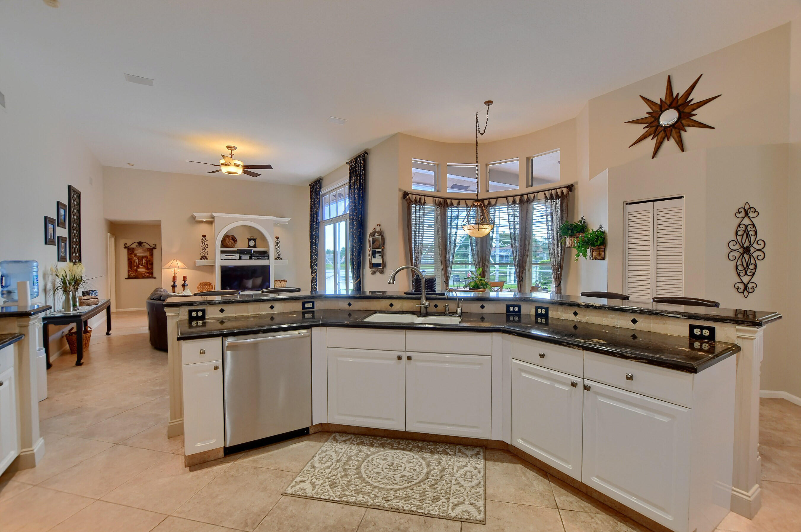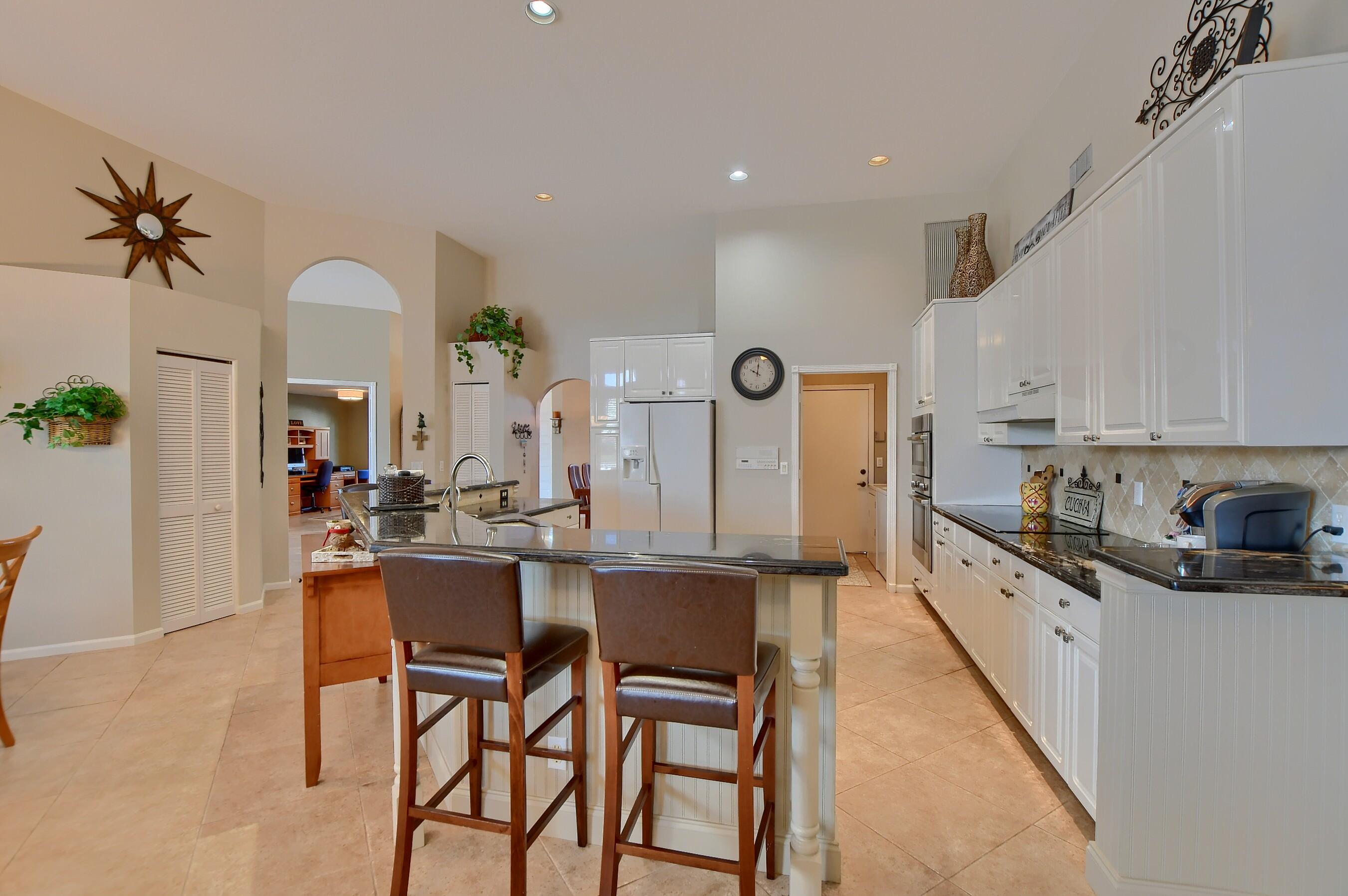 As you enter this desirable 5 bedroom Grand Cayman model, enjoy the wide open feel and beautiful views of the pool and lake with water views from the living room, kitchen, master bedroom and family room . The large screened lanai is situated on one of the best lake lots in Boca Isles with a long lake view, Recently painted inside and out * Newer roof and A/C's. Many upgrades throughout.