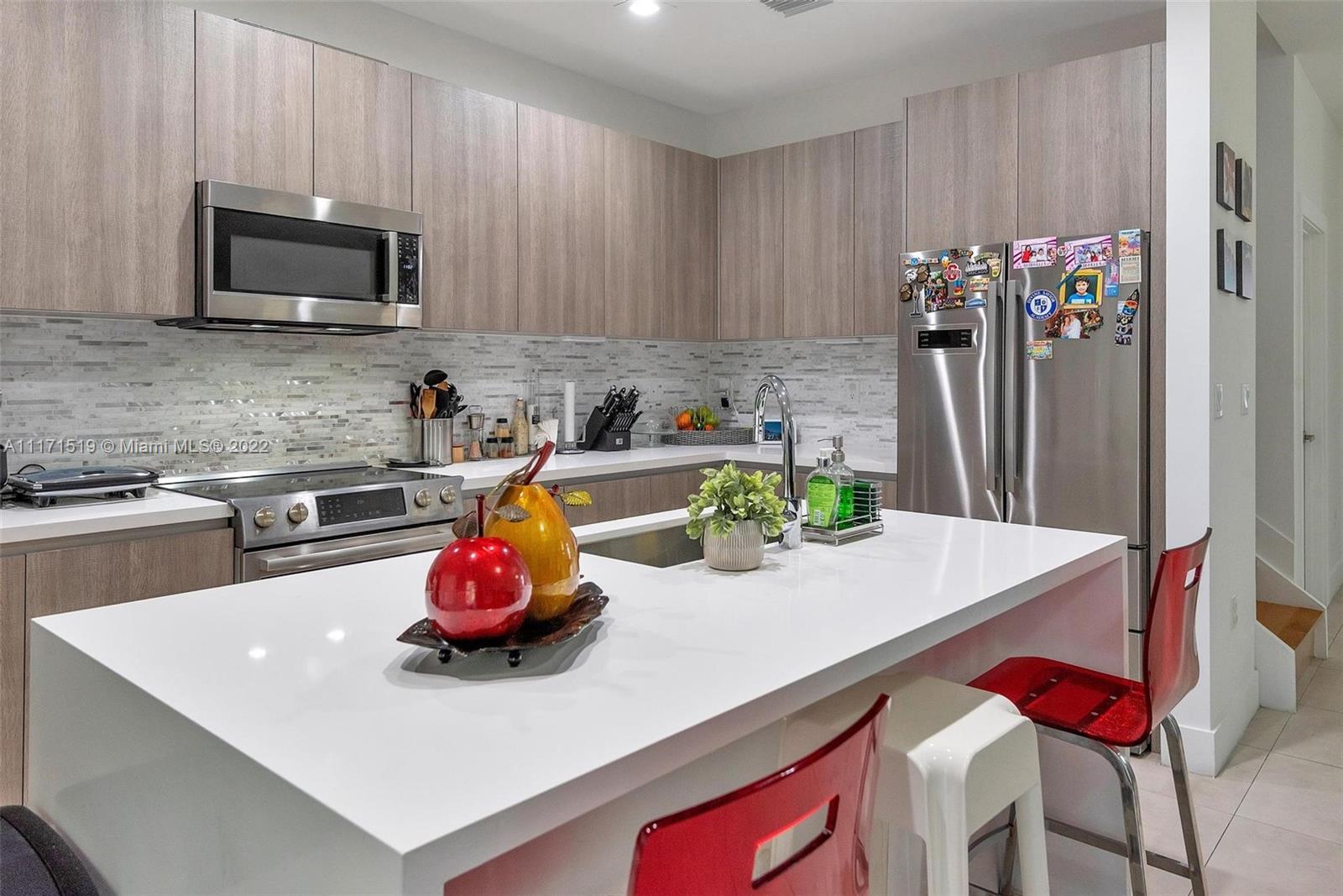 Amazing Town Home at Neovita a guarded community in Doral. Spacious and beautiful unit featuring 4 bedrooms and 3 full bathrooms upstairs plus 1/2 bathroom. Open concept design kitchen with Italian styled cabinetry, prime stainless steel appliances, toped with quartz at island and countertops. Washer and dryer on 2nd floor. All available upgrades from developer where considered in this Town House. Excellent location, close to main highways, shops and restaurants. Tenant occupied until July 8th, 2022