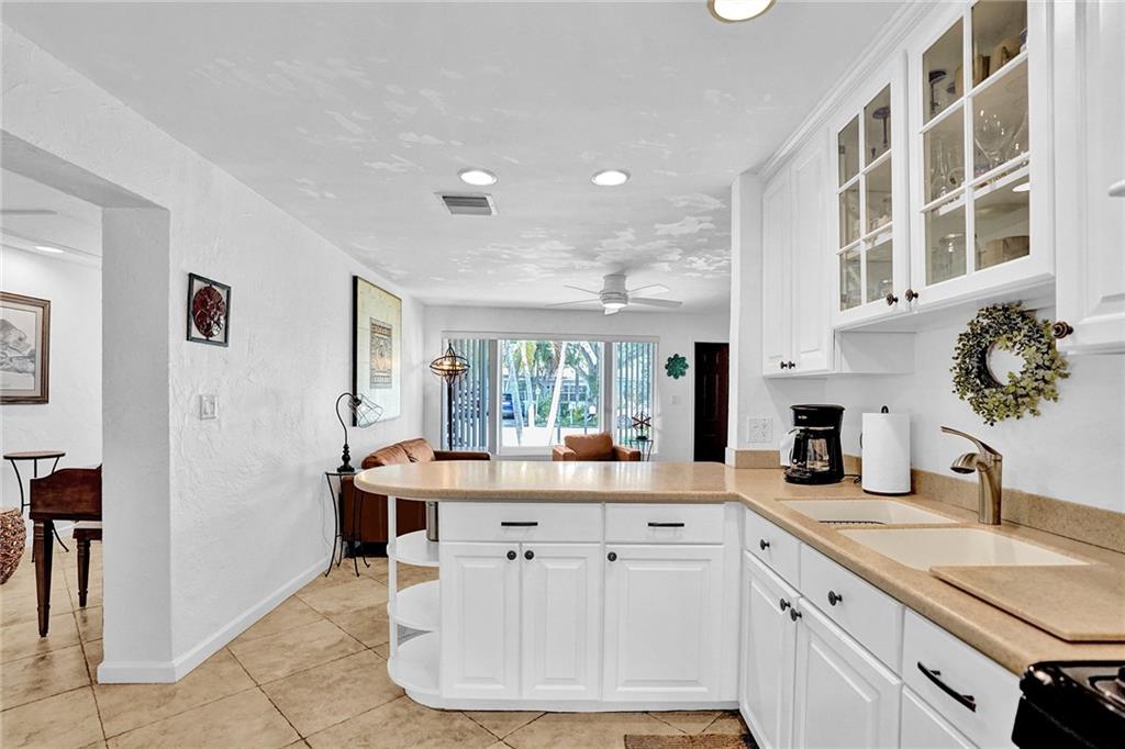 IMMACULATE & TOTALLY remodeled single family home in East Pompano close to the beach & boat ramp.The residence was recently painted inside & out the 2 bed & 2bath + DEN residence offers a NEW AC, Updated Electrical & Plumbing, IMPACT WINDOWS thru out, recessed lighting, New ceiling fans, 20x20 tile thru out, newer Washer & GAS dryer. Kitchen is bright w/ white wood cabinetry, Corian counter tops & gas stove. Dining Room is spacious with a wood architectural ceiling, master bath is updated with quartz countertops, Kohler faucets & an oversize tub. Bedrooms have spacious closets. Large Patio/Lanai offers additional entertainment/living space. The driveway is oversized with pavers large enough to accommodate 2+ cars & a boat,shed& attic. Great Curb appeal and lushly landscaped Will not last!!