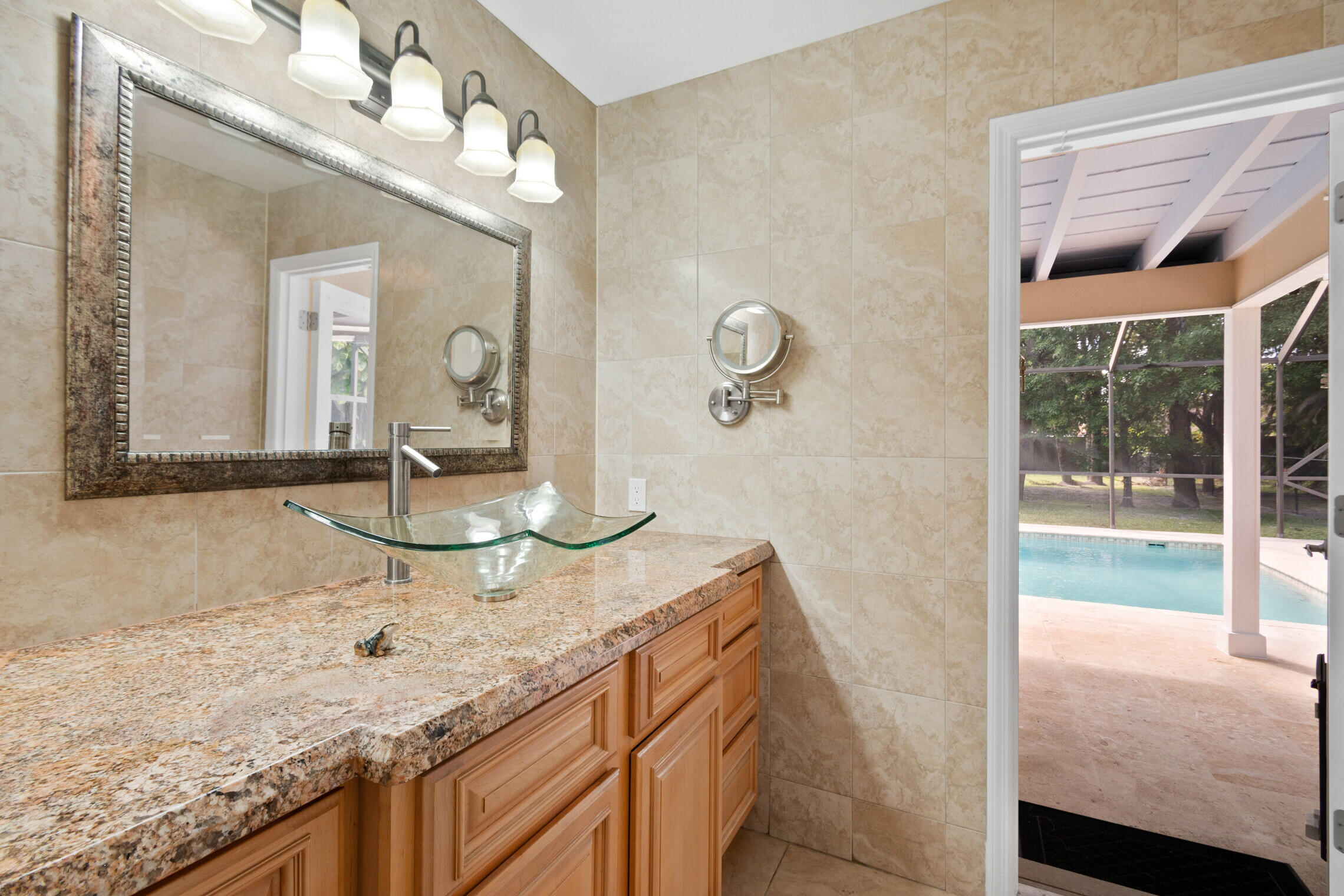 Perfect Florida Living! Bring your Boat & RV! Beautifully updated 3 bed, 2 1/2 bath home on acre of land in a gated community. Exterior features a circular driveway, custom marble finishes, lushly landscaped fenced yard, Roofed RV pad (54Dx14wx15h) w/Electric & water, Roofed Boat pad w/ water, & an extra storage shed built on the side of the home. Interior boasts a split floorplan w/ light colored wood-like ceramic tile flooring throughout living area & two bedrms. Renovated kitchen boasts a Thermador fridge, trash compactor, 6 burner gas cooktop, wall ovens & a ton of storage. Screened-in 32x15 Pool w/spacious covered patio w/sliced coral flooring. Home also offers a smart security system. Roof 2010, 2021 breaker panel, 2020 inside paint, new ac ducts 2019, Gas run Dryer & Fireplace.