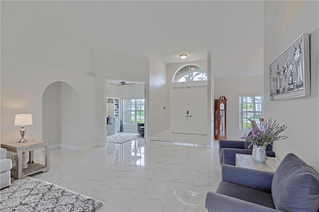 THIS HOME IS A METICULOUSLY MAINTAINED 4/2 POOL HOME LOCATED ON A REALLY NICE & QUITE STREET IN THE ACREAGE! IT HAS BEEN TOTALLY UPDATED W/ALL 32x32 WHITE & LIGHT GREY POLISHED CERAMIC TILES THROUGHOUT/TOTALLY UPDATED WHITE SHAKER KITCHEN CABINETS/STAINLESS STEEL APPLICANCES & ALL WHITE & GREY QUARTZ COUNTERTOPS/BREATHTAKING BRAND NEW MASTER BATH W/WHITE & LIGHT GREY CERAMIC FLOORING/WHITE SHAKER CABINETS W/MATCHING QUARTZ DOUBLE VANITY COUNTERTOPS!SPLIT FLOOR PLAN W/ UPDATED BATH/TOP OF THE LINE CEILING FANS/WINDOW TREATMENTS/LIGHT FIXTURES/UPDATED ELECTRICAL SOCKETS & SWITCH PLATES!NEW WASHER/DRYER! SECOND GRAVEL DRIVEWAY W/40 FT CONCRETE PAD FOR YOUR BOAT/RV ETCS...THE POOL IS AN ABOVE GROUND 15 FOOT MASTER SWIMMING SPA! RING ALARM STAYS!