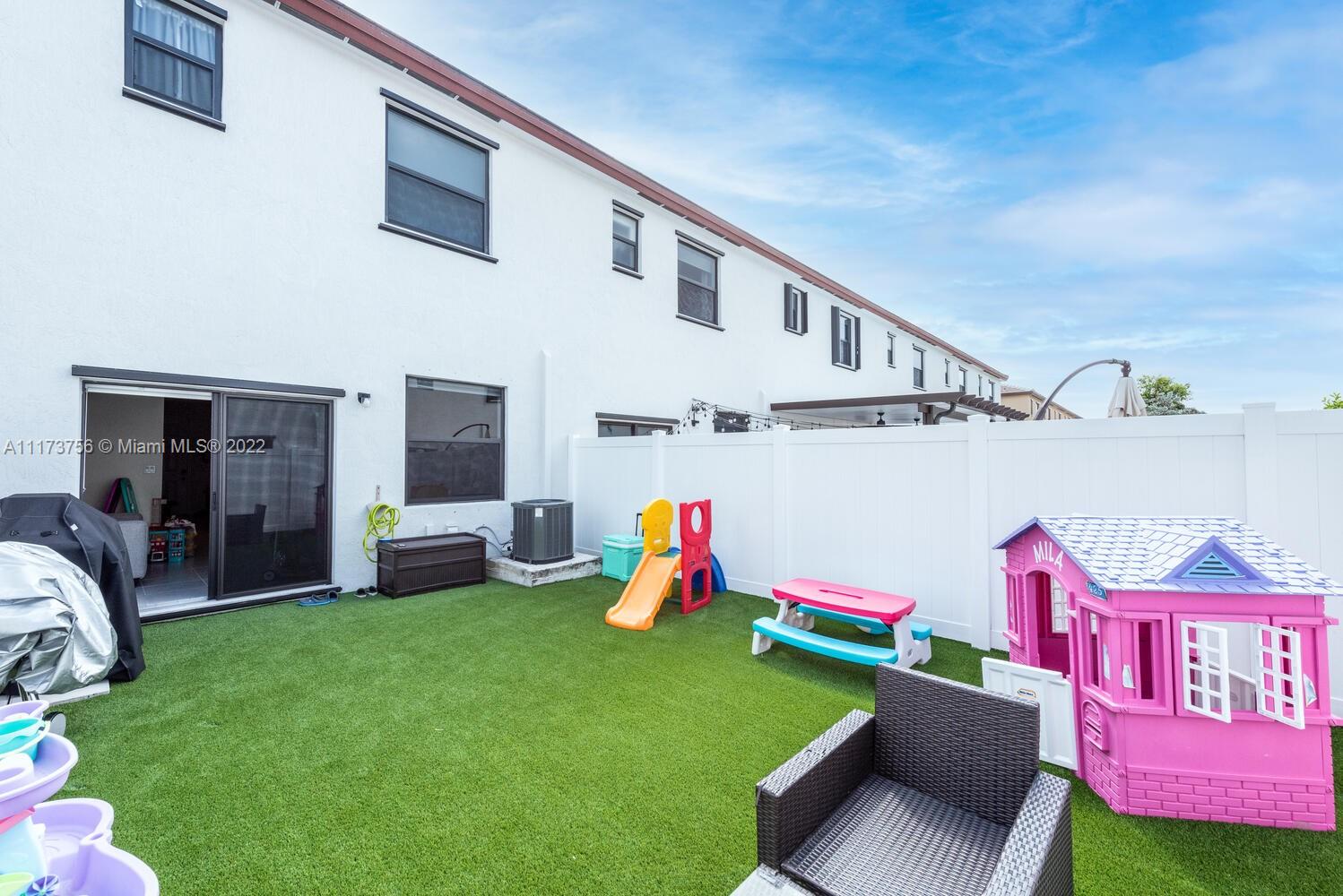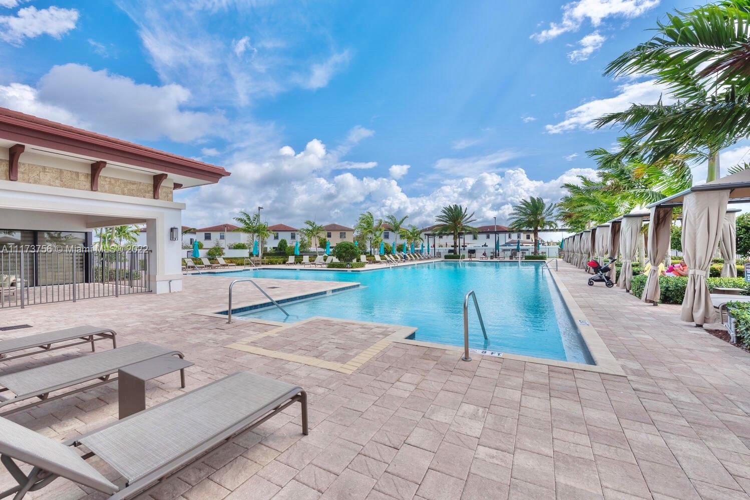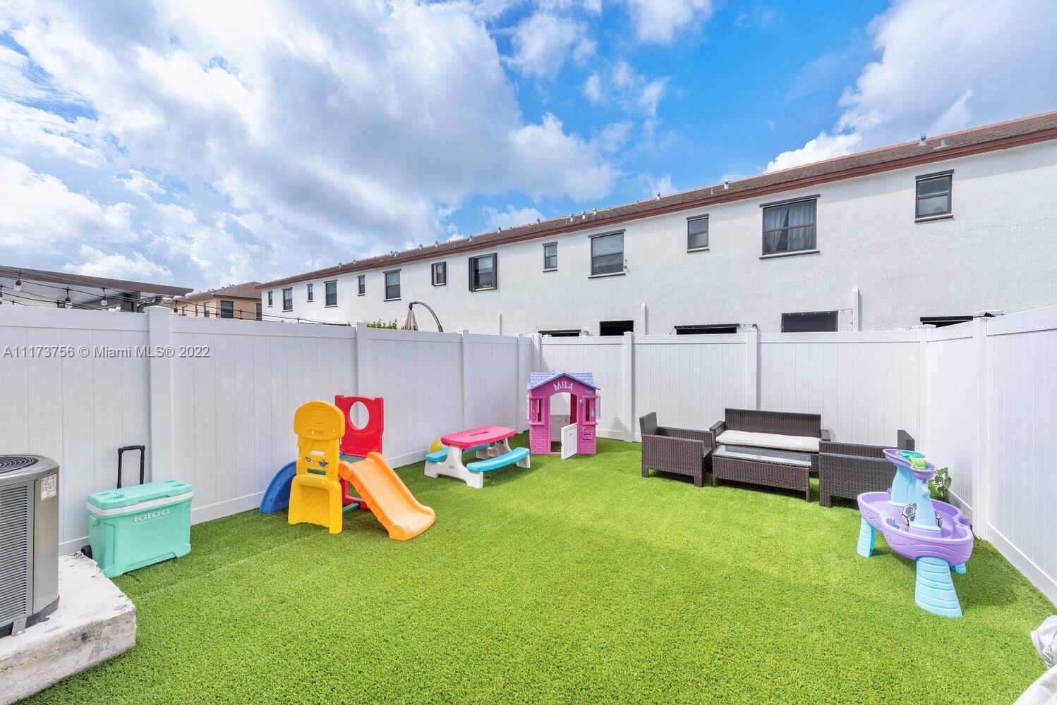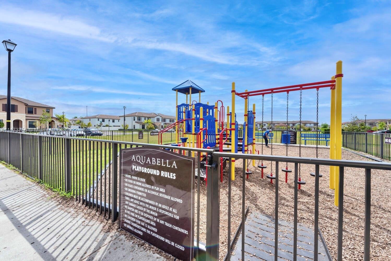 Spectacular 3 bed / 2.5 Bath Townhome located in the New and Privately Gated community of Aquabella. Built-in 2020 this Townhome boasts high volume ceilings, recessed lighting throughout, upgraded window treatments, and an open concept eat-in kitchen complete with all SS Appliances. The Townhome offers the convenience of a Downstairs Half-Bathroom, 2-assigned parking spaces, plus a generously fenced backyard- complete with New easy-to-maintain synthetic grass. Resort-Style Amenities include a LakeFront Club House, Bussiness Center, Gym, Oversized Pools, BBQ Area, Playground, Water Park, Roaming Security, and more!
