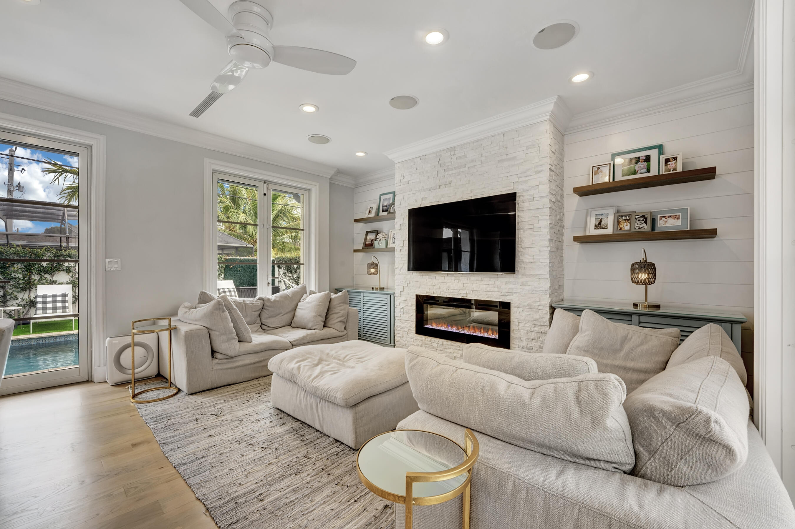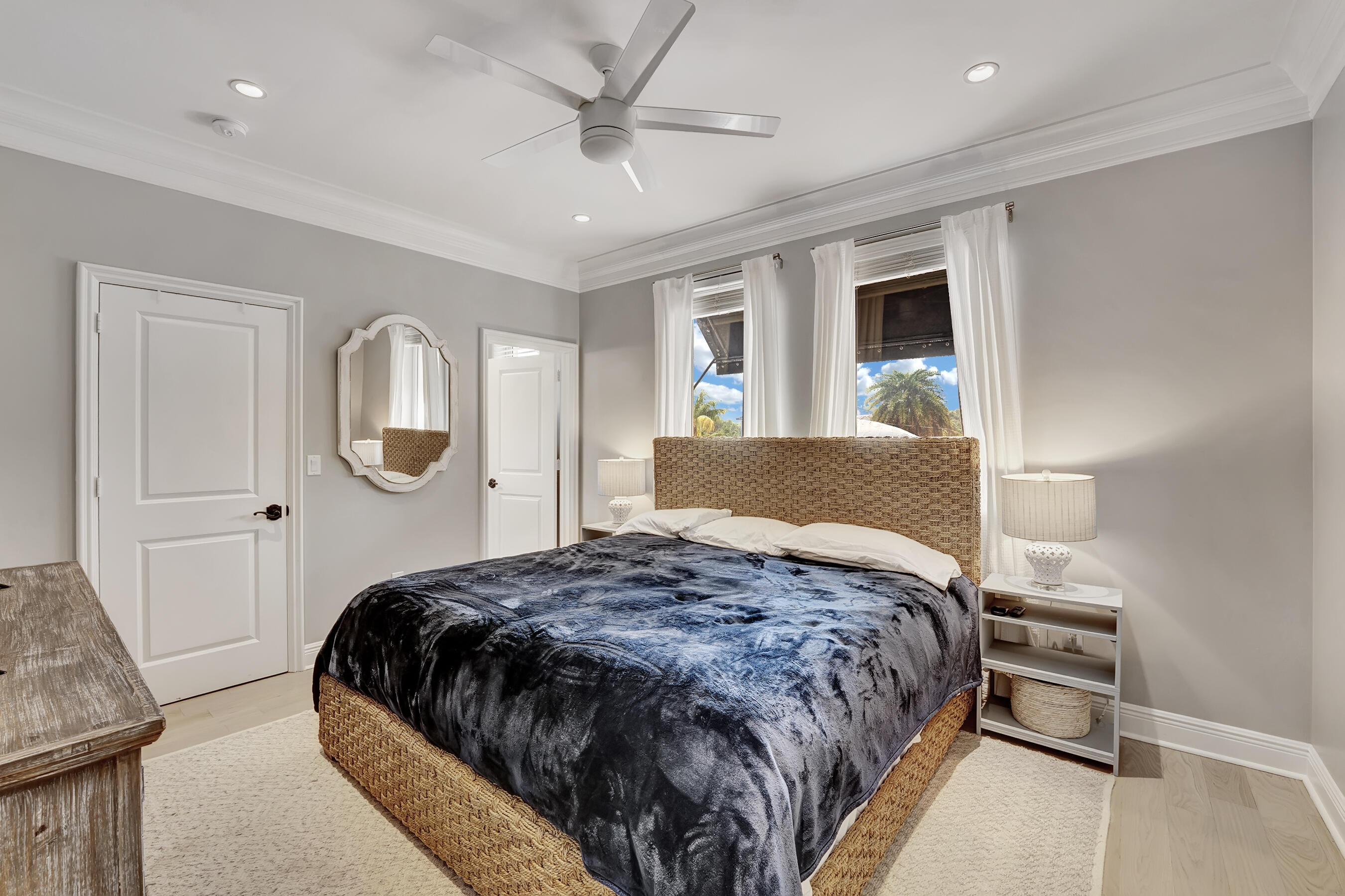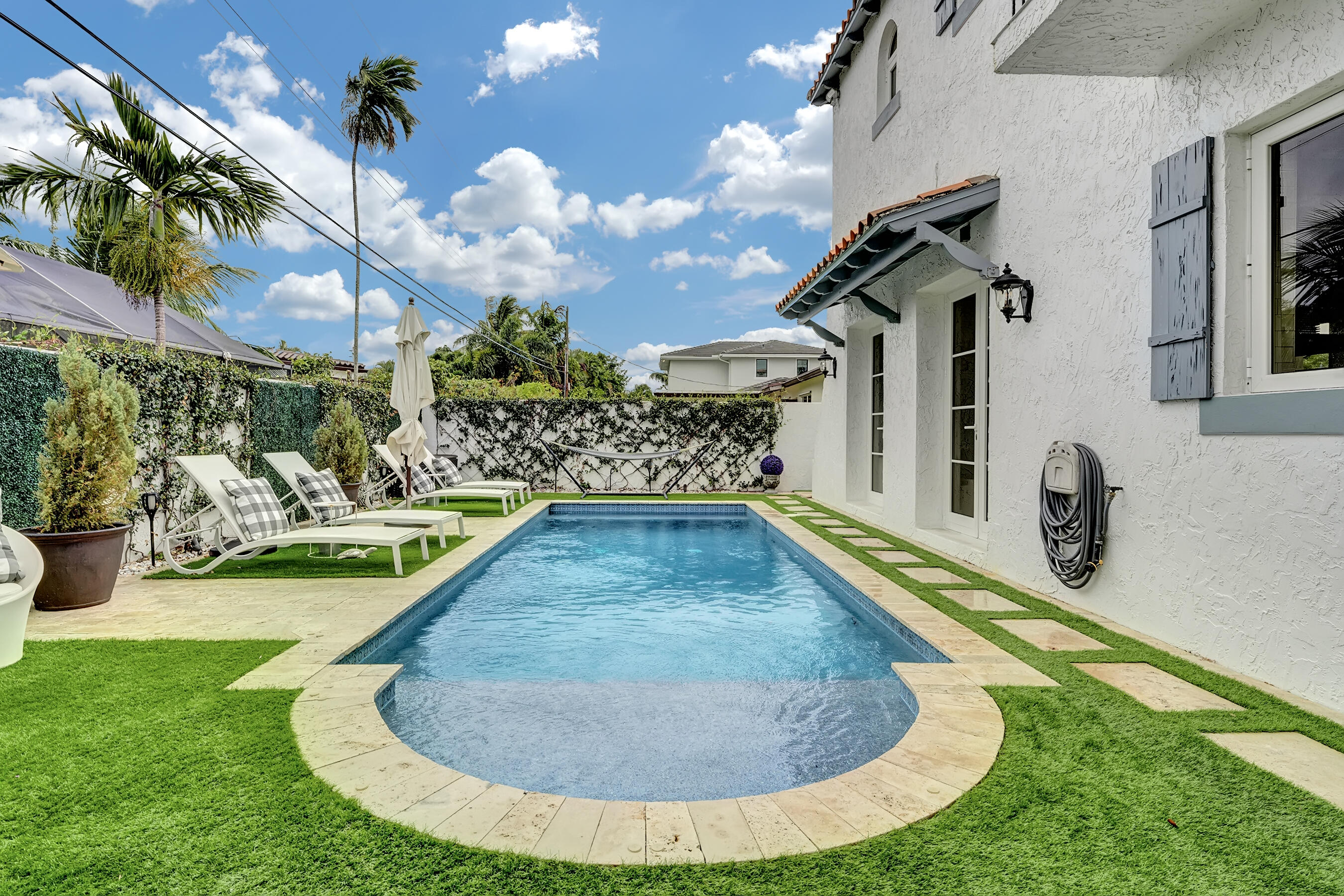Highly sought after area of East Boca Raton minutes to Mizner Park and the Atlantic Ocean. This one-of-a-kind Mizner style home offers an oasis of chic comfort. This mini compound is comprised of a main residence and charming guest cottage. Gourmet kitchen with top of the line stainless appliances, including a 6 burner gas Wolf stove with griddle, Sub Zero Fridge, and an oversized quartz counter. Gorgeous refinished wide plank light oak floors. Loft with 3 en-suite bedrooms upstairs. Three separate outdoor areas for entertaining along with an outdoor woodburning fireplace. Poured cell solid concrete exterior wall, high impact hurricane rated windows.This exceptional property is a welcome respite from a busy world and offers a once in a lifetime opportunity to live in complete serenity.