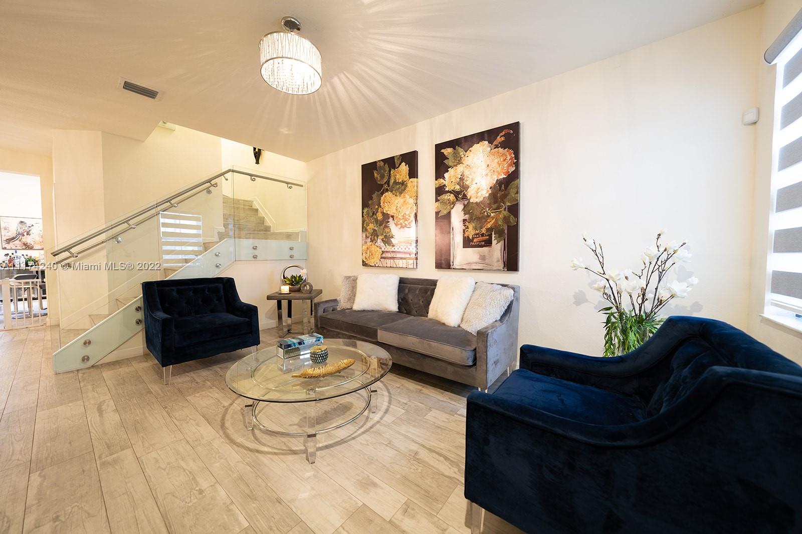 OPEN HOUSE WED 3/16 6-8PM THIS IS WHAT YOU HAVE BEEN WAITING FOR,SELLER HAS DONE IT ALL Porcelain floors in all common areas Waterproof acrylic laminate in all rooms, Master bedroom has expanded connected walk in grand closet with included closet furniture, Upgraded, kitchen, Premium ZEBRA shades through out. all downstairs shades are electric ,Backyard completely paved, Custom gazebo with electricity. Connected TV on powered tilt stand and fan with light included., Upgraded downstairs bathroom with stone wall, Custom glass staircase with porcelain steps, AC unit with UV light and auto shut off to prevent overspill, All lighting fixtures included,New Accordian shutters, Garage has ceiling storage shelving throughout, Alarm and camera systems,Custom BBQ Island is optional.CALL LISTING AGENT